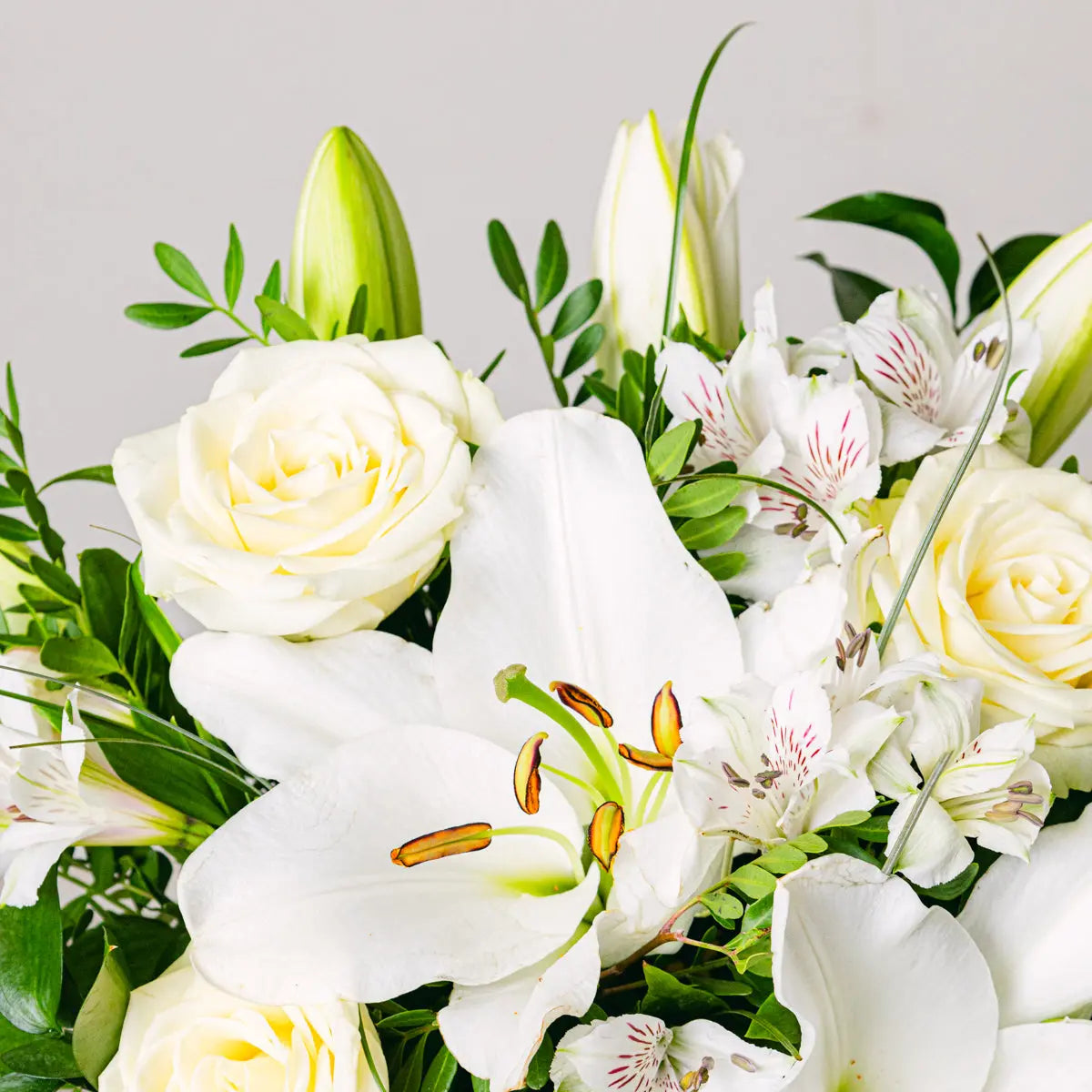 "Aurora Shine" to czarujący wybór, który obejmuje bukiet "Aurora", piękne połączenie lilii, róż i białej alstremerii. Temu specjalnemu zestawowi towarzyszy elegancki wazon i spersonalizowana kartka, zaprojektowana tak, aby przekazać świeżość i jasność, wyjątkowy szczegół, który uszczęśliwi każdego. dostępny tylko przez ograniczony czas!