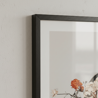 Spokojny portret, gdzie kwiaty delikatnie kwitną wokół twarzy, łącząc bezruch i wyobraźnię. Delikatny i wyrazisty prezent.