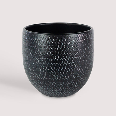 Czarna ceramiczna sadzarka z teksturowanym wykończeniem. Idealna dla wszystkich Twoich roślin.