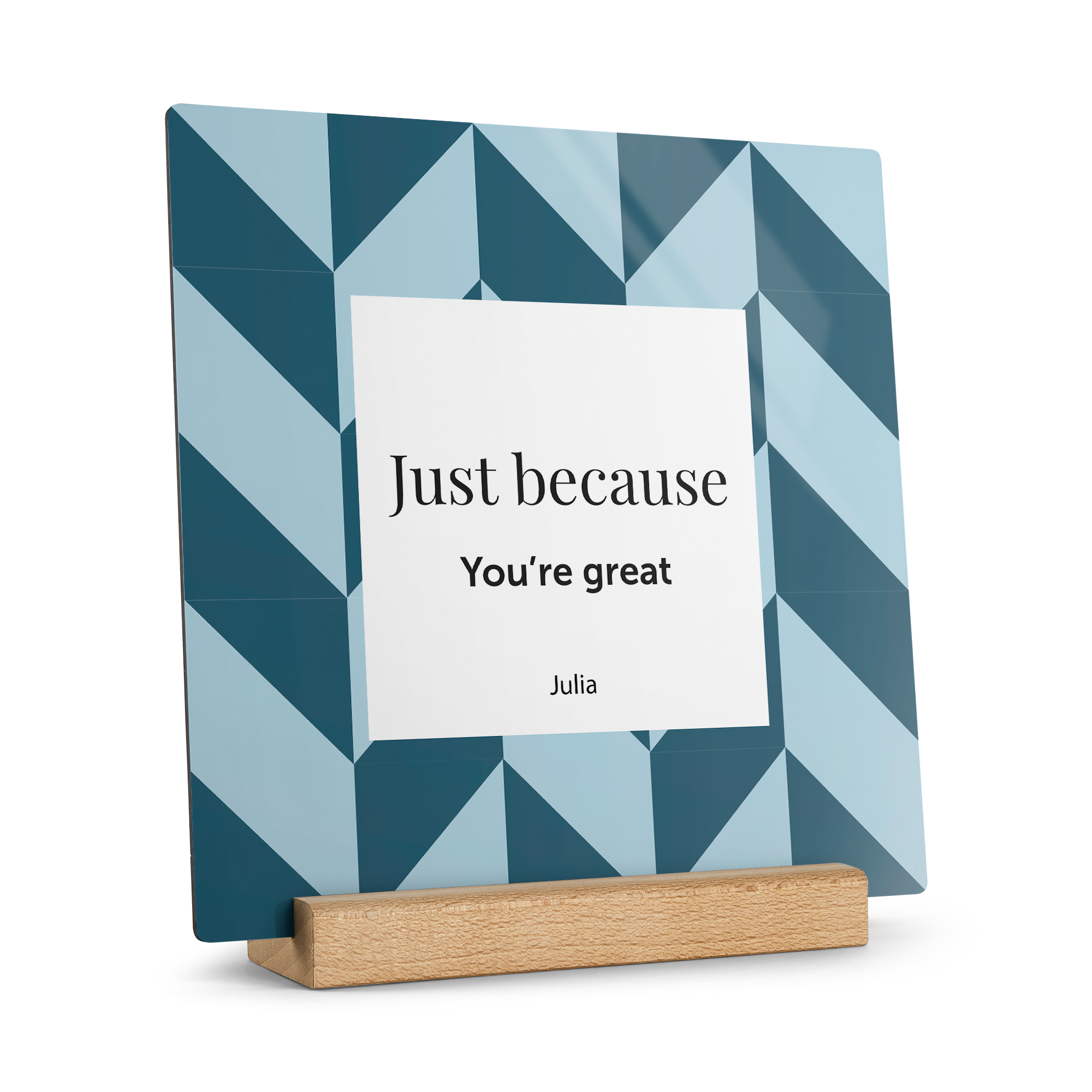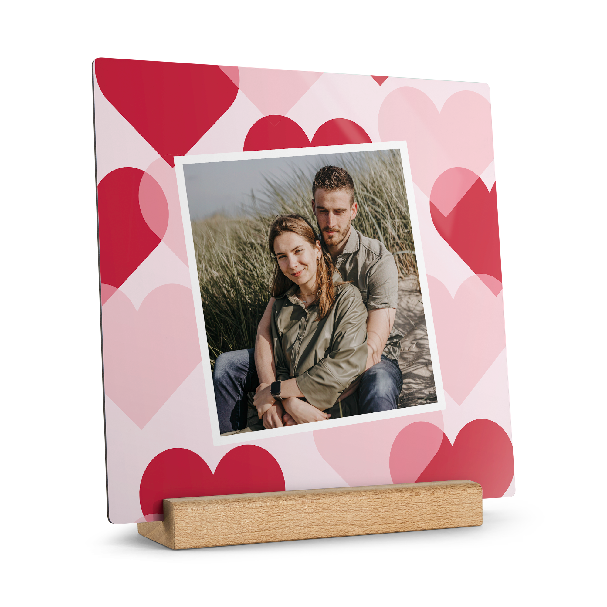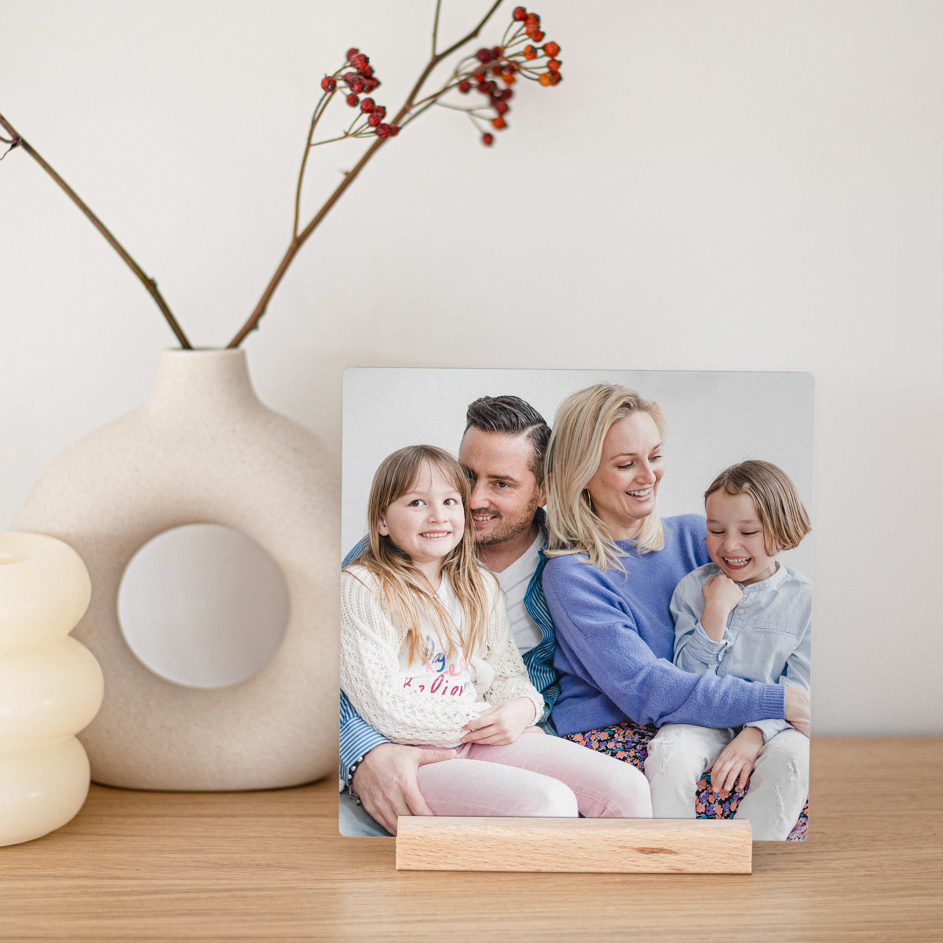 Więcej informacji o panelu drewnianym:Kształt: kwadratowyMateriał: wysokiej jakości sklejkaWykończenie: błyszcząca powłokaWymiary panelu: 23 x 20 x 20 x 0,3 cmWymiary stojaka: 15 x 5 x 2 x 2 cmPersonalizacja: zdjęciem, tekstem i/lub logoNadruk: w wyraźnych, ostrych kolorach