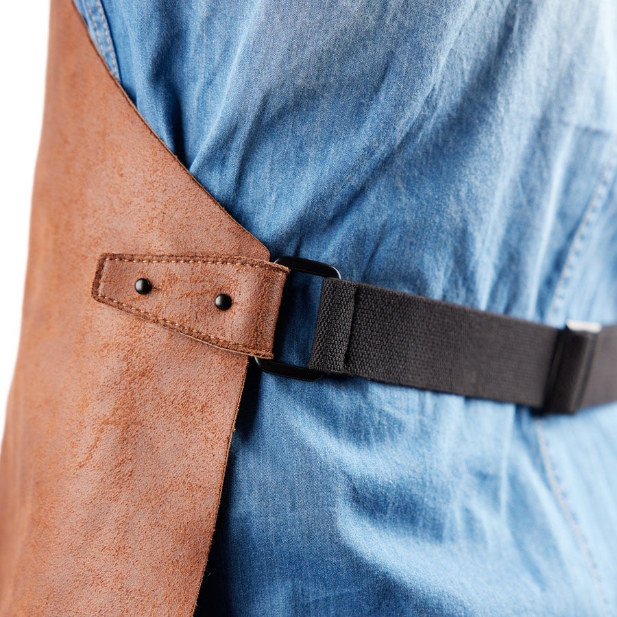 Więcej informacji na temat spersonalizowanego fartucha ze skóry pochodzącej z recyklingu:Materiał: 90% skóra z recyklingu, 10% PU (poliuretan)Grubość: 1 mmKolor: brązowyPersonalizacja: grawerowanieWymiary personalizacji: 7 x 7 cmWymiary fartucha: 81 x 59,5 cmWaga: +/- 430 gramówRozmiar: regulowany, obwód w pasie od 90 do 113,5 cmDodatkowe informacje: skóra to materiał naturalny, dlatego prezent może nieznacznie różnić się od tego na zdjęciach na stronie internetowej