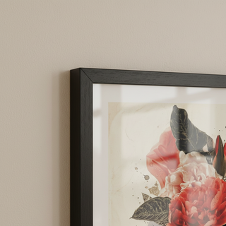 Poetycki czarno-biały portret z żywymi kwiatami, łączący emocje i artyzm. Wyrafinowany prezent o cichej sile.