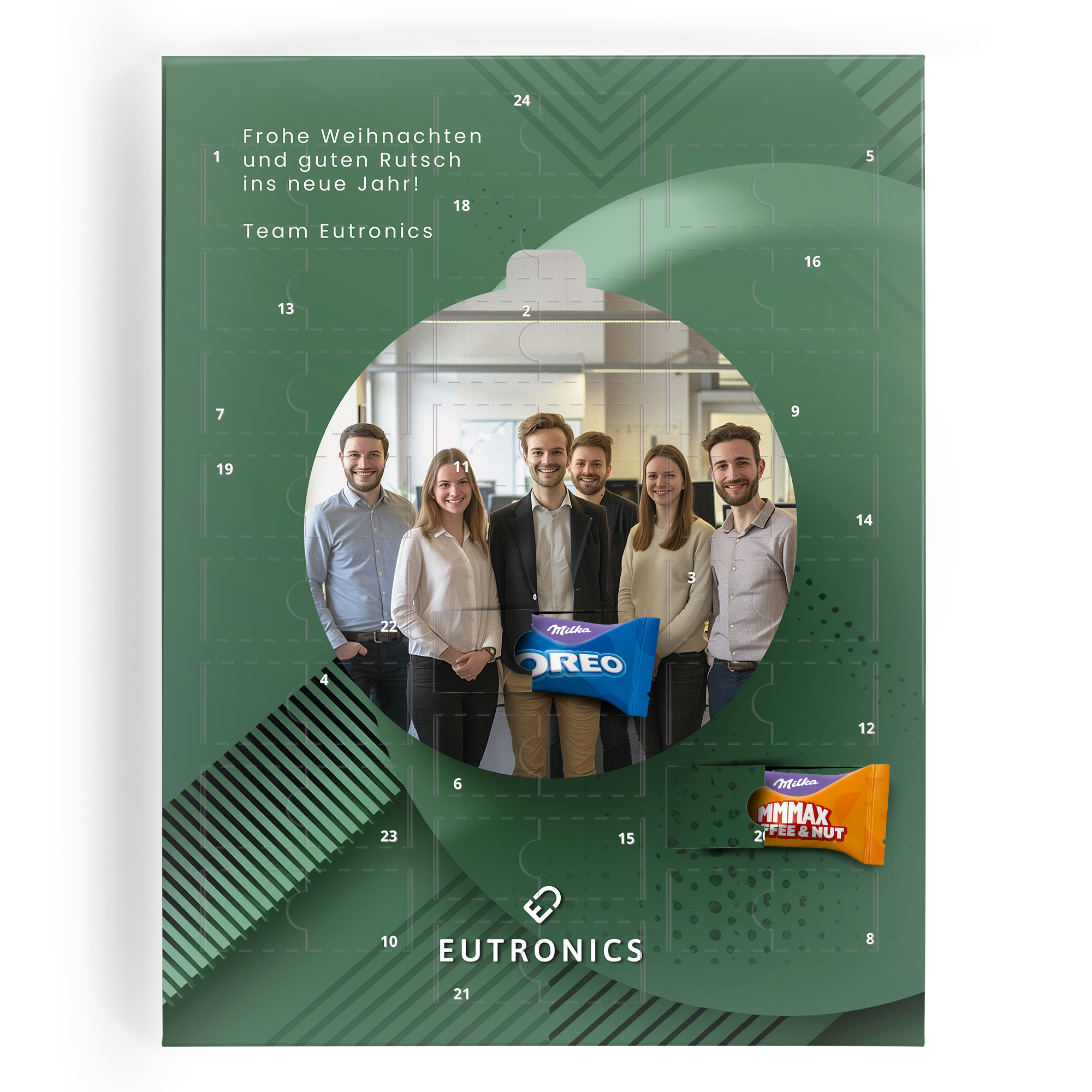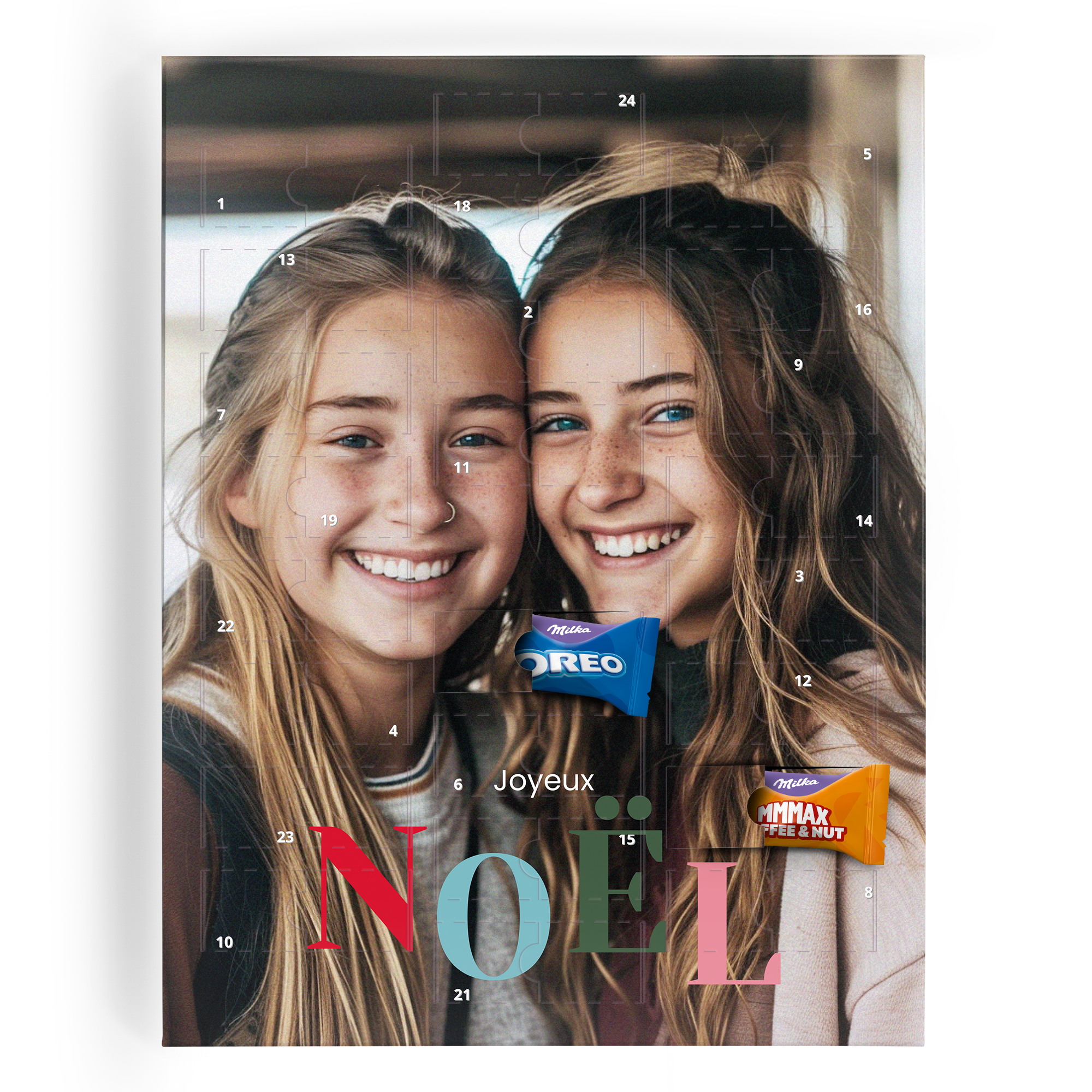 Kalendarz adwentowy ze zdjęciem, imieniem i/lub tekstem. Wypełniony 24 pysznymi czekoladkami Milka. Pyszne odliczanie do Świąt!