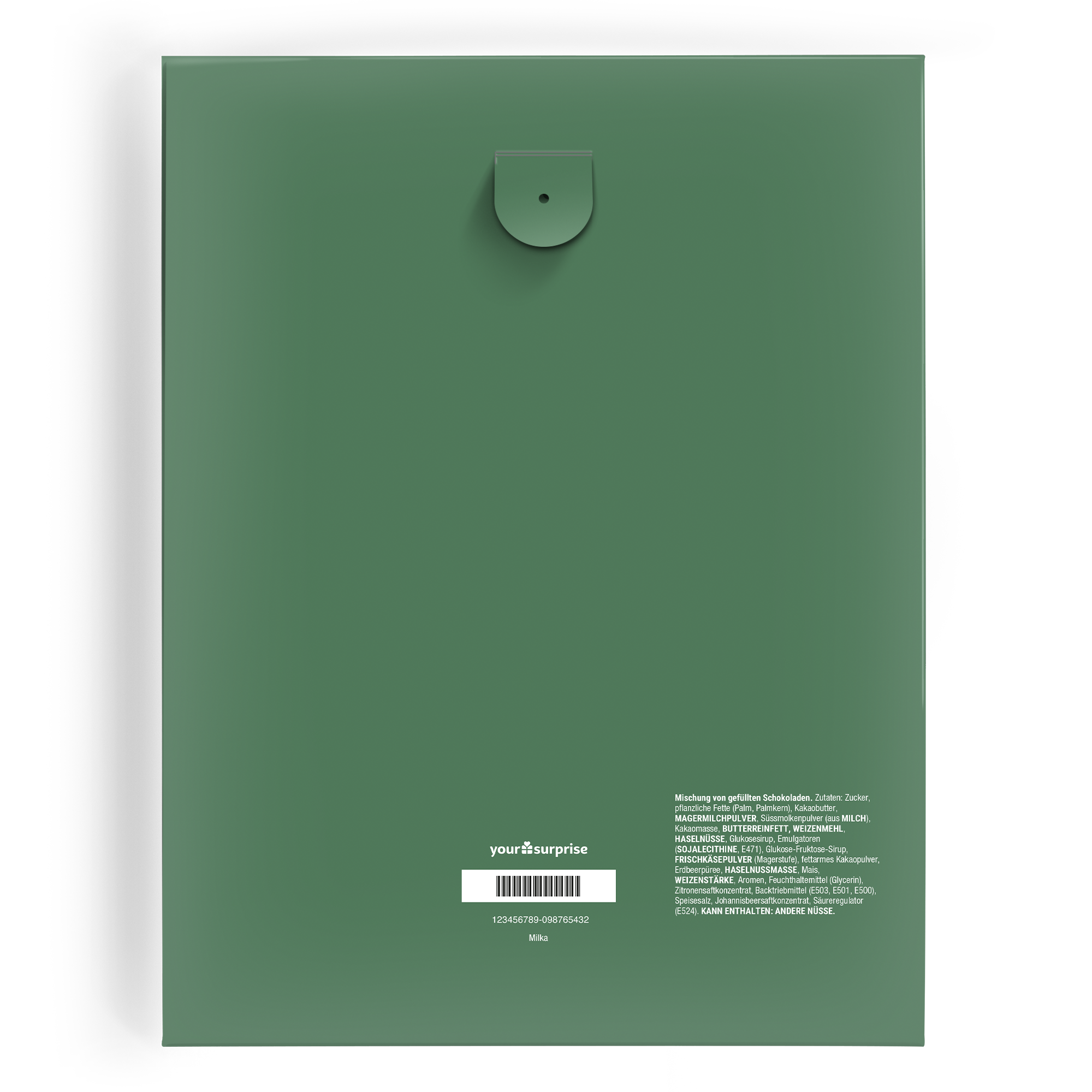 Więcej informacji o kalendarzu adwentowym Milka:Czekolada: 24 pyszne czekoladki Milka FavouritesWymiary: 23,7 x 30,5 x 2,5 cmLiczba dni: 24 (od 1 do 24 grudnia)Personalizacja: imieniem, zdjęciem i/lub logoNadruk: pełnokolorowySkładniki: cukier, tłuszcze roślinne (palmowy, z pestek palmowych), masło kakaowe, odtłuszczone MLEKO w proszku, miazga kakaowa, serwatka w proszku MLEKO, tłuszcz MLECZNY, mąka PSZENNA, ORZECHY LASKOWE, syrop glukozowy, emulgatory (lecytyna SOJOWA, E471), syrop glukozowo-fruktozowy, ser w proszku (z MLEKA), odtłuszczone kakao w proszku, przecier truskawkowy, pasta Z ORZECHÓW LASKOWYCH, kukurydza, skrobia PSZENNA, aromaty, substancja utrzymująca wilgoć (glicerol), koncentrat soku z cytryny, substancje spulchniające (E503, E501, E500), sól, koncentrat soku z czarnej porzeczki, regulator kwasowości (E524) Alergeny: Może zawierać inne ORZECHY Niestety, ze względów technicznych nie jest możliwe przetwarzanie znaków cyrylicy, arabskich, azjatyckich, greckich ani znaków specjalnych.
