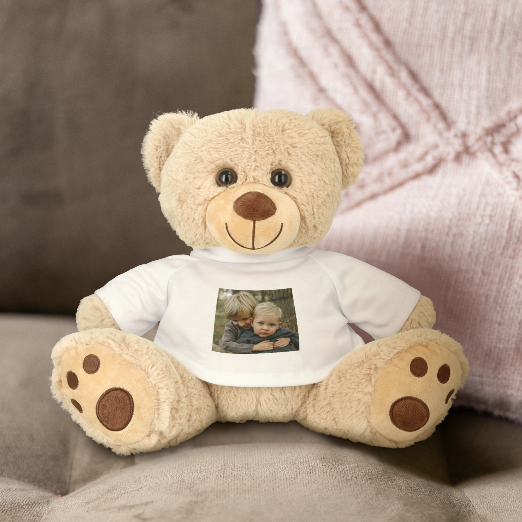 Załóż słodką pluszową zabawkę w spersonalizowanej koszulce z Twoim zdjęciem, imieniem lub tekstem. Najsłodszy prezent w życiu!