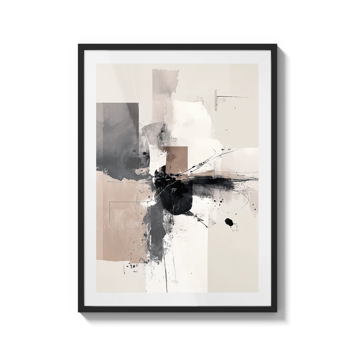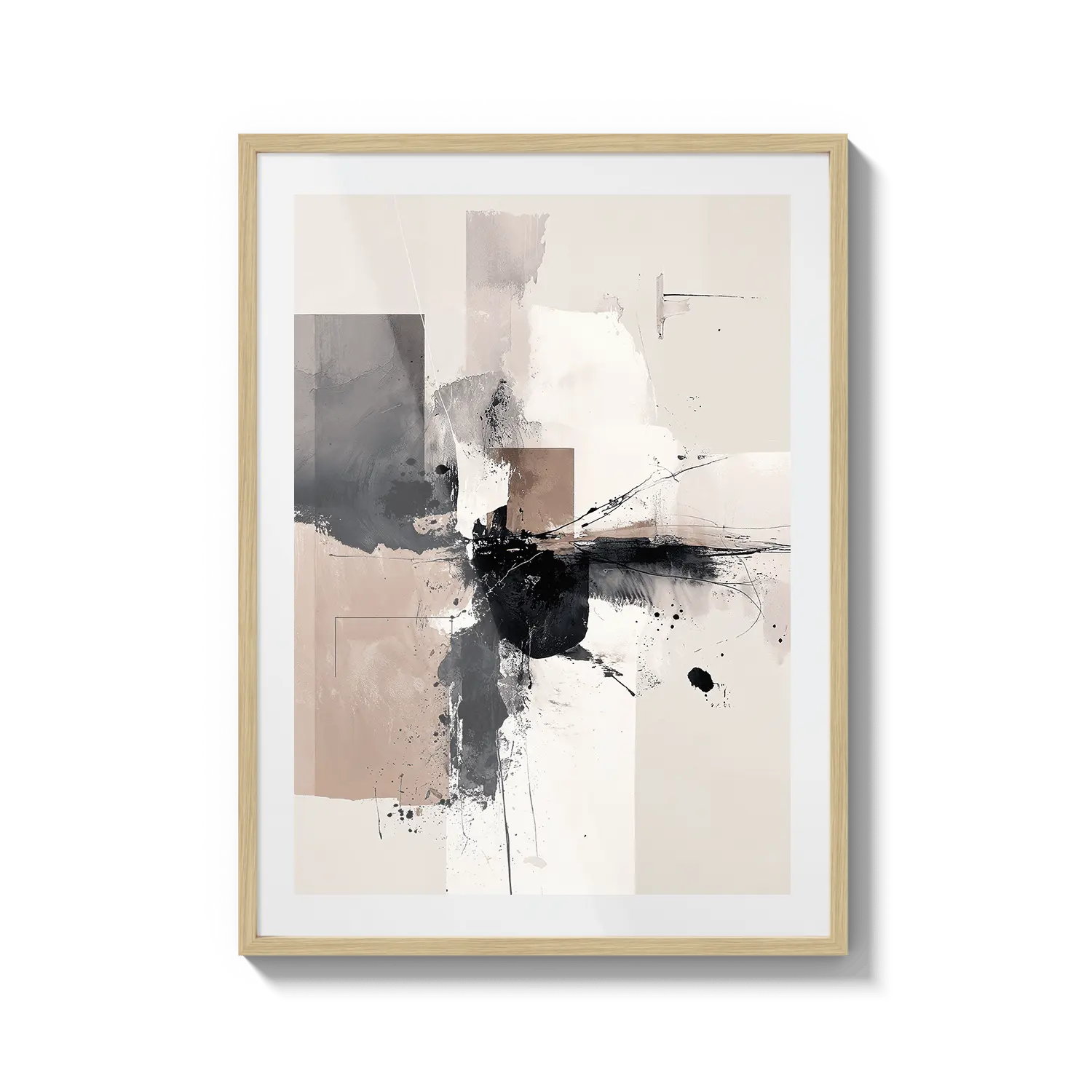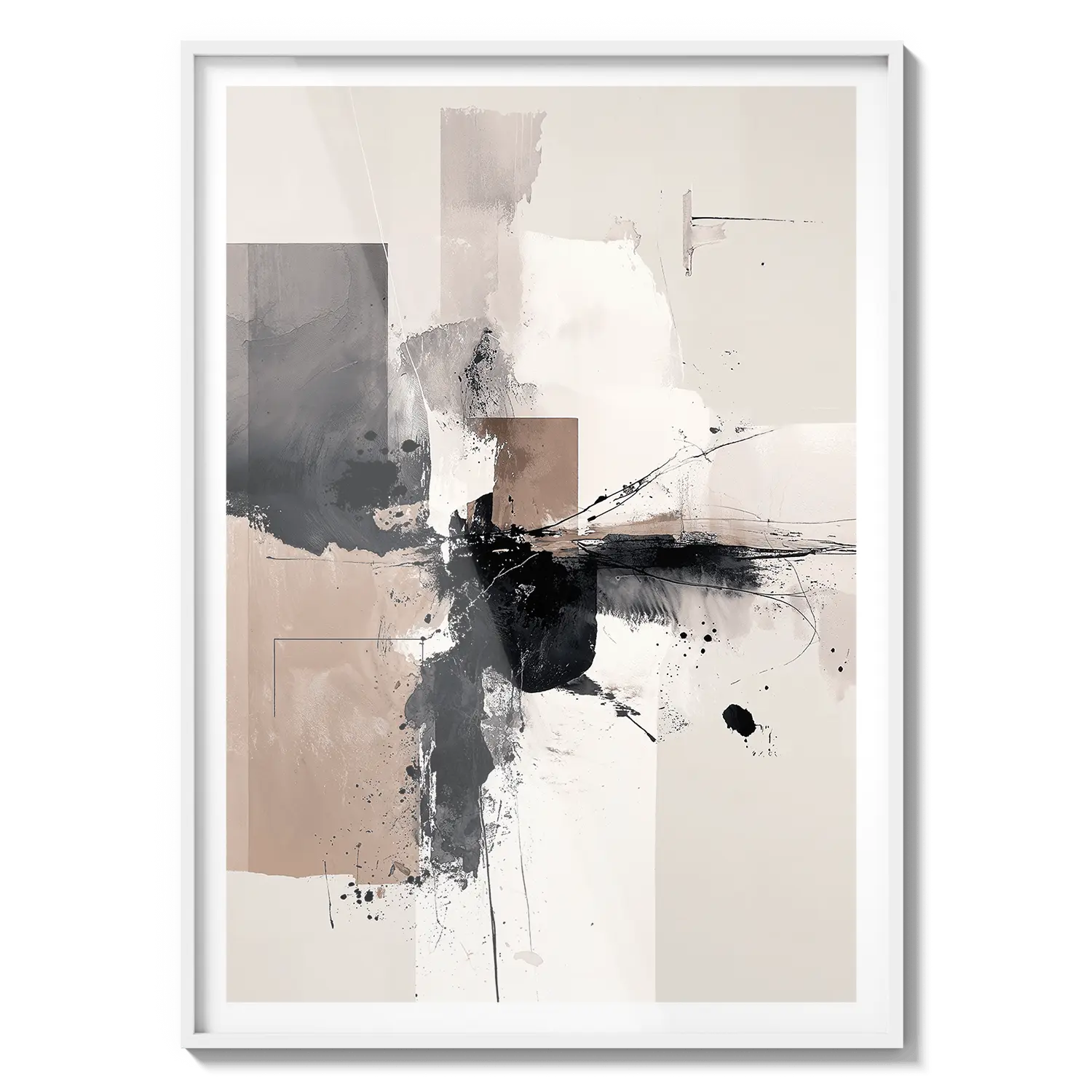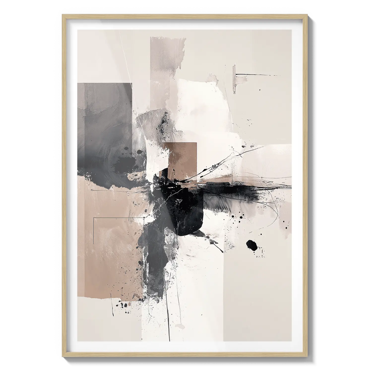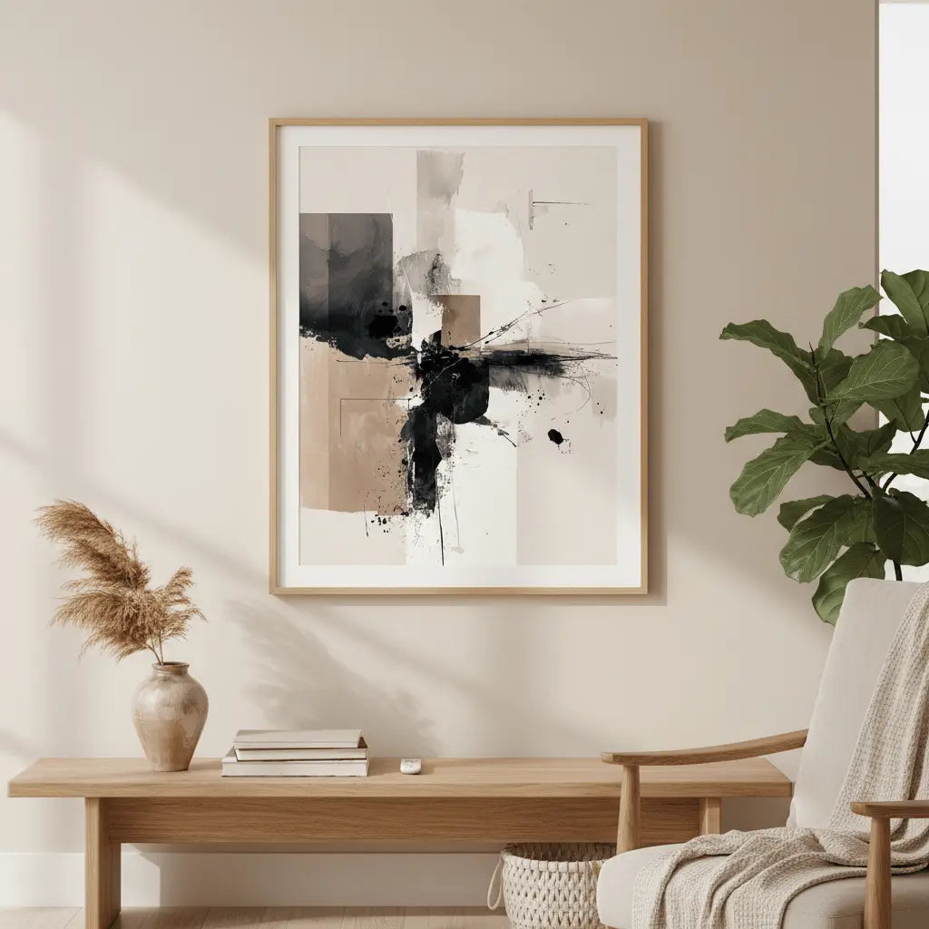 Abstrakcyjna kompozycja miękkich neutralnych barw i ekspresyjnego ruchu. Wyrafinowane dzieło sztuki, które wnosi spokojną energię.