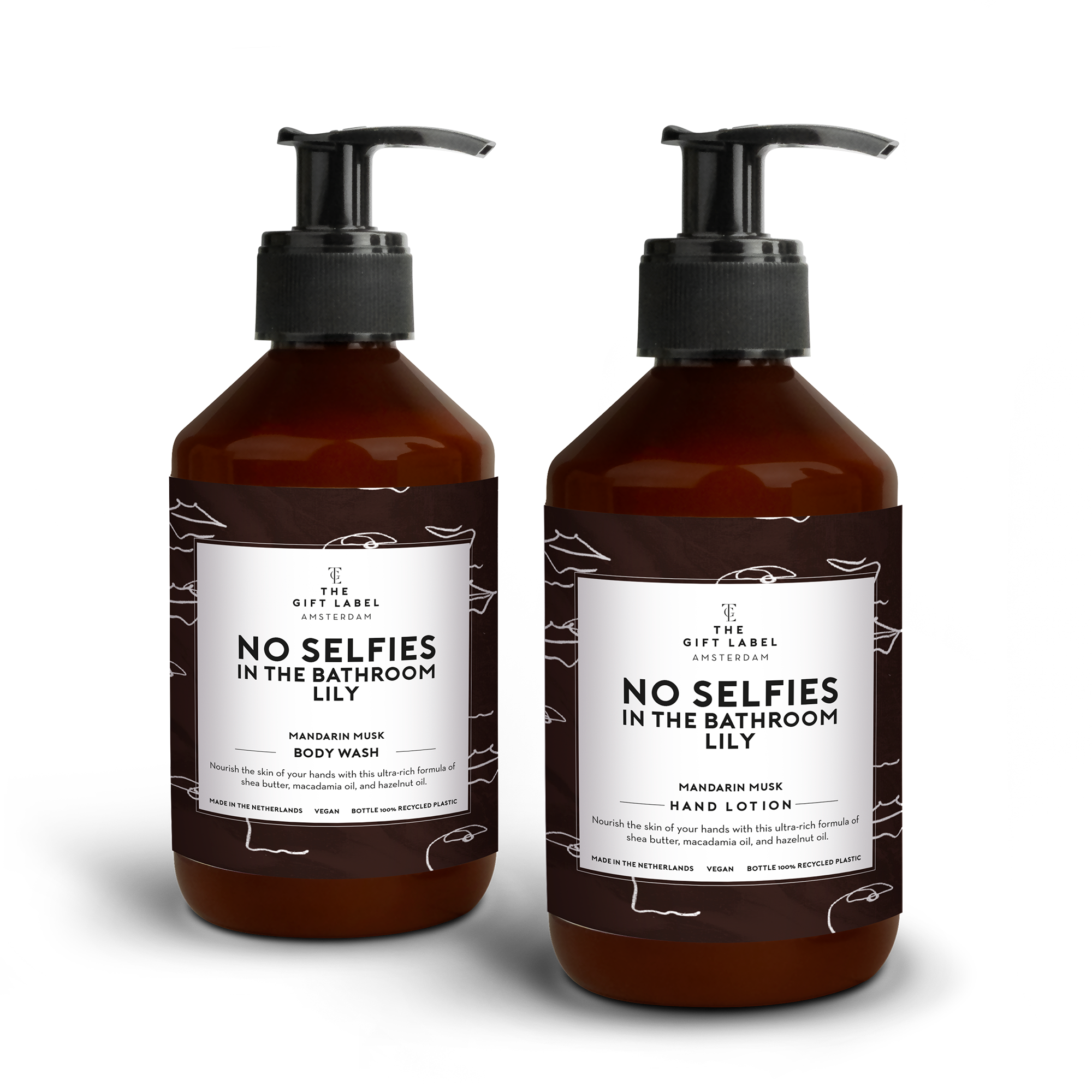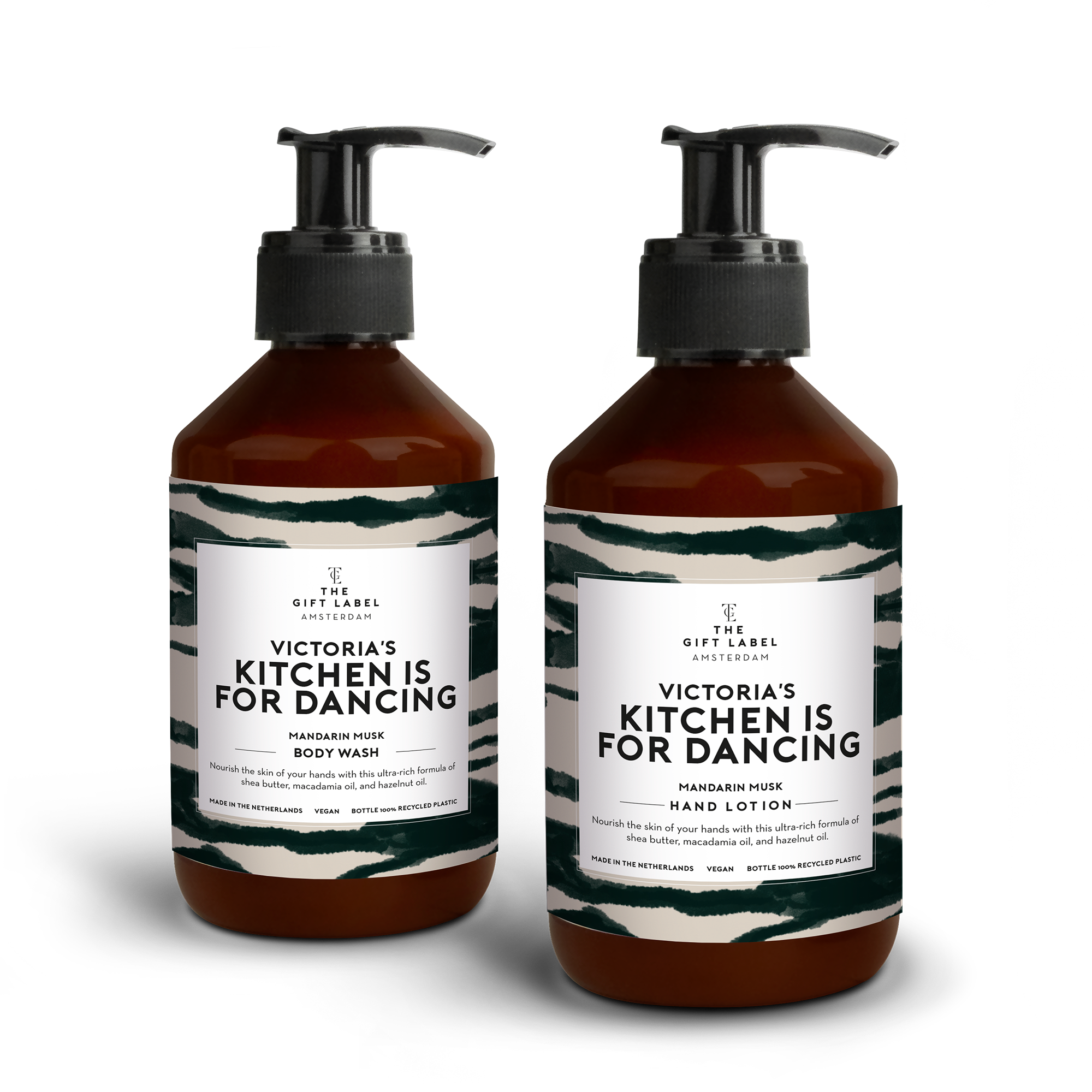 Żel pod prysznic (250 ml), Mydło do rąk (250 ml), Personalizowana etykieta, Pudełko prezentowe.