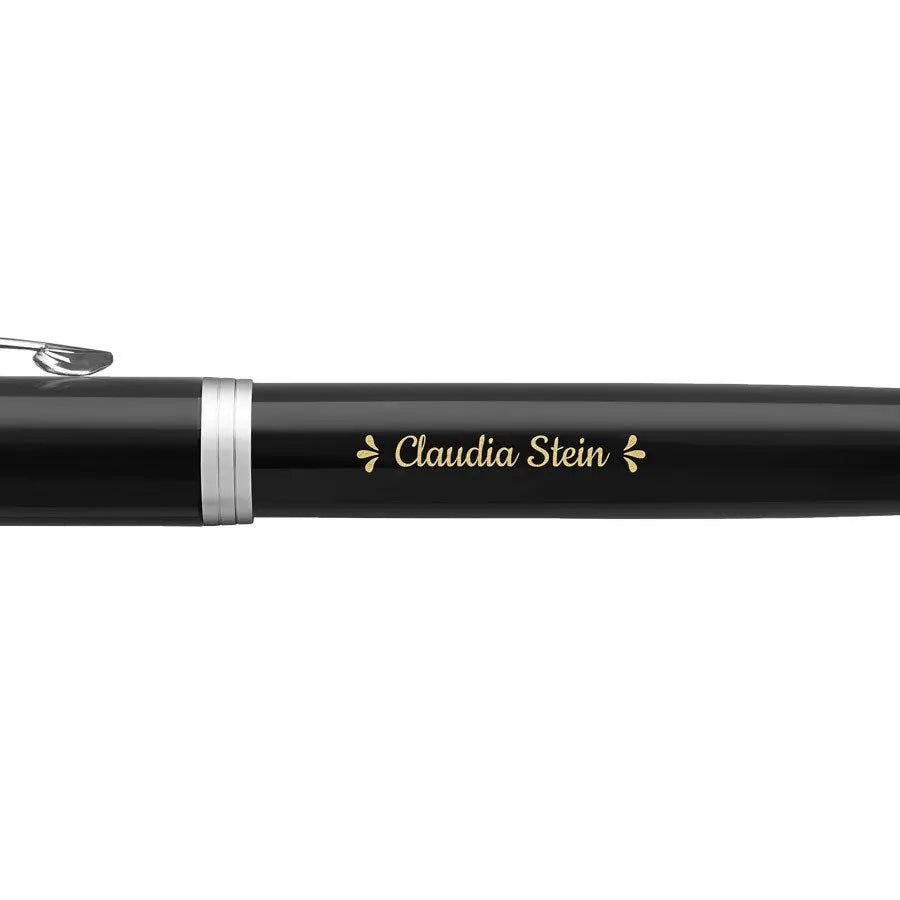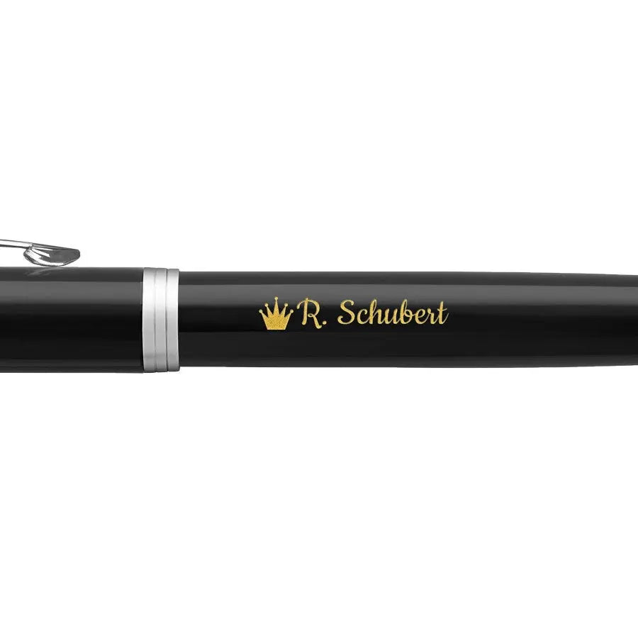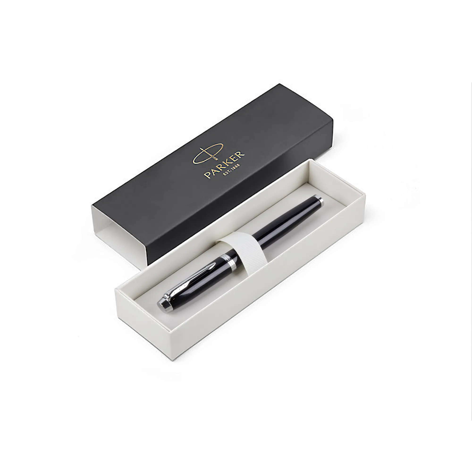 Długopis Parker z grawerunkiem imienia lub tekstu. Wieczne pióro Parker IM z Twoim projektem. Dostępne w kilku żywych kolorach. W luksusowym pudełku prezentowym!Dodatkowe informacje o grawerowanym piórze Parker I.M.:Marka: ParkerModel: I.M. Typ: Wieczne pióroKolor pióra: CzarnyKolor atramentu: NiebieskiPersonalizacja: Grawerowany tekstKolor grawerunku: ZłotyDodatkowo: zawiera 1 napełnienie i jest dostarczane w luksusowym pudełku prezentowym. Można je uzupełniać napełnieniami Parker.Uwaga: to pióro jest odpowiednie dla osób praworęcznych