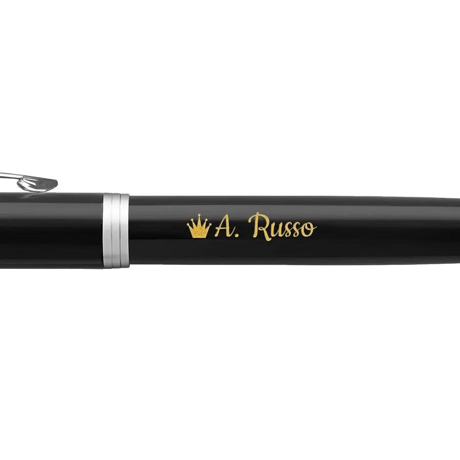 Dodatkowe informacje o grawerowanym piórze Parker I.M.:Marka: ParkerModel: I.M. Typ: Wieczne pióroKolor pióra: CzarnyKolor atramentu: NiebieskiPersonalizacja: Grawerowany tekstKolor grawerunku: ZłotyDodatkowo: zawiera 1 napełnienie i jest dostarczane w luksusowym pudełku prezentowym. Można je uzupełniać napełnieniami Parker.Uwaga: to pióro jest odpowiednie dla osób praworęcznych