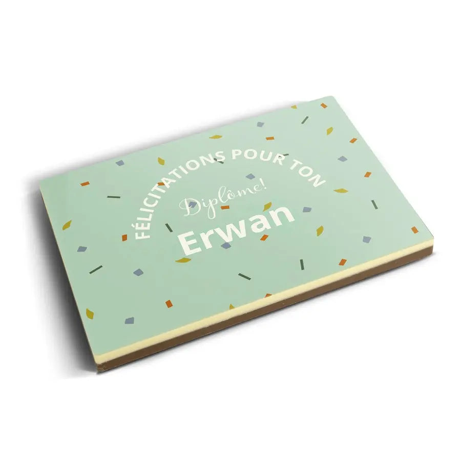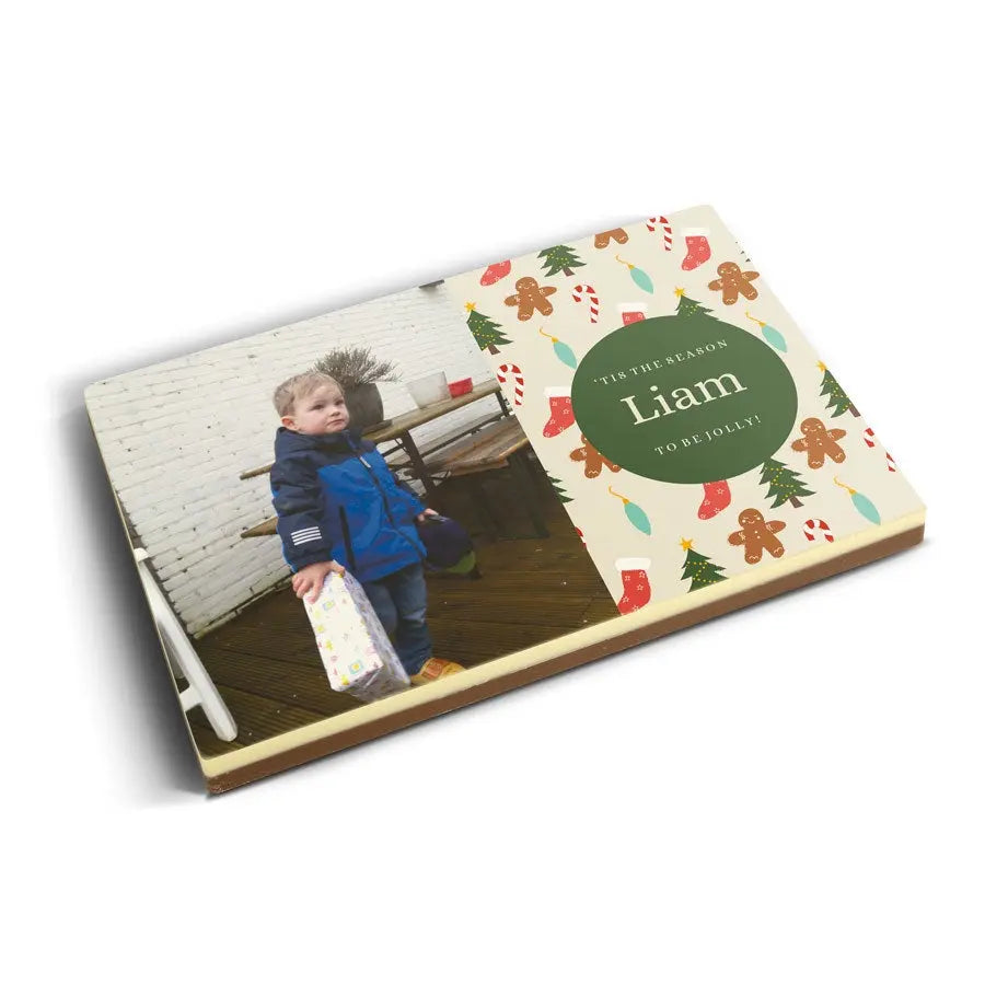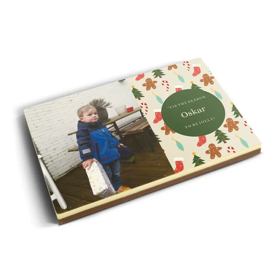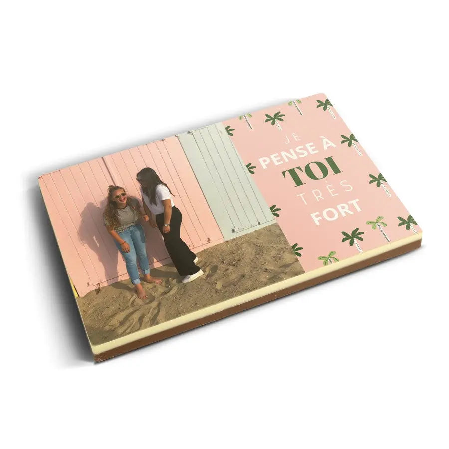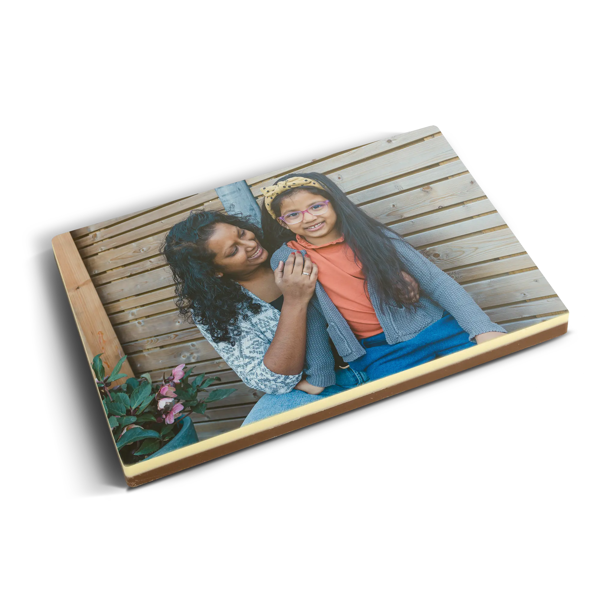 Twoje najpiękniejsze zdjęcie na czekoladzie! 240 gramów pysznej czekolady Callebaut z nadrukiem zdjęcia. Najfajniejszy czekoladowy prezent!Więcej informacji o zdjęciu na czekoladzie:Smak czekoladowy: mleczny z białą warstwą wierzchniąRozmiar: 16,3 x 10,8 x 1,2 cmWaga: 240 gramów czekoladyPersonalizacja: nadruk ze zdjęciem i logoNadruk: pełnokolorowy, jadalny nadrukJeśli temperatura wynosi 25°C lub więcej, zalecamy dodanie do zamówienia elementu chłodzącego. Wskazówki dotyczące przechowywania: Można przechowywać do 10 tygodni w chłodnym, ciemnym miejscu w temperaturze 14-18°C. Informacje o alergenach: zawiera soję, mleko i może zawierać śladowe ilości orzechów.Składniki:Czekolada mleczna: cukier, masło kakaowe, pełnotłuste mleko w proszku, miazga kakaowa, emulgator (lecytyna sojowa), naturalny aromat waniliowy. Co najmniej 34% stałych składników kakaowych. Biała czekolada: cukier, masło kakaowe, pełnotłuste mleko w proszku, emulgator (lecytyna sojowa), naturalny aromat waniliowy. Co najmniej 29% suchej masy kakaowej.