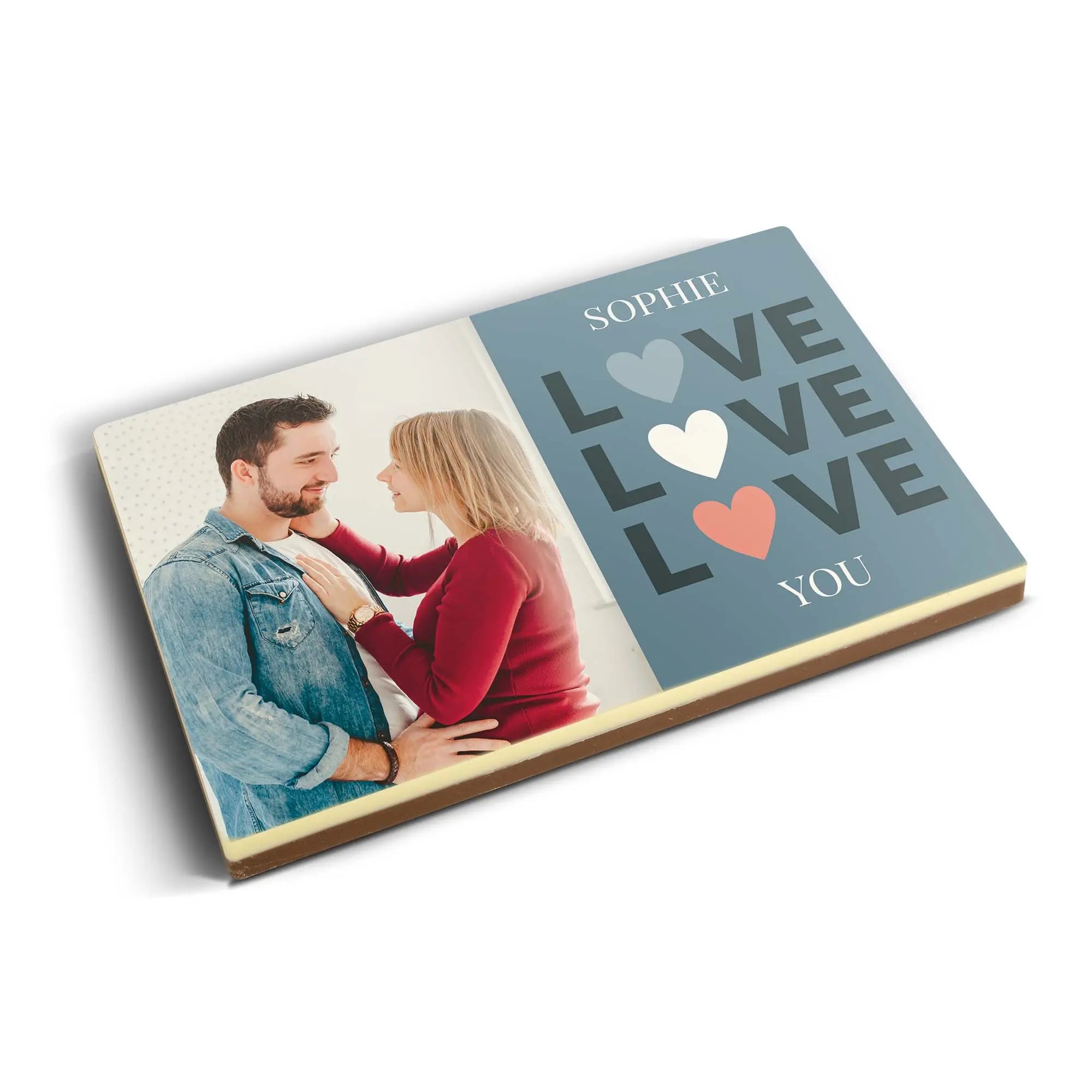 Personalizowany czekoladowy baton z zdjęciem dla miłych serc
