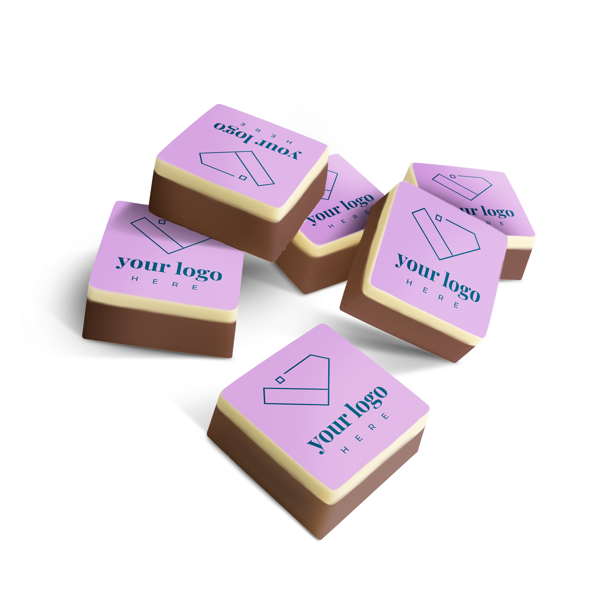 Ilość: 48 czekoladek Czekolada: czekolada mleczna i czekolada z białą polewą czekoladową Kształt: kwadratowy Rozmiar czekoladek: 2,6 x 2,6 cm Personalizacja: nadruk ze zdjęciem lub logo Nadruk: jadalny i pełnokolorowy Jeśli temperatura przekroczy 25 stopni, zalecamy dodanie do zamówienia mrożonego produktu. Składniki: Czekolada mleczna: cukier, masło kakaowe, pełne mleko w proszku, miazga kakaowa, emulgator (lecytyna sojowa), naturalny aromat waniliowy. Co najmniej 34% suchej masy kakaowej. Biała czekolada: cukier, masło kakaowe, pełne mleko w proszku, emulgator (lecytyna sojowa), naturalny aromat waniliowy. Co najmniej 29% suchej masy kakaowej. Wskazówki dotyczące przechowywania: czekoladki można przechowywać do 10 tygodni w chłodnym, ciemnym miejscu w temperaturze 14-18°C. Informacje o alergenach: zawiera soję i mleko. Rozmiar każdej czekoladki to 2,6 x 2,6 cm. Rozmiar może się nieznacznie różnić w zależności od czekolady.