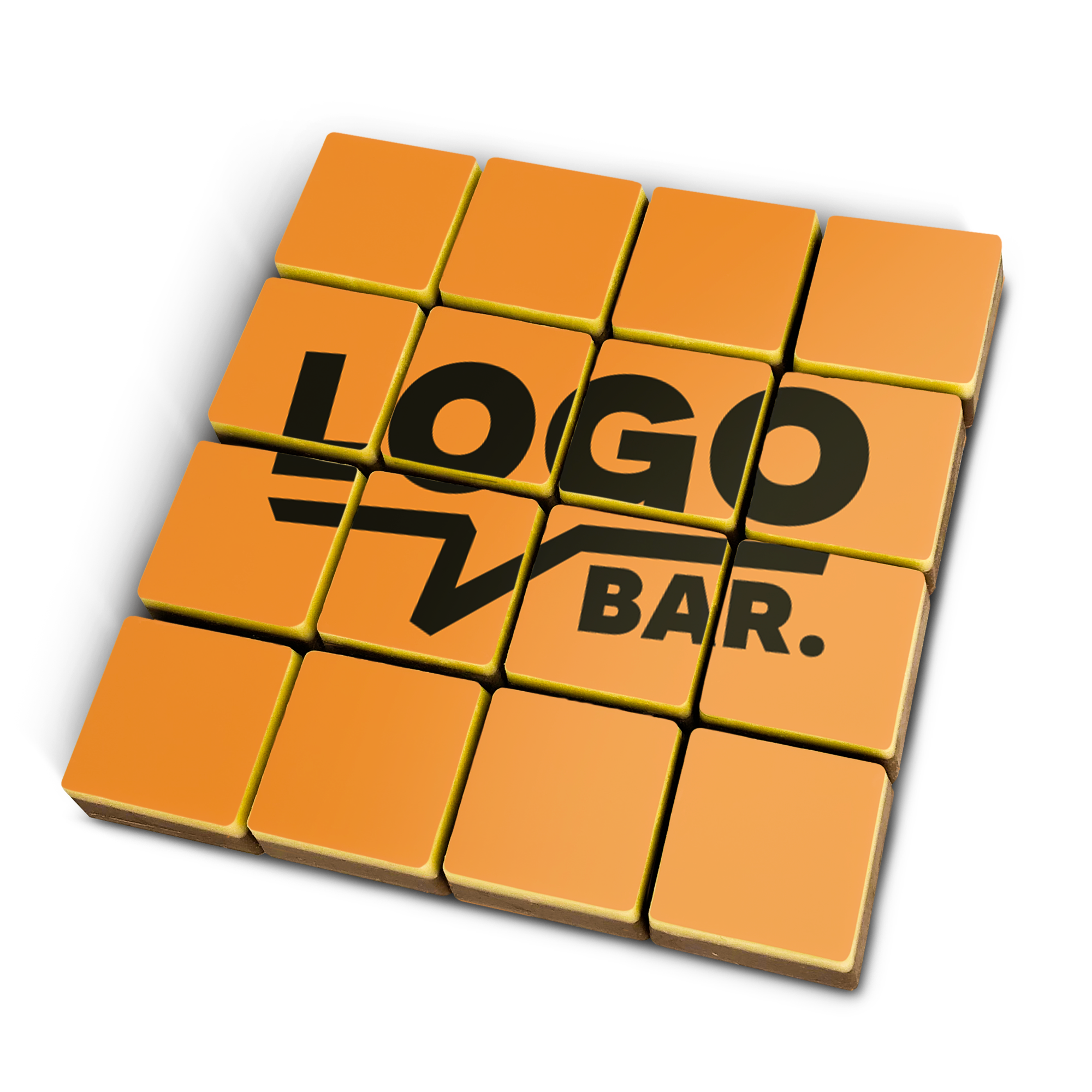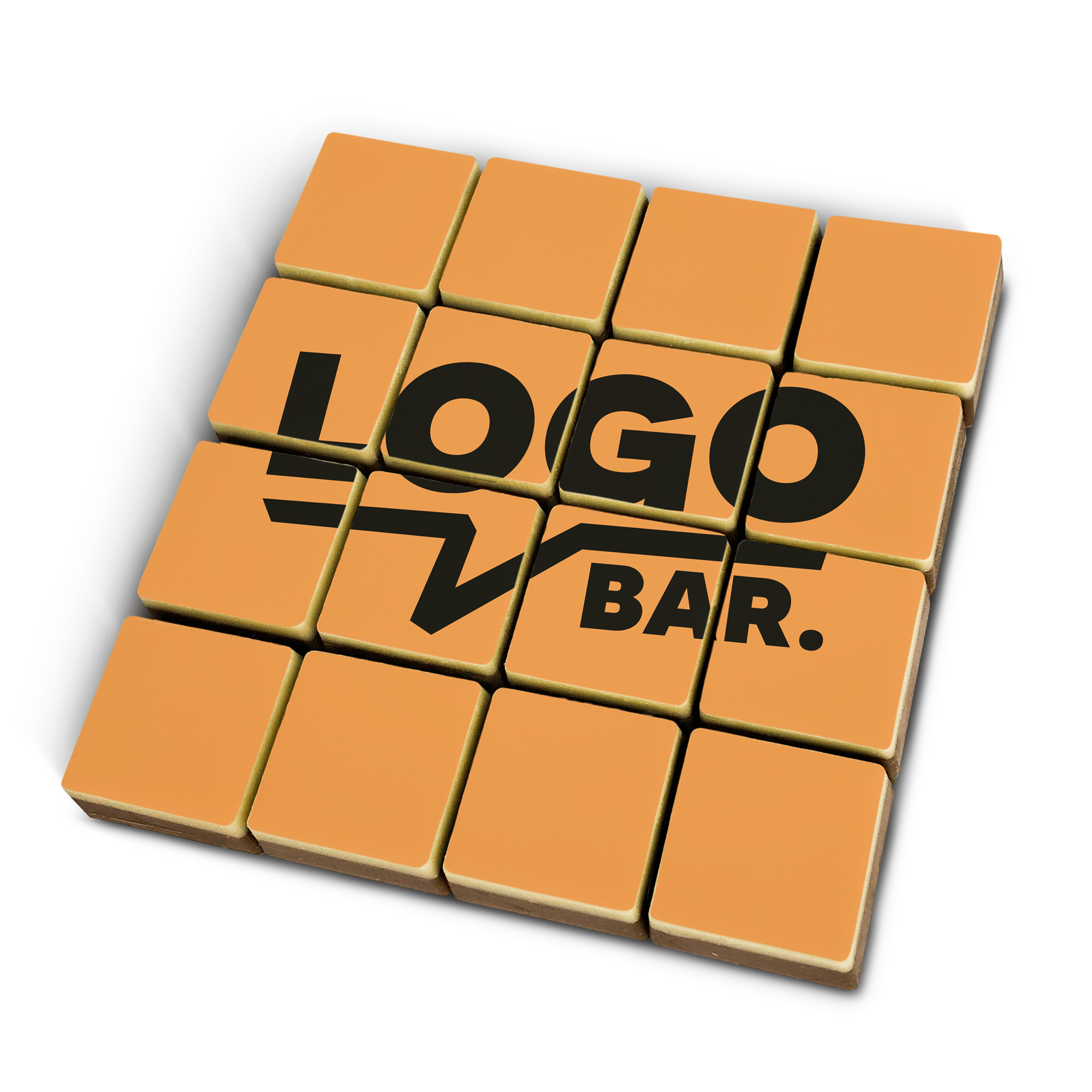 16 czekoladek z mlecznej czekolady z warstwą białej czekolady z jadalnym nadrukiem (zdjęcie lub logo).