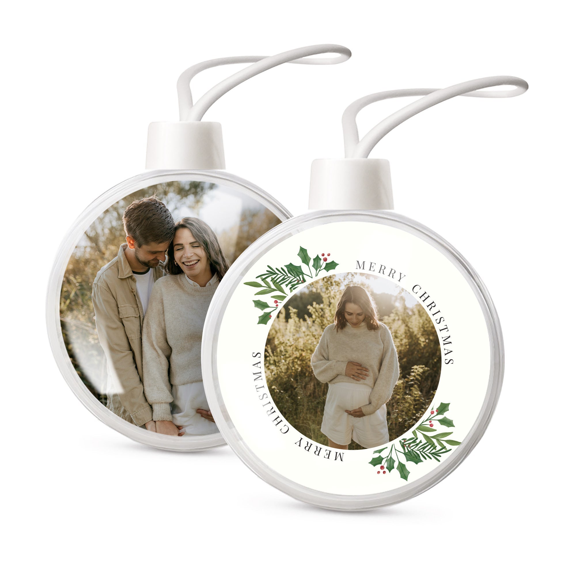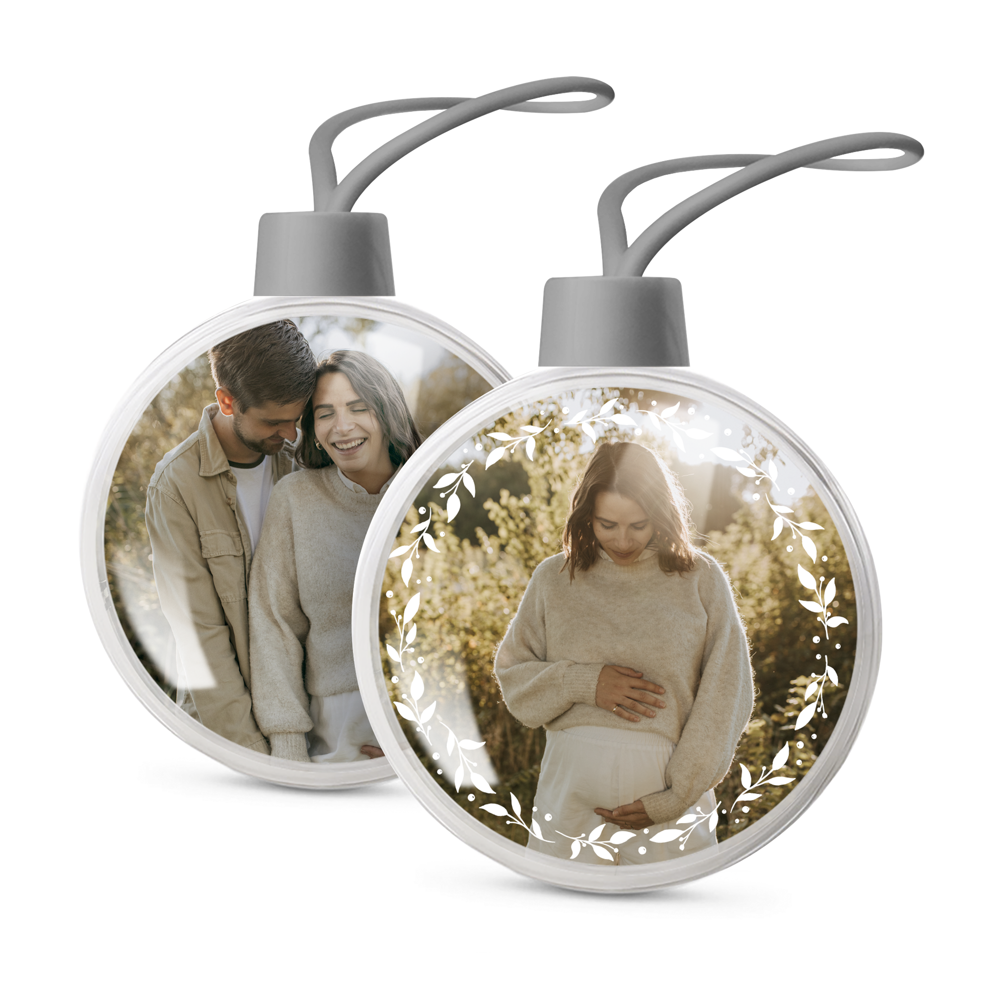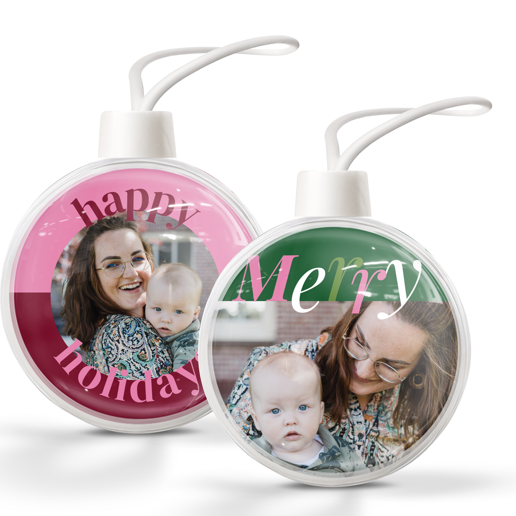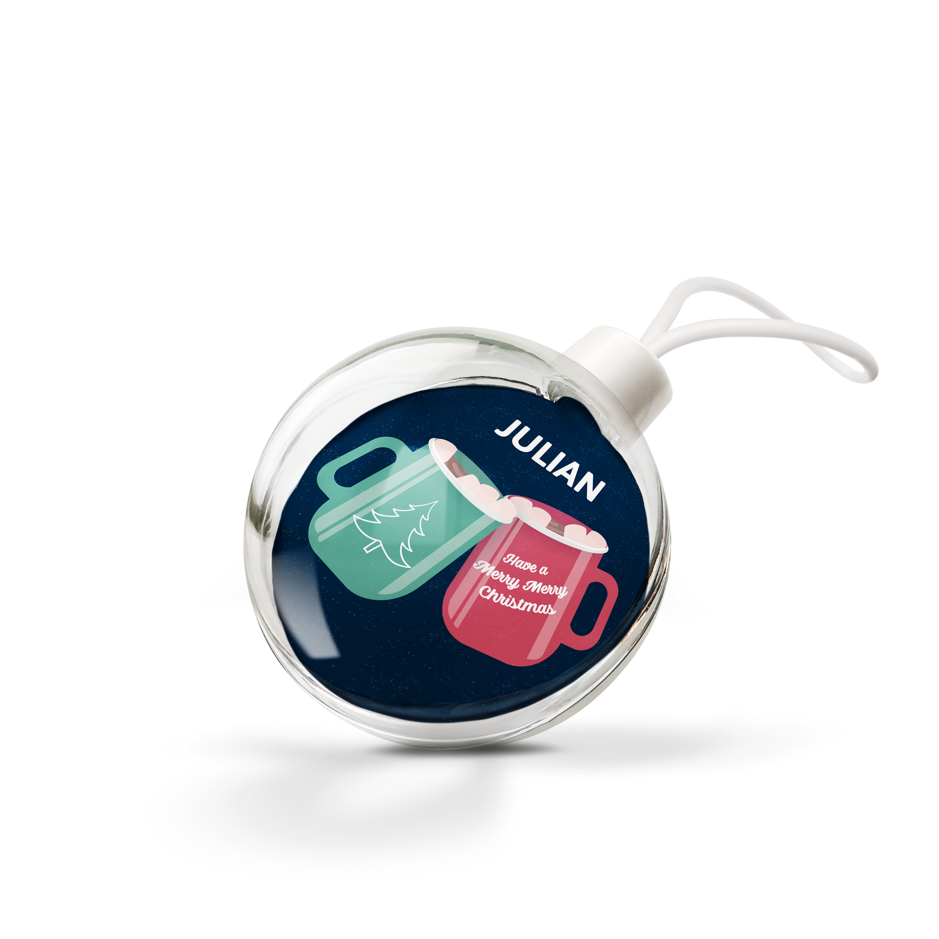 Twoje własne zdjęcie i tekst wewnątrz spersonalizowanych, przezroczystych bombek świątecznych. Dwustronny obraz!
