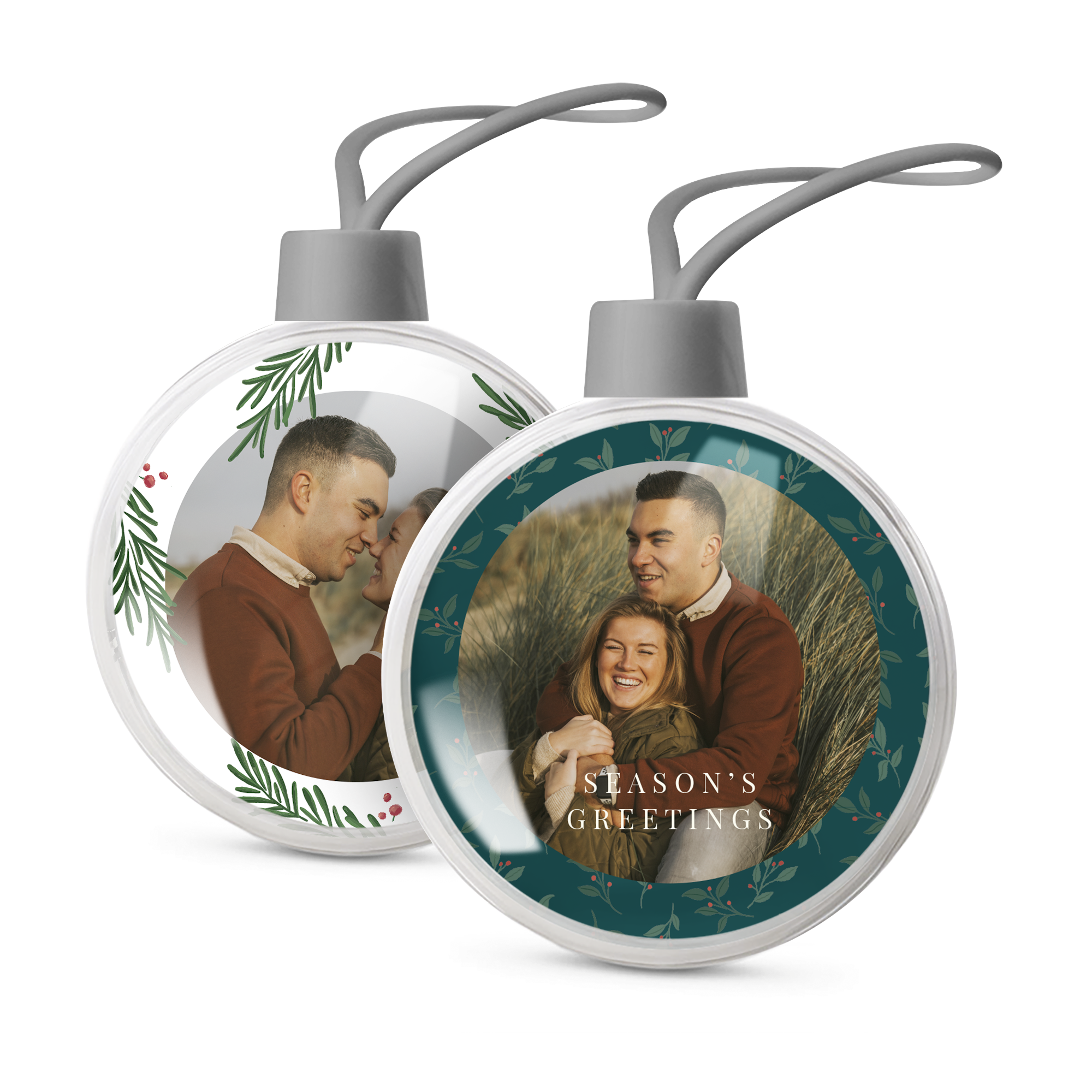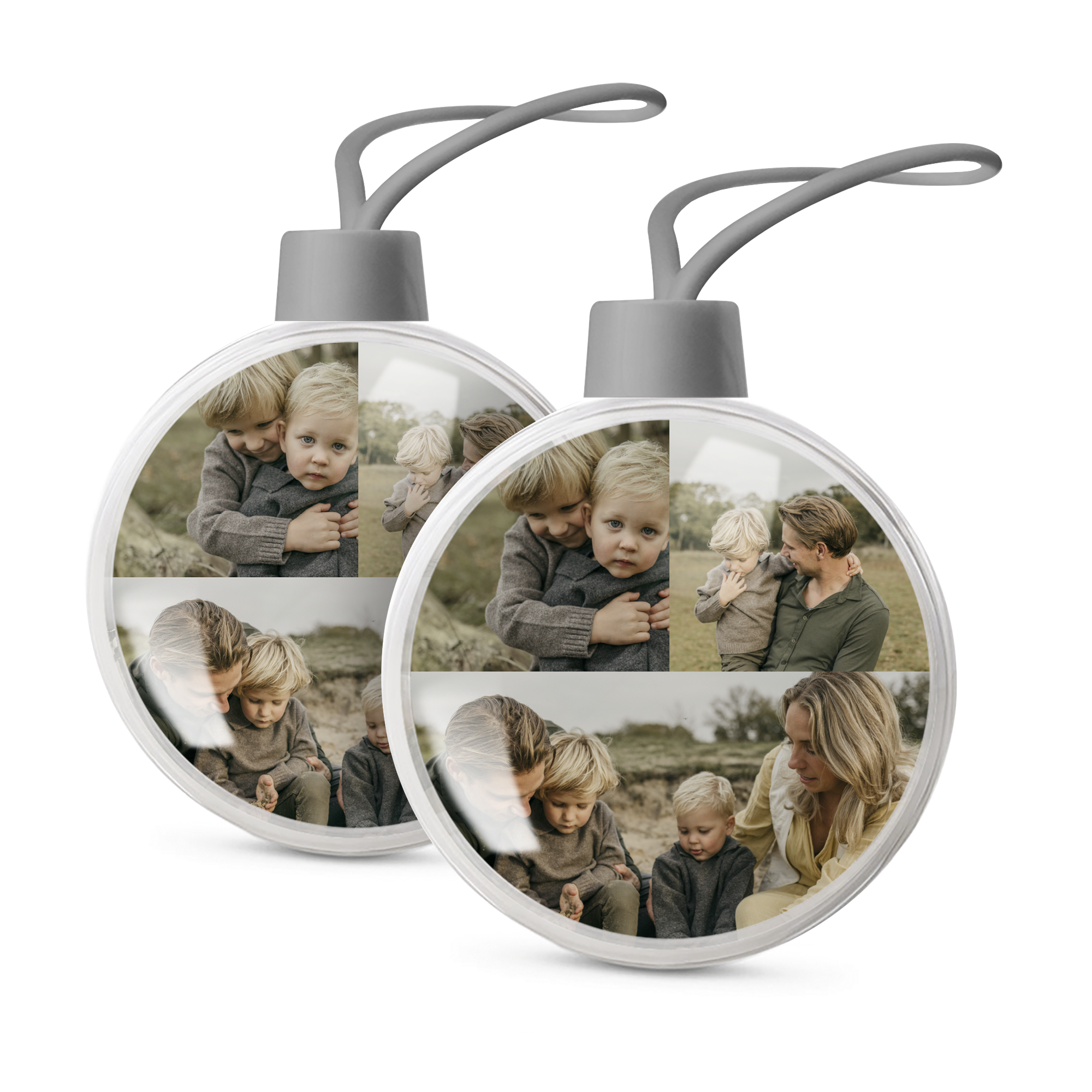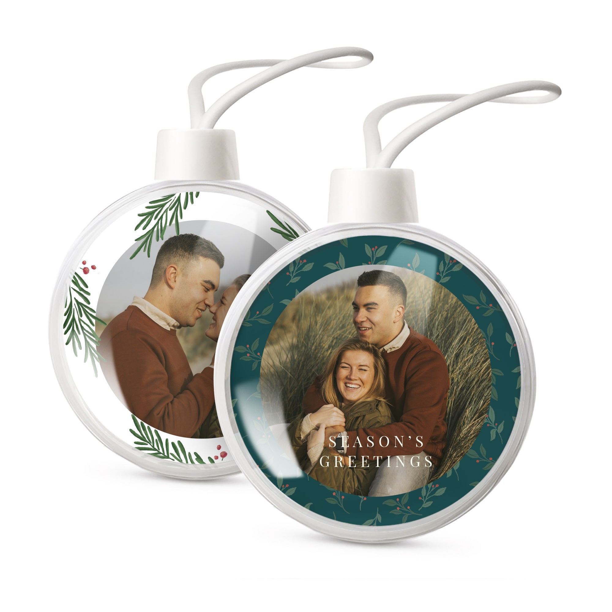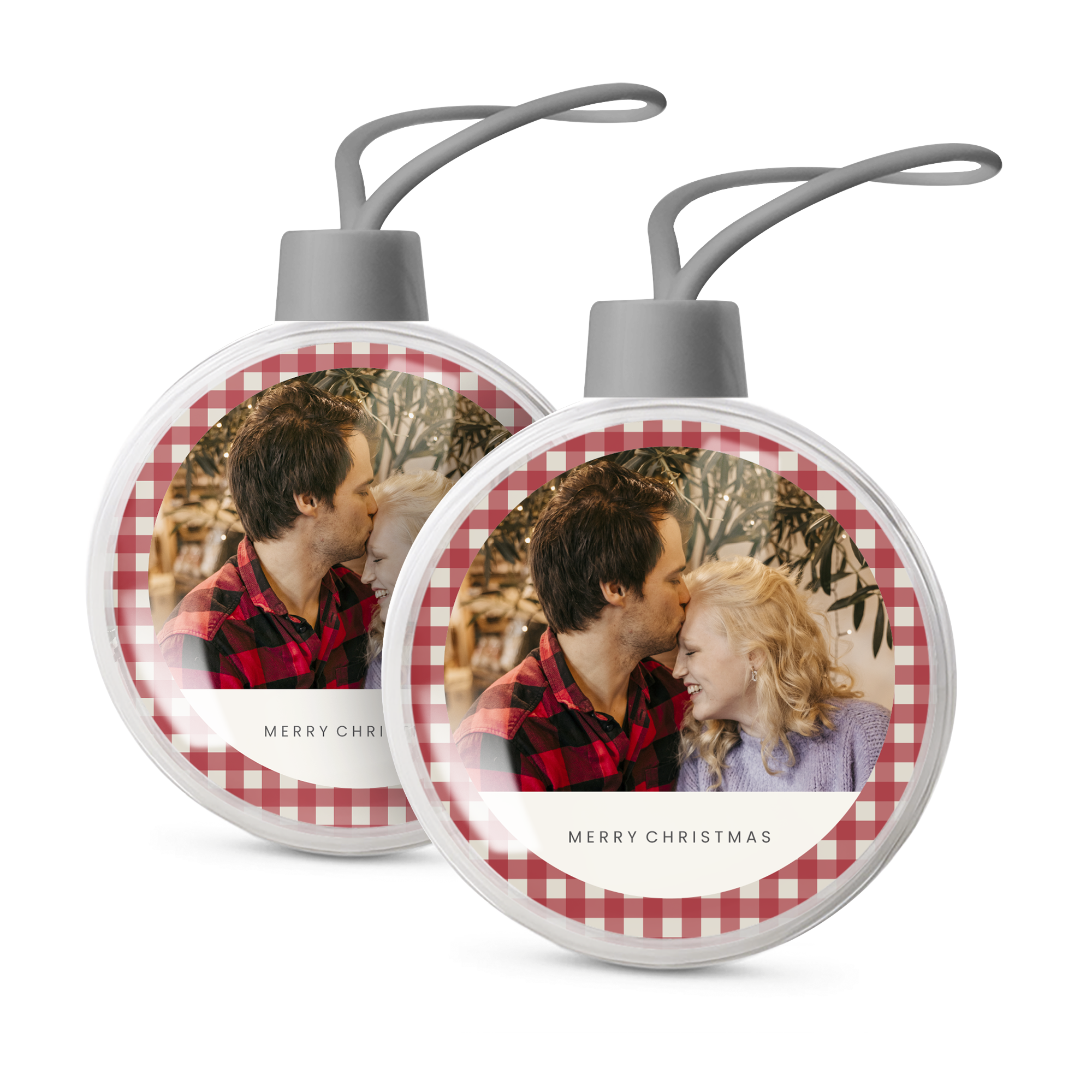 Twoje własne zdjęcie i tekst wewnątrz spersonalizowanych, przezroczystych bombek świątecznych. Dwustronny obraz!