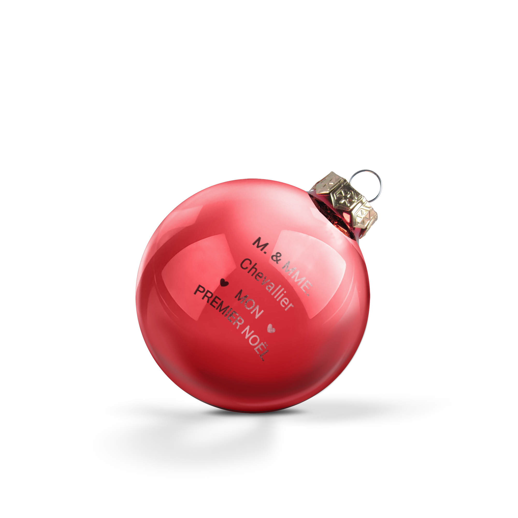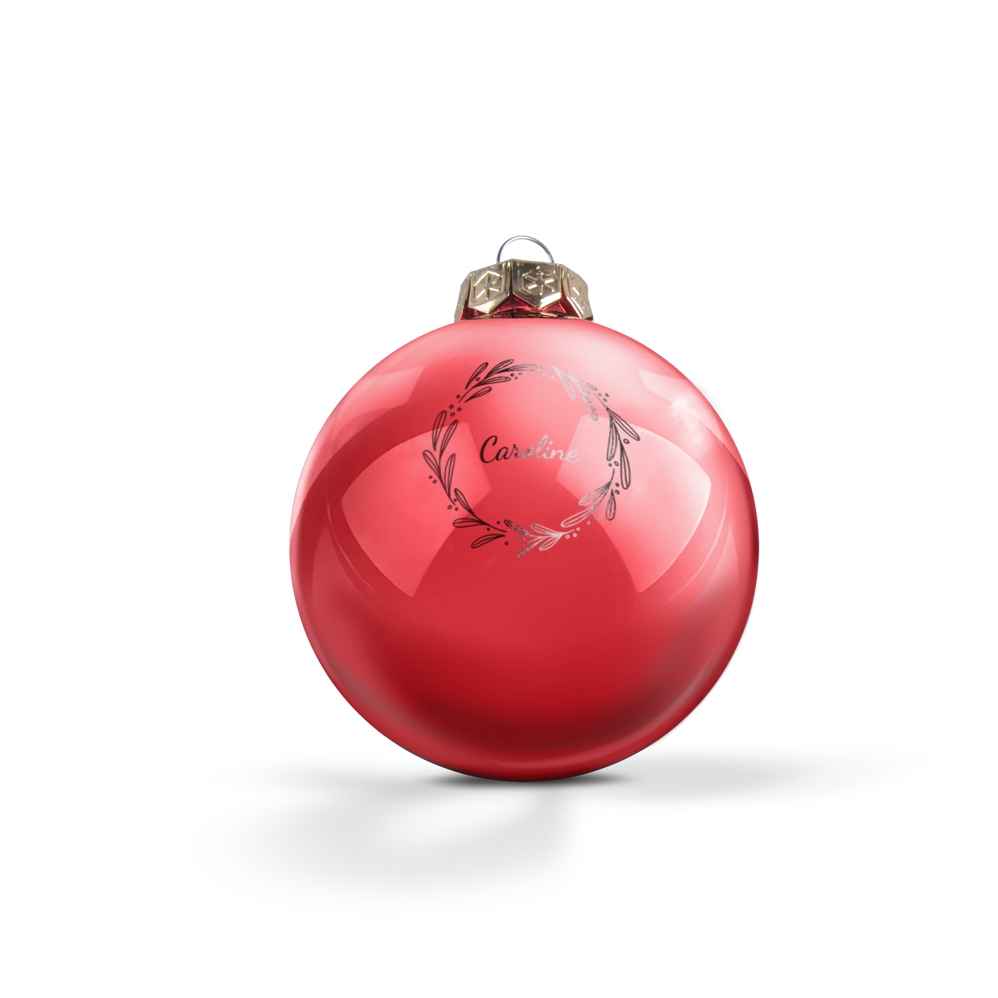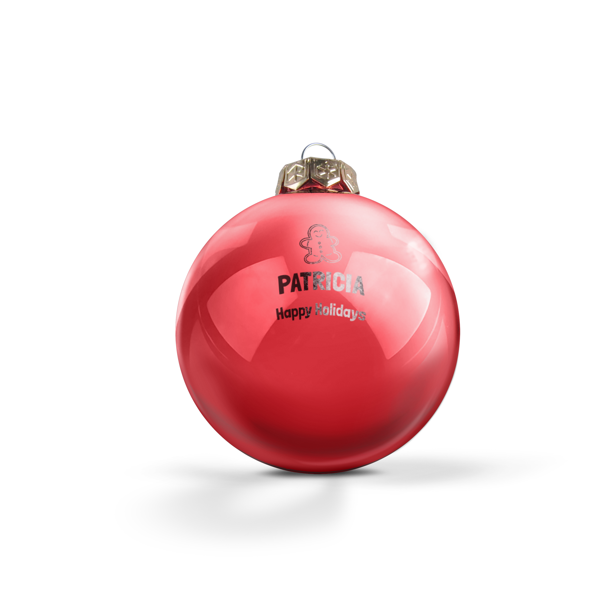 Więcej informacji o szklanych bombkach świątecznych: Ilość: zestaw 2 szt. Rozmiar: Ø 8 cm Materiał: wysokiej jakości błyszczące szkło (nieprzezroczyste) Kolory: złoty, srebrny i czerwony Personalizacja: imieniem i/lub tekstem Grawerowanie: precyzyjna technika laserowa Miejsce: jednostronnie na środku bombki Koronka: złota ze sznurkiem