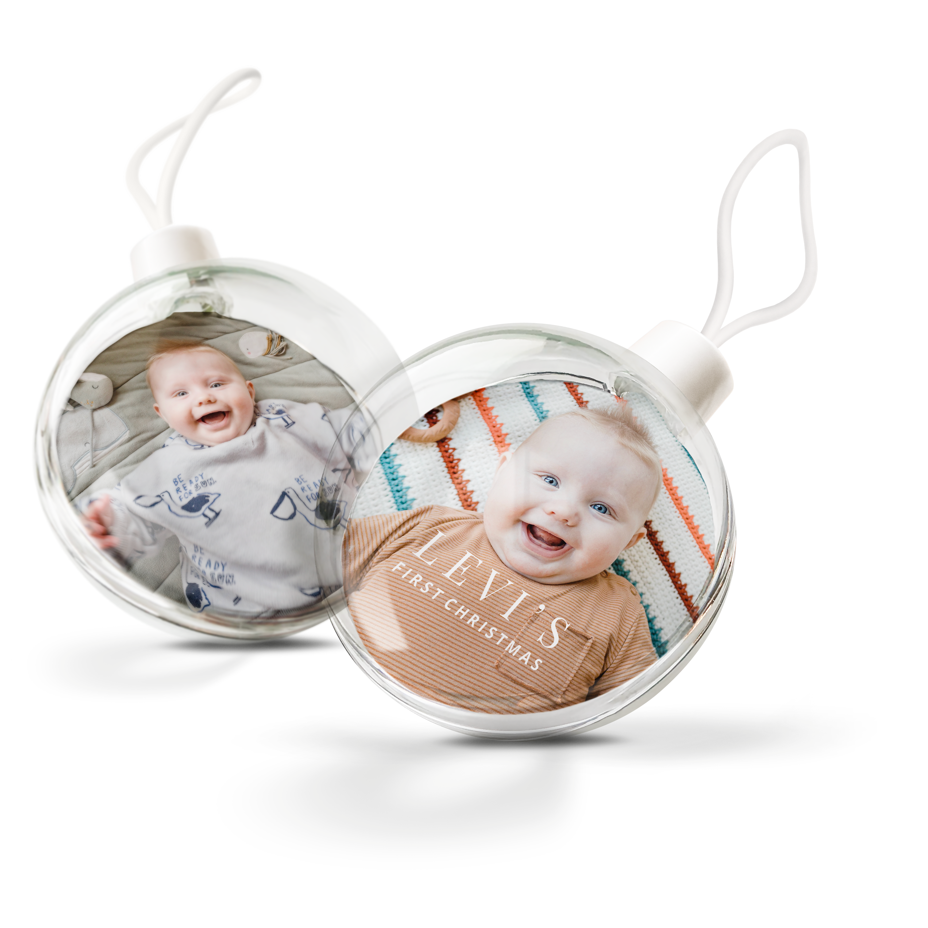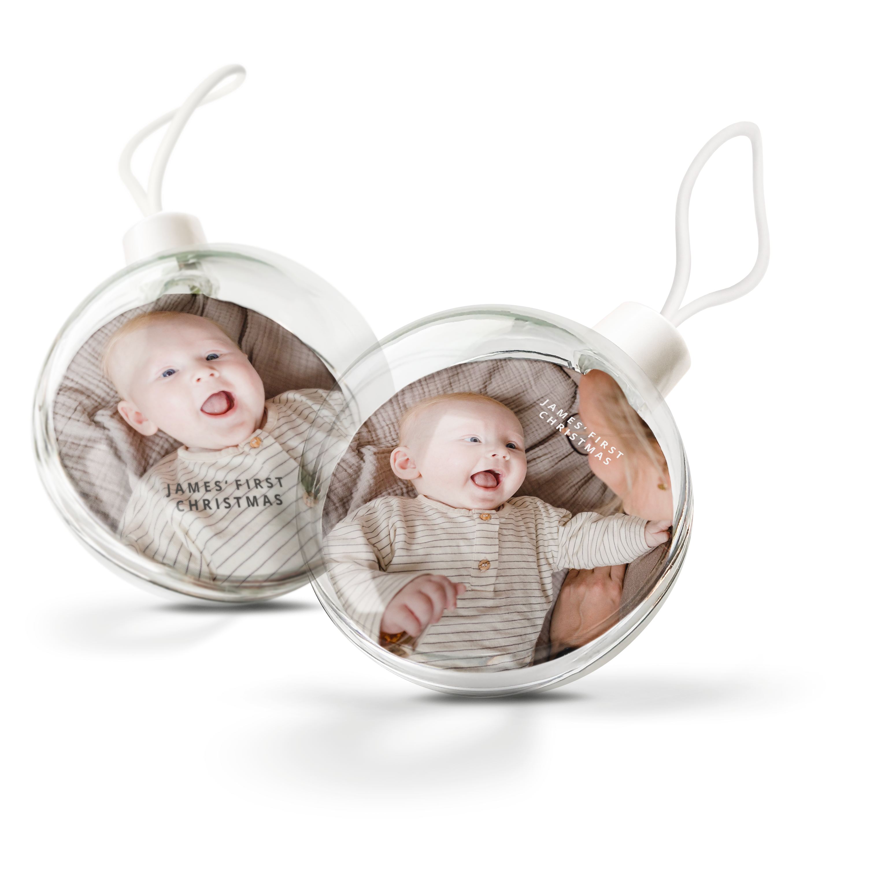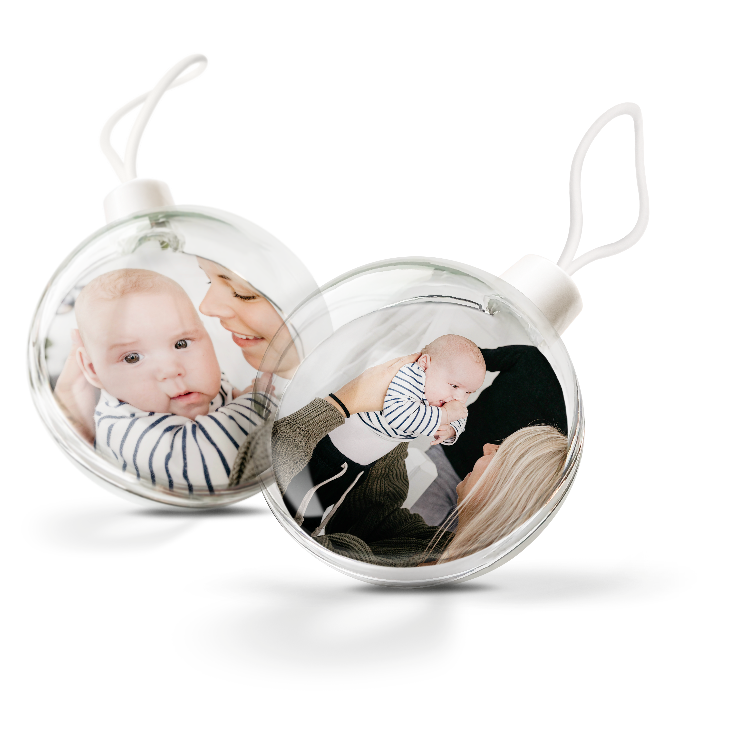 Więcej informacji o przezroczystych bombkach świątecznych:Ilość: zestaw 2 szt.Rozmiar: Ø 8 cm Materiał: wysokiej jakości plastikKolor: przezroczystyPersonalizacja: zdjęciem i/lub tekstemNadruk: idealny, pełnokolorowyPołożenie: dwustronny wewnątrz bombkiKażda bombka może być indywidualnie spersonalizowana.