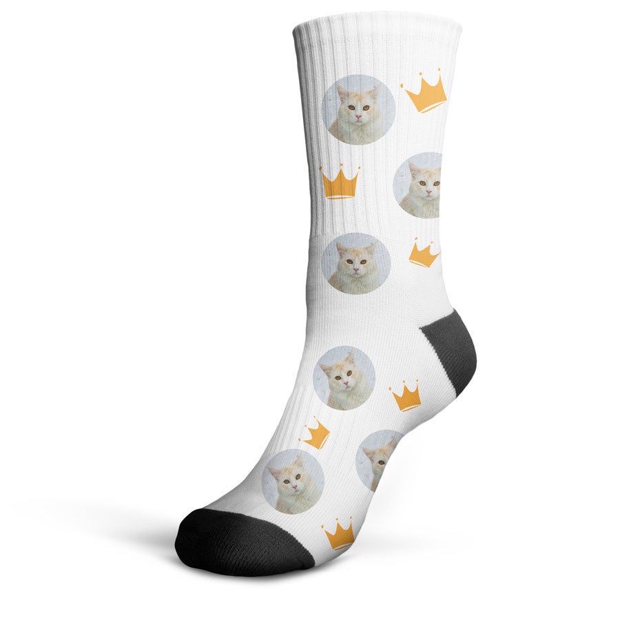 Więcej informacji o skarpetkach z nadrukiem:Kolor: białyDetale: czarny detal na pięcie i palcachRozmiar: EU 35-38 (20,5 cm)Materiał: 95% poliester, 5% lycraPersonalizacja: zdjęciem i/lub logoNadruk: idealny, w pełnym kolorze na obu skarpetkachDodatkowo: skarpetki można prać w temperaturze 30°C