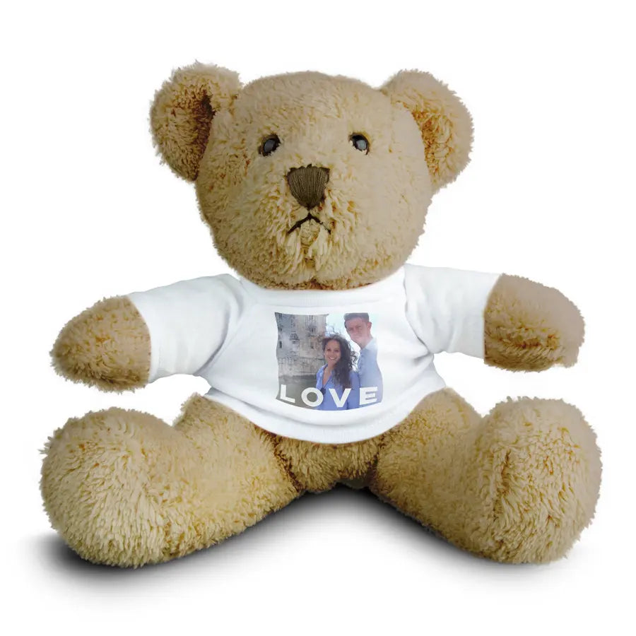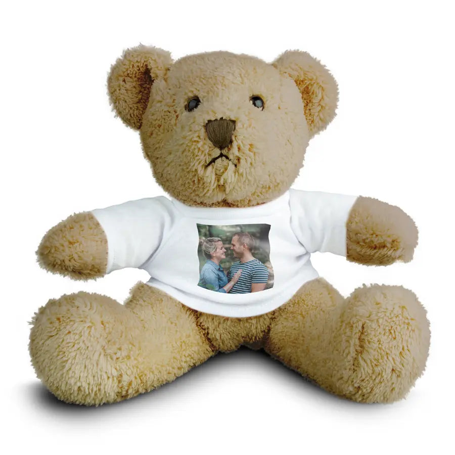 Billy Bear to pluszowy miś noszący spersonalizowaną koszulkę z Twoim zdjęciem i tekstem!Więcej informacji na temat spersonalizowanej pluszowej zabawki:Imię: Billy BearWysokość: 20 cmPersonalizacja: zdjęciemNadruk: idealny, w pełnym kolorzeWymiary nadruku: 5 x 5 cmMateriał koszulki: miękka mieszanka białej bawełnyDodatki: certyfikat CE, a zatem zgodność z normami bezpieczeństwa