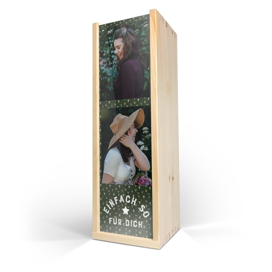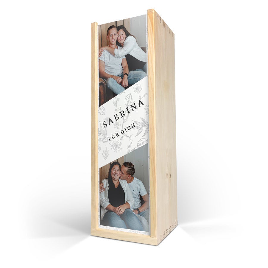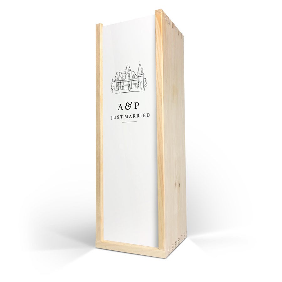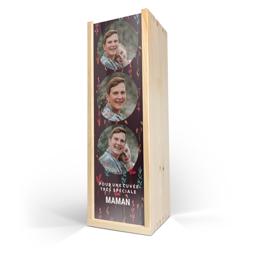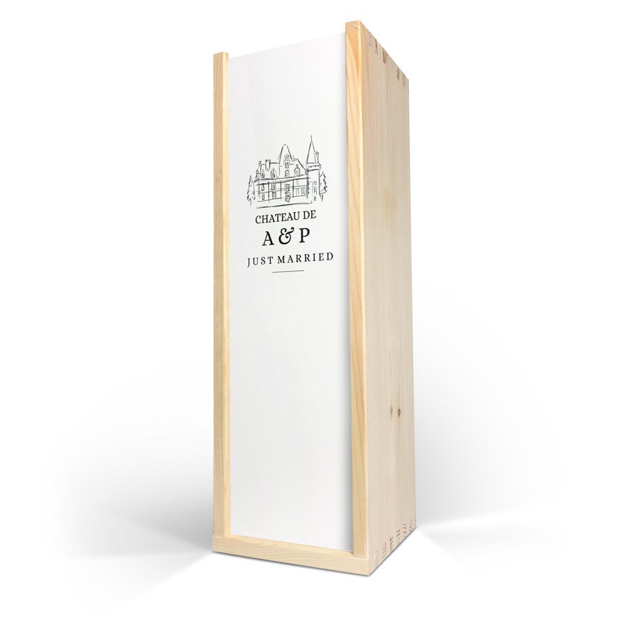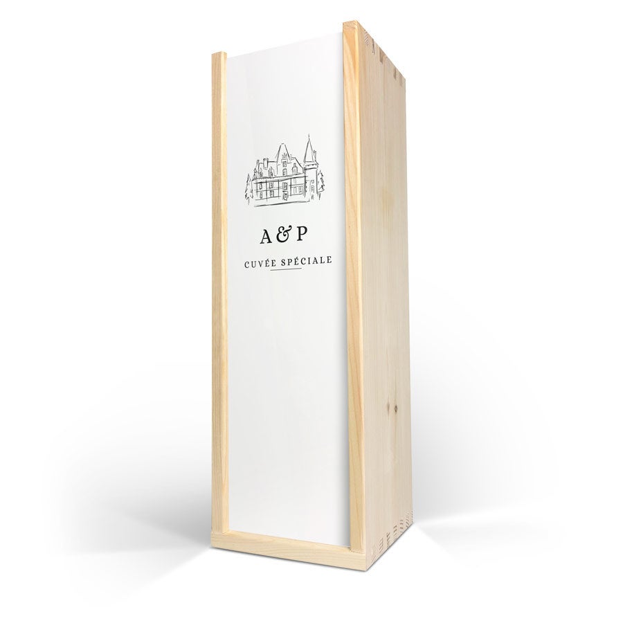 Pyszne wino Maison de la Surprise w luksusowej drewnianej skrzynce ze zdjęciem, logo i/lub tekstem według Twojego wyboru. Stwórz swoje już teraz!