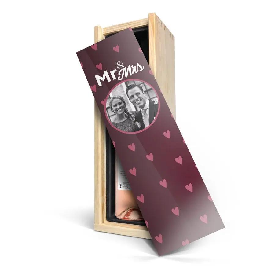 Wyśmienite wino Maison de la Surprise w luksusowej drewnianej skrzynce z wybranym zdjęciem, logo i/lub tekstem. Stwórz swoje już teraz!