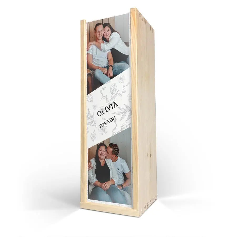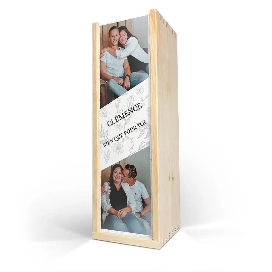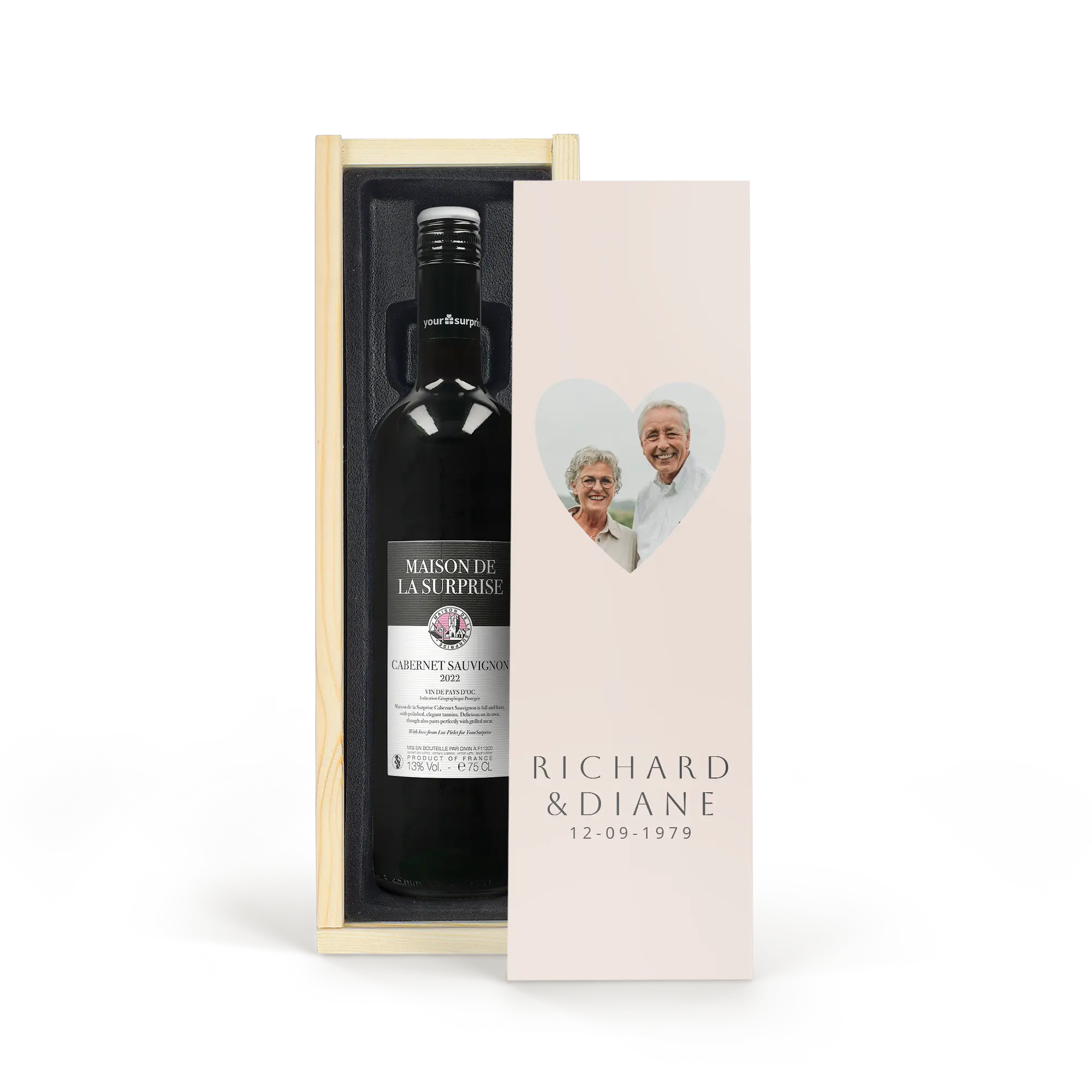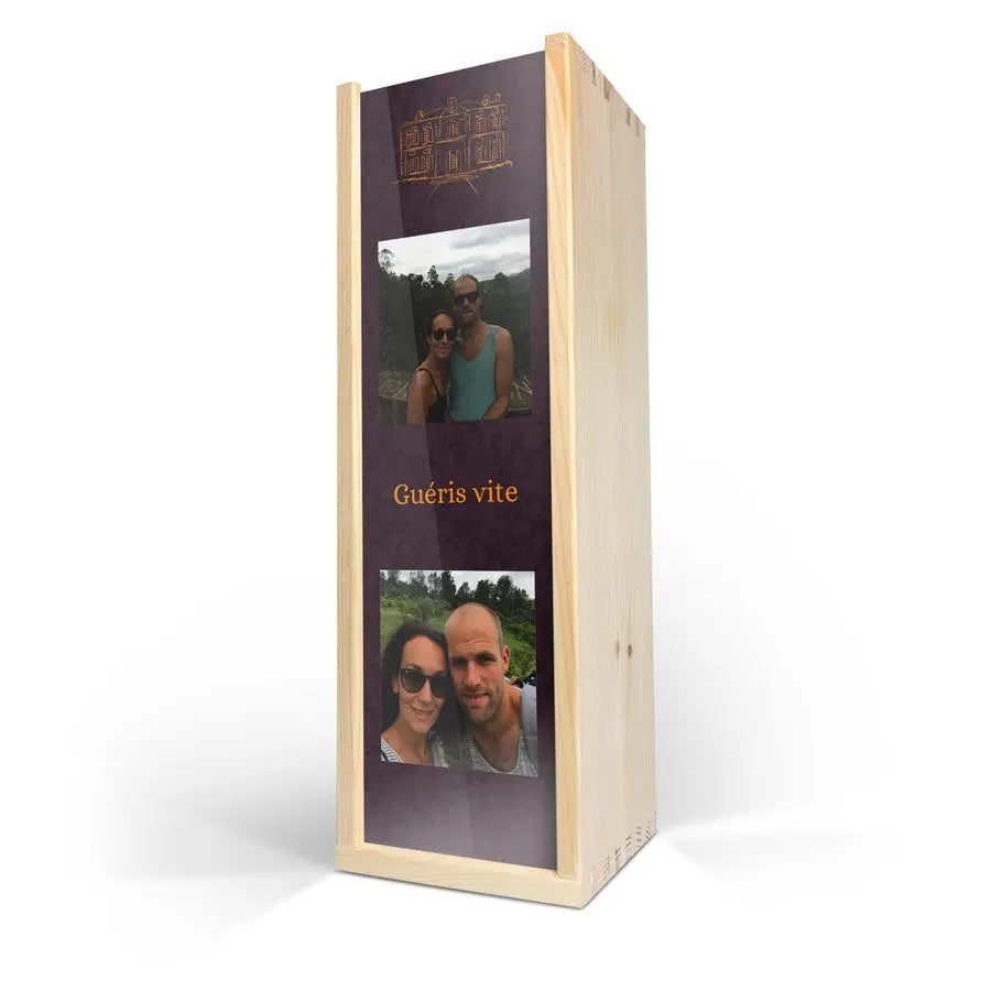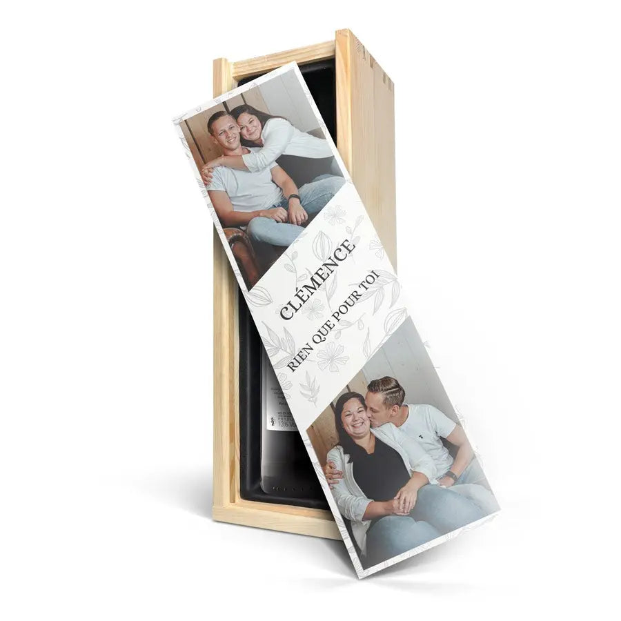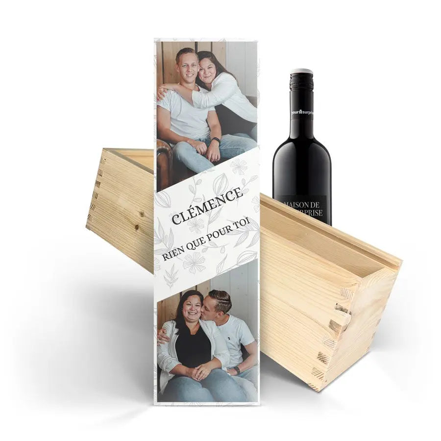 Wyśmienite wino Maison de la Surprise w luksusowej drewnianej skrzynce ze zdjęciem, logo i/lub wybranym tekstem. Stwórz swoją już teraz!