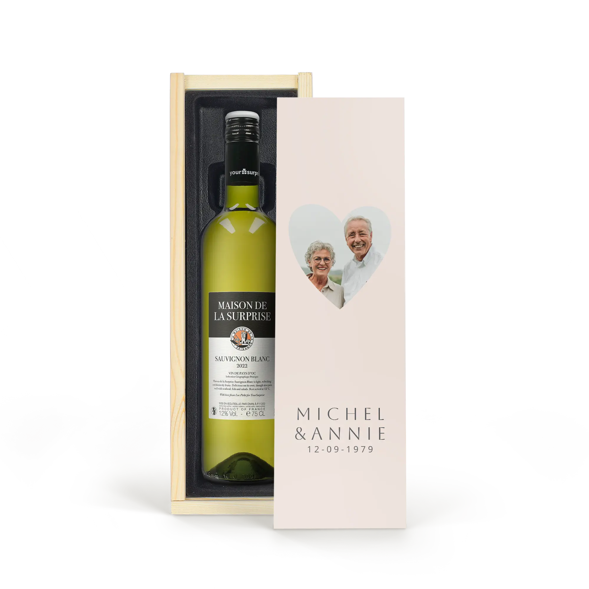 Wino w spersonalizowanej drewnianej skrzynce - Maison de la Surprise - Sauvignon Blanc