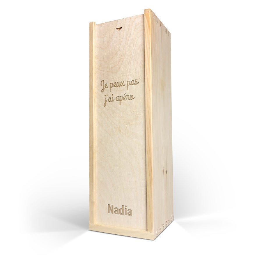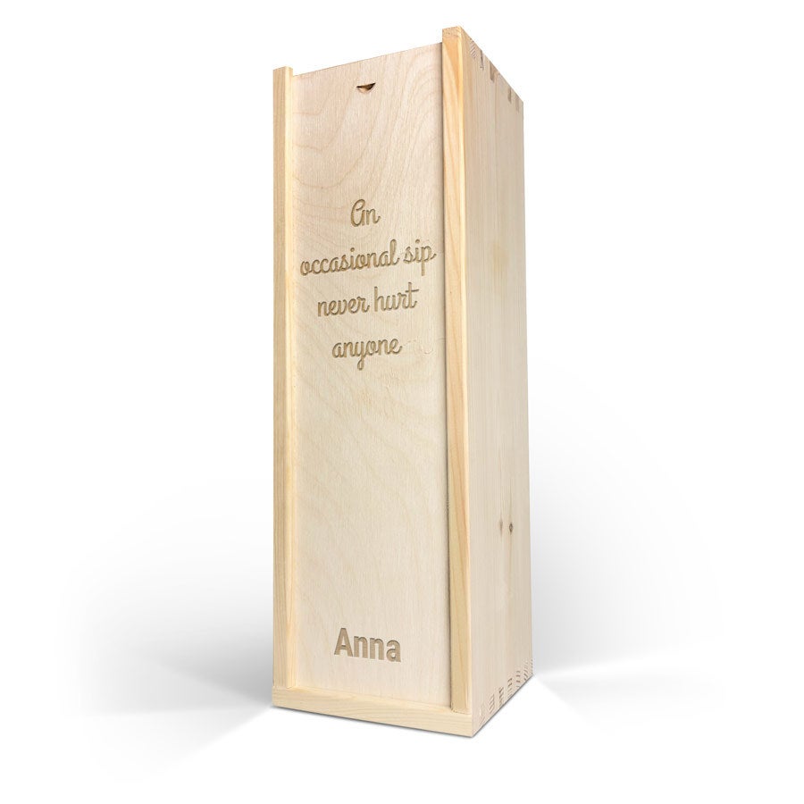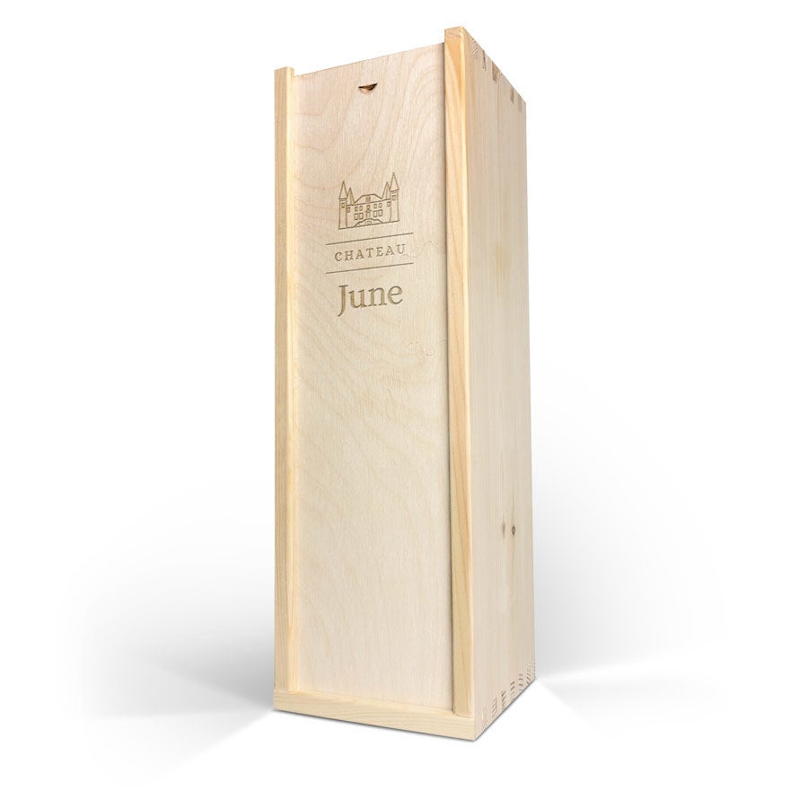 Pyszne wino Maison de la Surprise w luksusowej drewnianej skrzynce z wybranym przez Ciebie imieniem i/lub tekstem. Stwórz swoje już teraz!