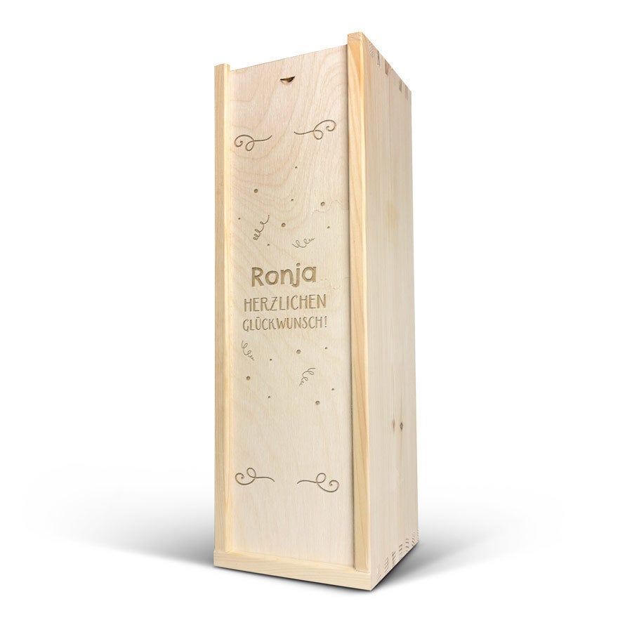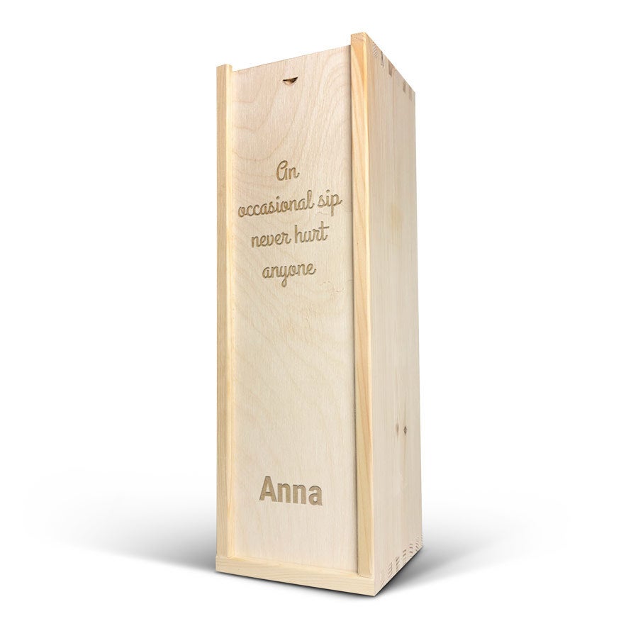 Elegancka cava w personalizowanej skrzynce, idealna na wyjątkowe okazje. Możliwość dodania własnego tekstu sprawia, że prezent staje się niepowtarzalny i osobisty.