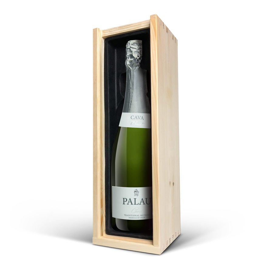 Cava Palau Gazo Brut, drewniana skrzynka z personalizacją.