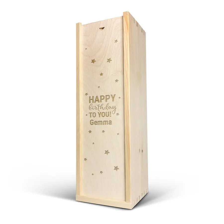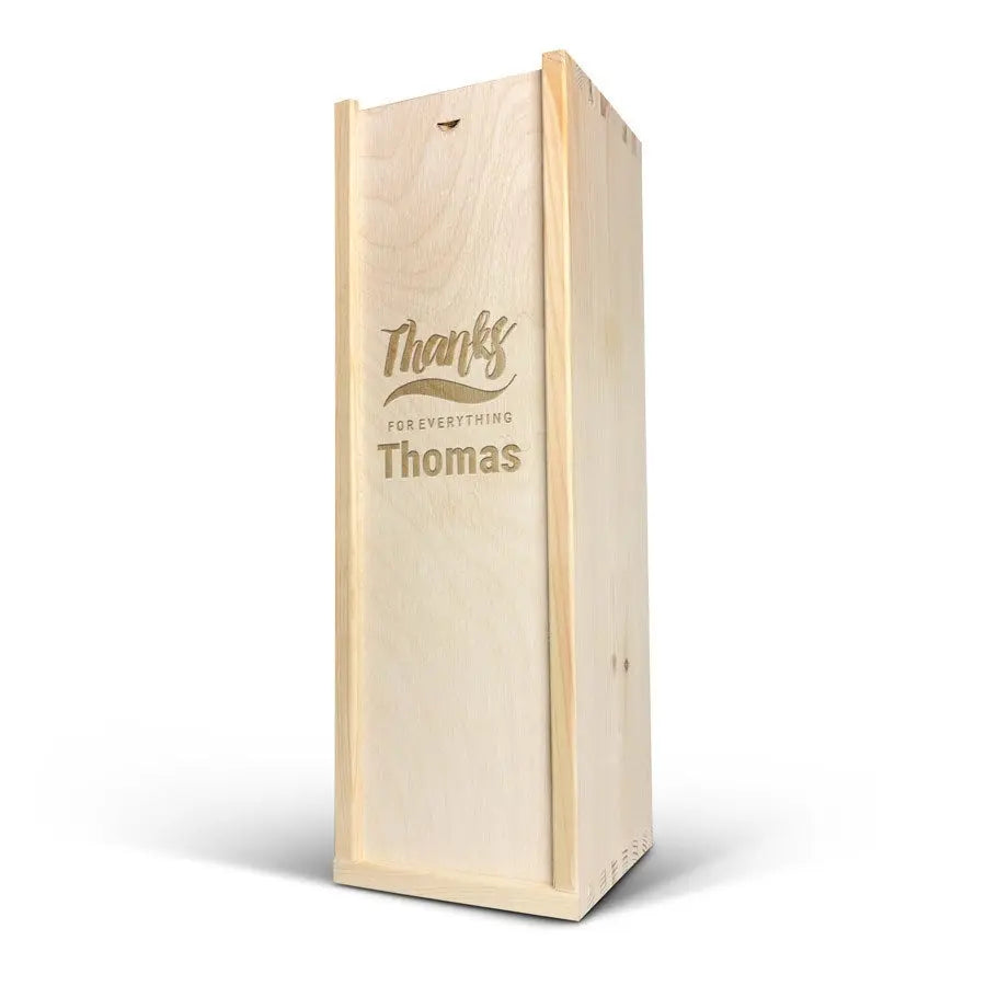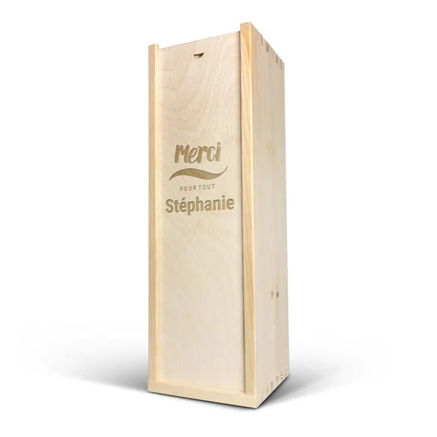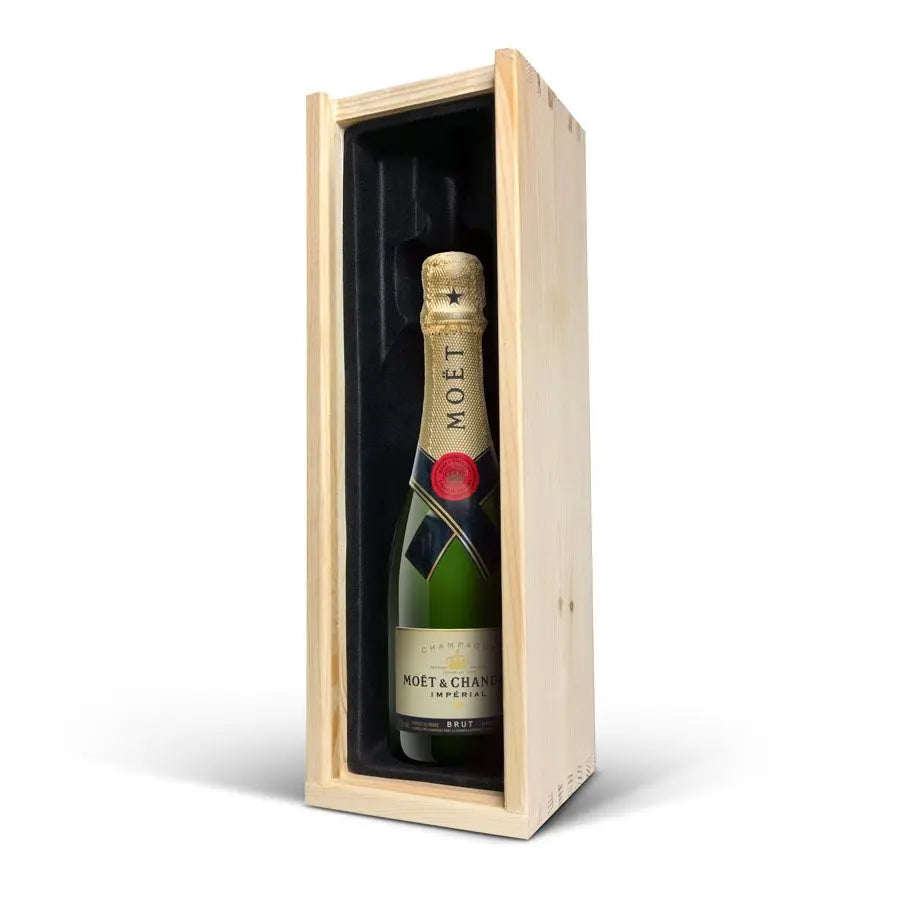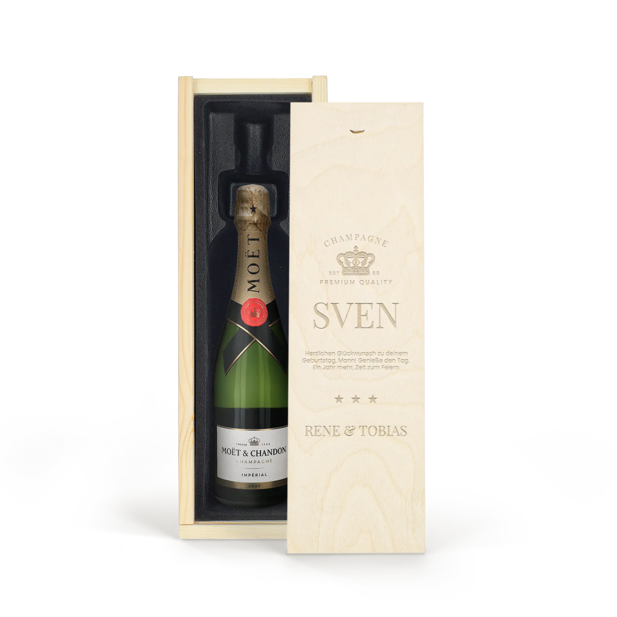 Wyśmienita butelka szampana Moët & Chandon w grawerowanej drewnianej skrzynce z Twoim imieniem lub tekstem.