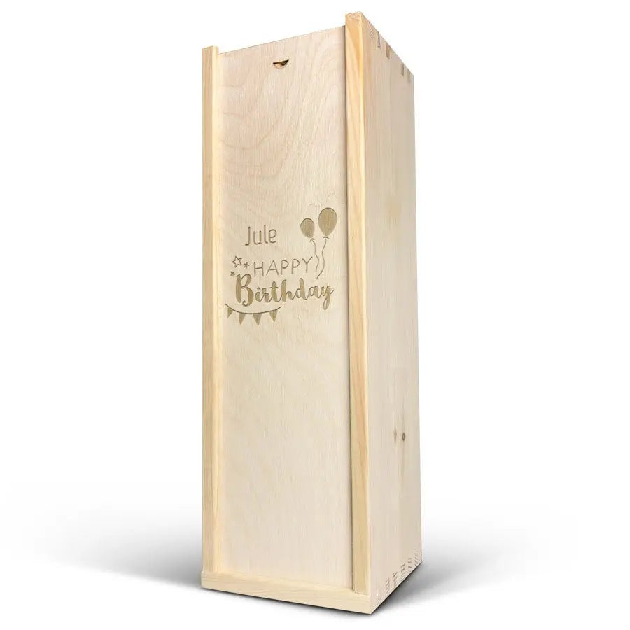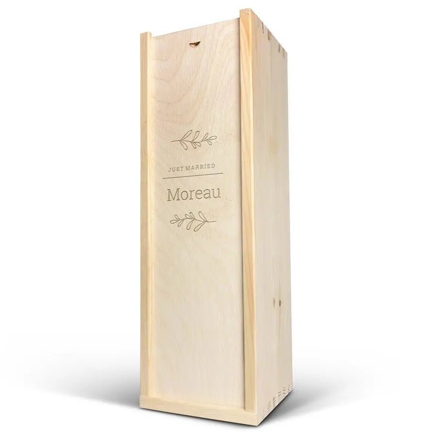Pyszna butelka szampana Moët & Chandon w drewnianym pudełku prezentowym z wybranym tekstem!Więcej informacji o luksusowym drewnianym pudełku:Personalizacja: imieniem lub tekstemUmieszczenie personalizacji: na pokrywie drewnianego pudełkaMetoda personalizacji: wysokiej jakości grawer laserowyWymiary pudełka: 42,2 x 13,6 x 13,6 cmWymiary pokrywy: 41,7 x 12,3 x 0,4 cmDrewniane pudełko posiada certyfikat FSCWięcej informacji o szampanie:Marka: Moët & ChandonRodzaj: musującyPojemność: 1500 mlKraj pochodzenia: FrancjaWinogrona: Pinot Noir, Chardonnay, Pinot MeunierCharakter: Nuty kwiatu lipy, ciasta i tostów. Pełny i delikatny smak. Dobrze komponuje się z ostrygami.