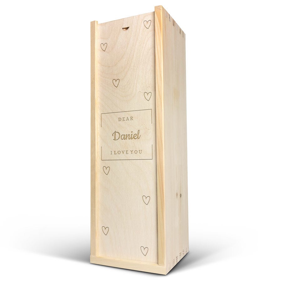 Szampan Moët & Chandon, drewniana skrzynka z personalizacją laserową.