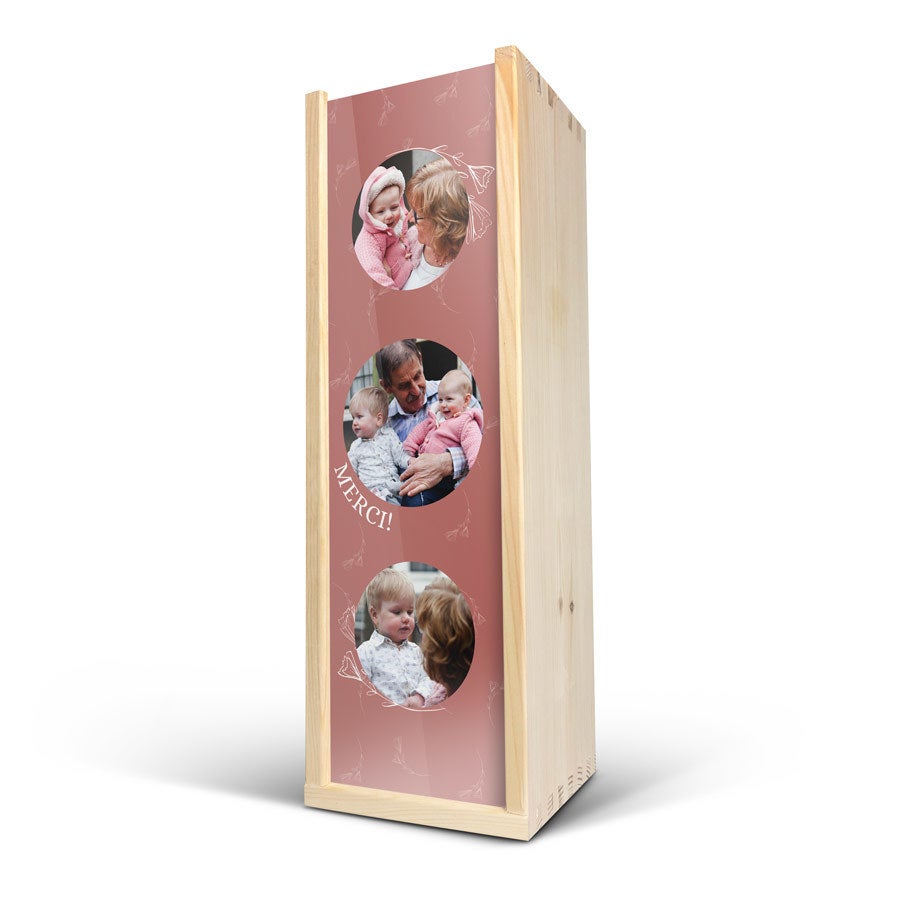 Butelka Cava Palau Gazo, drewniana obudowa z możliwością personalizacji.
