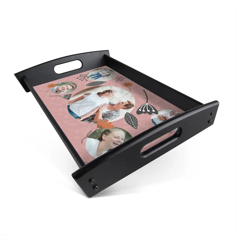 Ładne tace do serwowania z własnym zdjęciem i tekstem! Kilka ładnych wzorów.Więcej informacji o personalizowanej tacy do serwowania:Kolor: czarnyMateriał: luksusowa drewniana rama z solidnym środkiem z płyty pilśniowejWykończenie: błyszcząceWymiary: 48 x 35 cmPersonalizacja: zdjęciem, logo lub kolażemNadruk: idealny obraz i pełnokolorowy