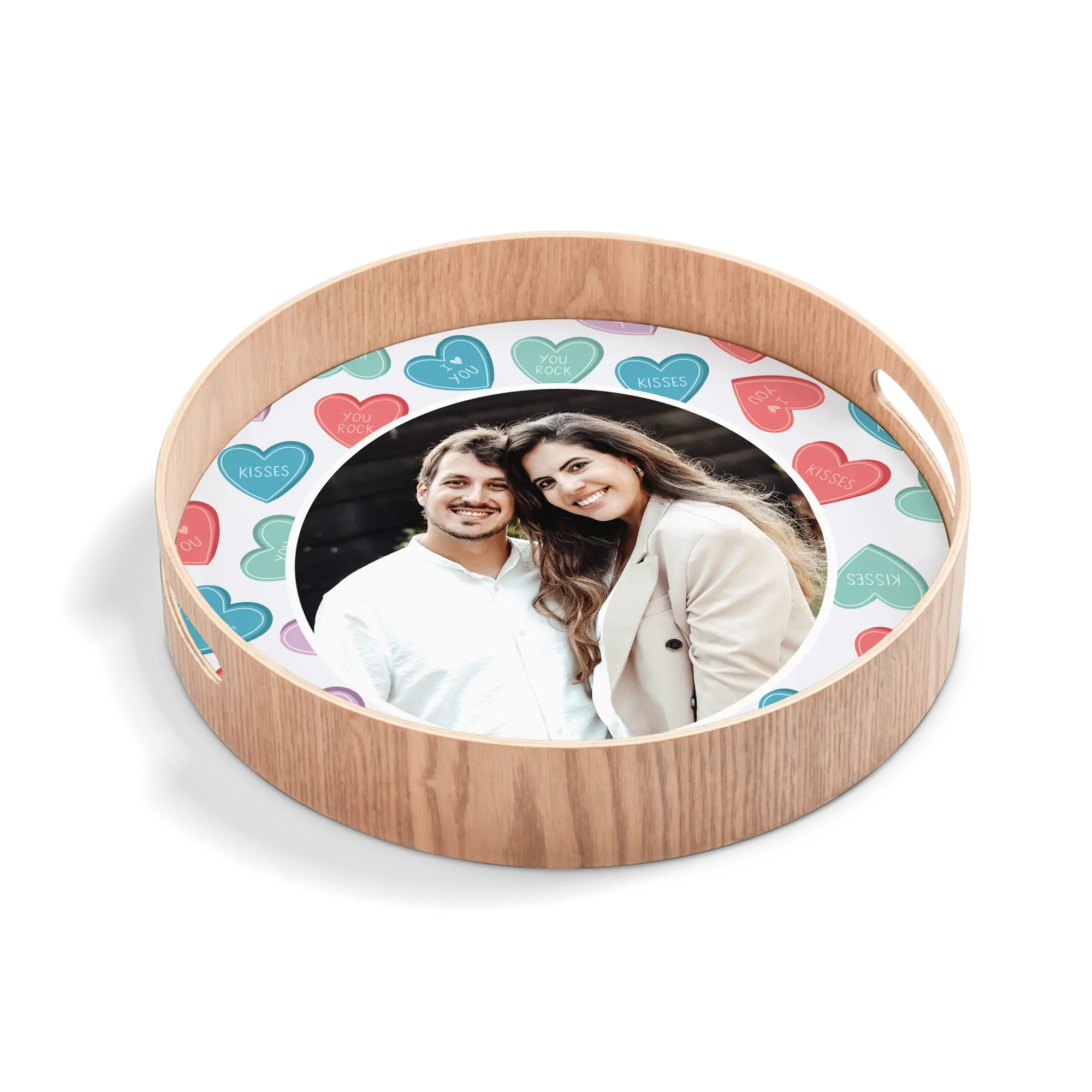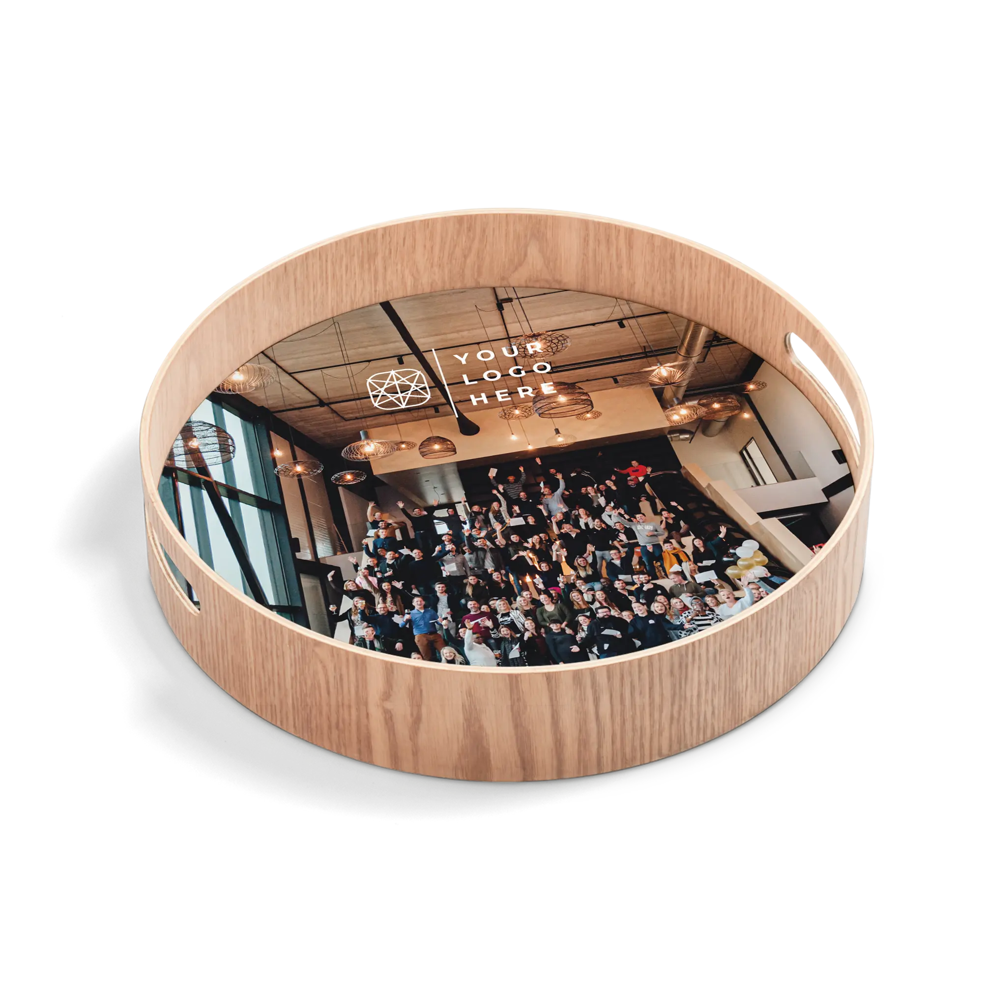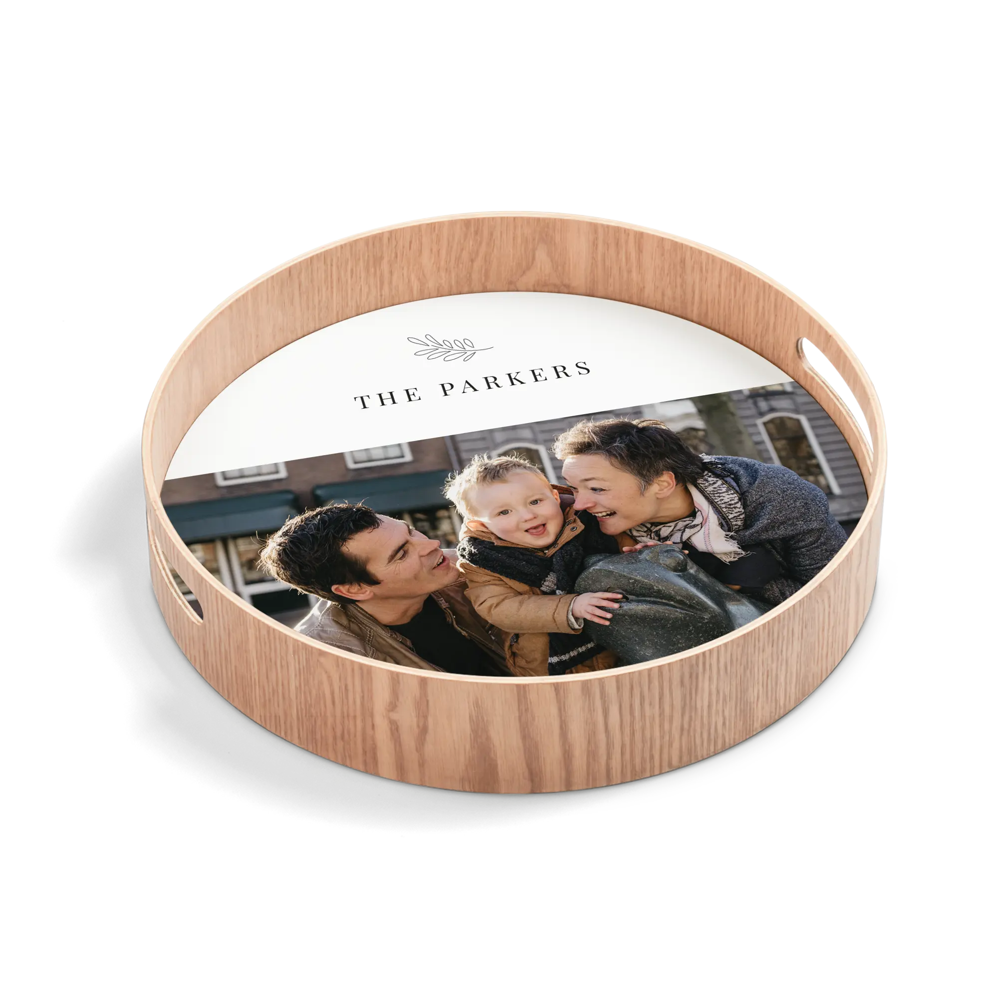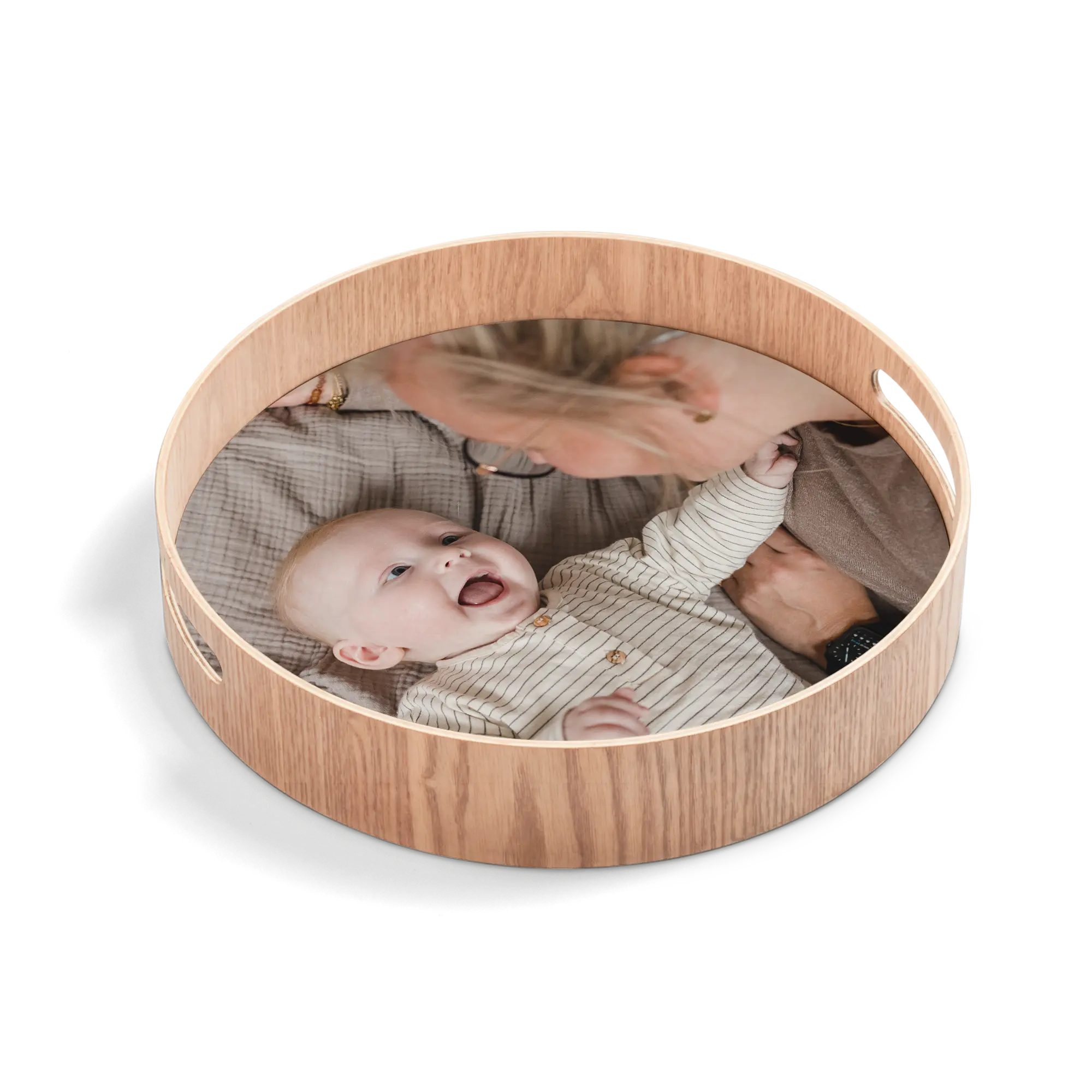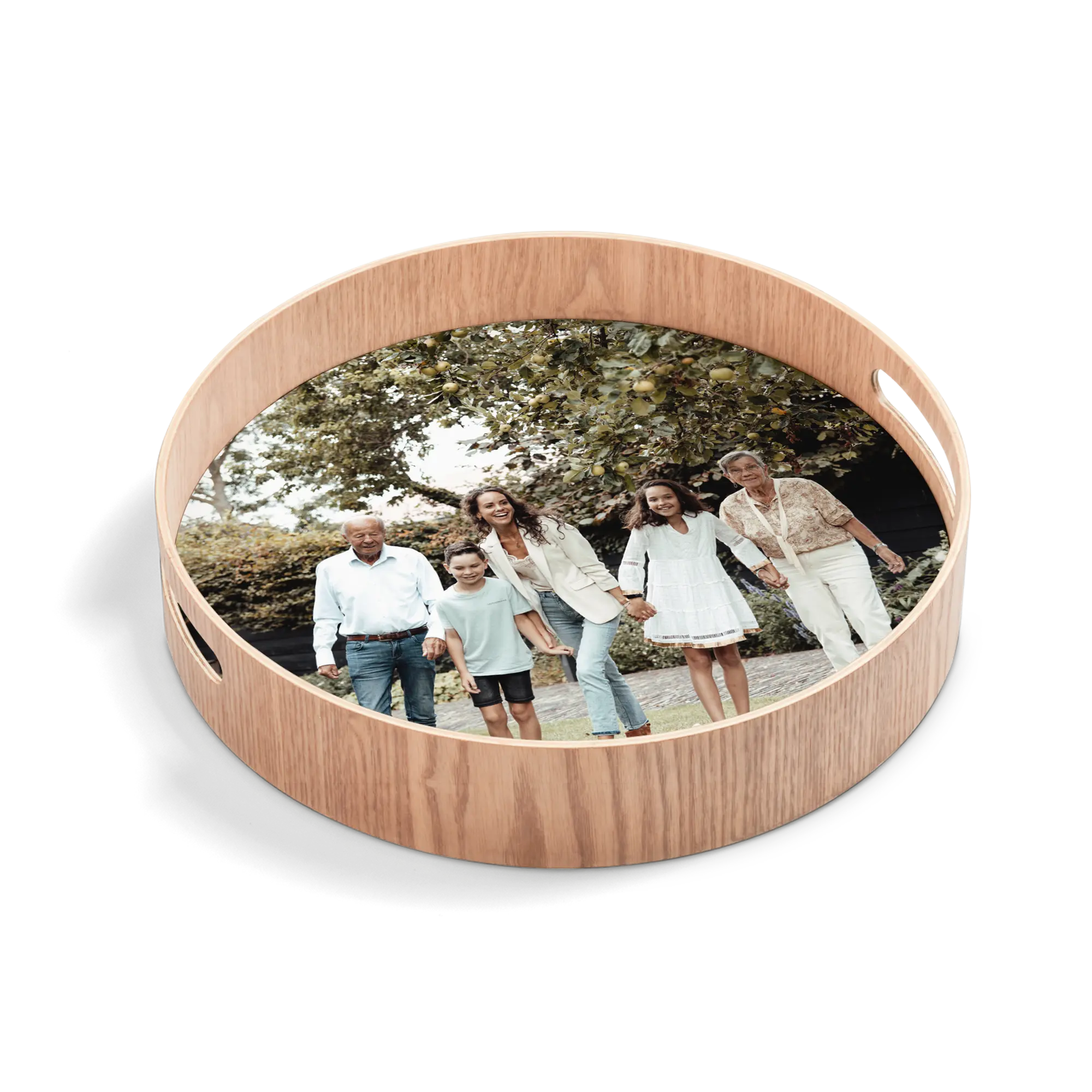 Luksusowa drewniana rama z personalizowaną podstawą z wysokiej jakości płyty pilśniowej ze zdjęciem, imieniem, logo i/lub tekstem według Twojego wyboru!Więcej informacji na temat personalizowanej tacy do serwowania:Kształt: okrągłyKolor: drewnoMateriał: luksusowa drewniana rama (drewno sosnowe) z podstawą z wysokiej jakości płyty pilśniowejWykończenie: błyszcząceWymiary: 30 x 30 x 5 cmPersonalizacja: zdjęciem, imieniem, logo lub kolażemNadruk: idealny, w pełnym kolorze