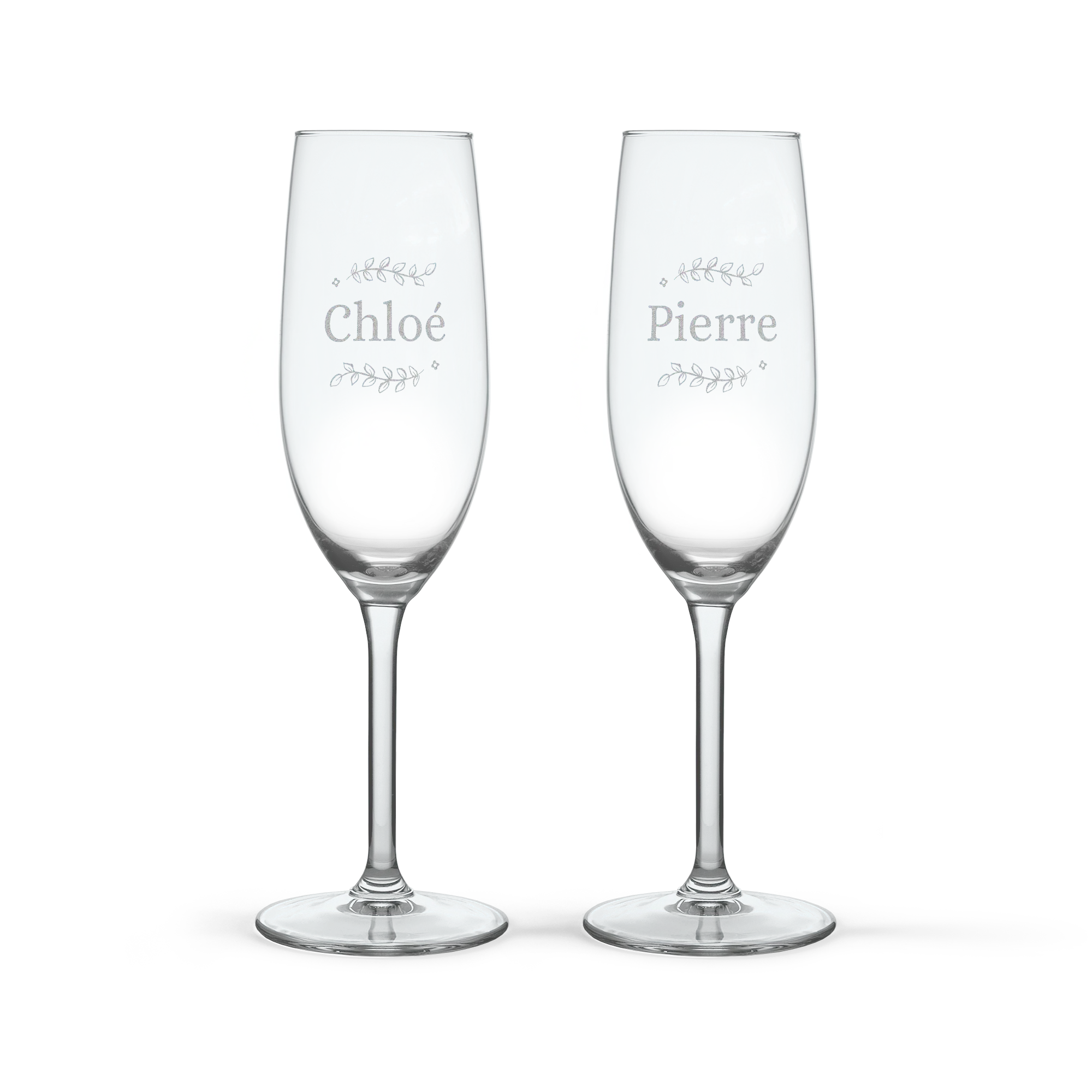 Pyszna butelka wina z grawerowanymi kieliszkami. Z imieniem i/lub tekstem do wyboru!Więcej informacji o kieliszkach do szampana: Ilość: 2 kieliszki Marka: Royal Leerdam Typ: L' Esprit Wysokość: 21,5 cm Pojemność: 21 cl Personalizacja: imieniem i/lub tekstem. Każdy kieliszek można spersonalizować indywidualnie. Miejsce personalizacji: po jednej stronie każdego kieliszka. Metoda personalizacji: wysokiej jakości grawer laserowy. Więcej informacji o luksusowej drewnianej skrzynce: Wymiary skrzynki (zewnętrzne): 36,5 x 30 x 11 cm. Wymiary skrzynki (wewnętrzne): 34 x 27,5 x 9 cm. Wymiary pokrywki: 35,6 x 28,4 x 0,3 cm. Drewniana skrzynka wykonana jest z drewna z certyfikatem FSC. Więcej informacji o winie: Marka: Riondo Prosecco Spumante. Rodzaj: prosecco, extra dry. Pojemność: 750 ml. Kraj pochodzenia: Włochy. Szczep: chardonnay, glera. Charakter: Riondo Prosecco Spumante o aromacie gruszki, jabłka, słodyczy i białych kwiatów. Dobrze komponuje się z krewetkami i pikantnymi tapas.