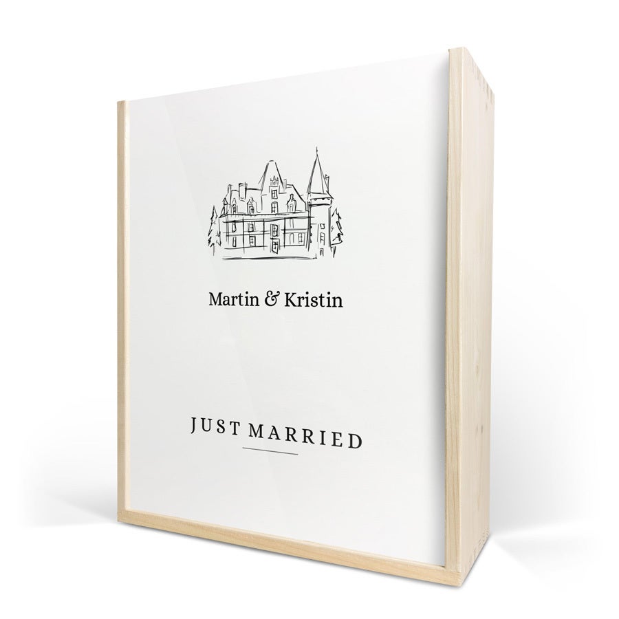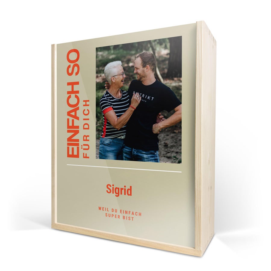 Pyszna butelka wina w luksusowym, spersonalizowanym etui. Ze zdjęciem, logo, kolażem, imieniem i/lub tekstem według Twojego wyboru!