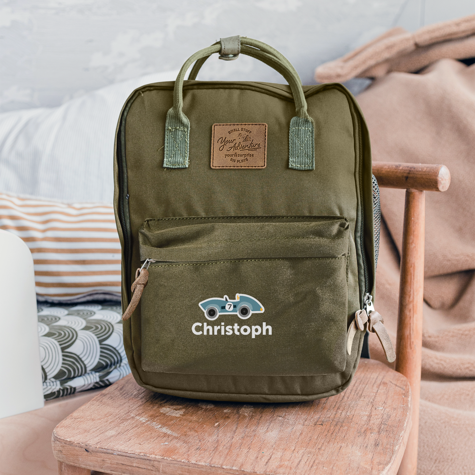 Więcej informacji o plecaku dziecięcym:Kolor: oliwkowozielonyWymiary: 32 x 23,5 x 11 cmPojemność: 8 litrówMateriał: 98% poliester, 2% skóra PUMarka: Beagles OriginalsPersonalizacja: imieniemNadruk: idealny i w pełnym kolorzeDodatkowe informacje: Plecak ma pojemną komorę główną, dodatkową przednią część z zamkiem błyskawicznym i boczną kieszenią na butelkę, a także wiele kieszeni wewnątrz i wyściełaną przegrodę odpowiednią na tablet.