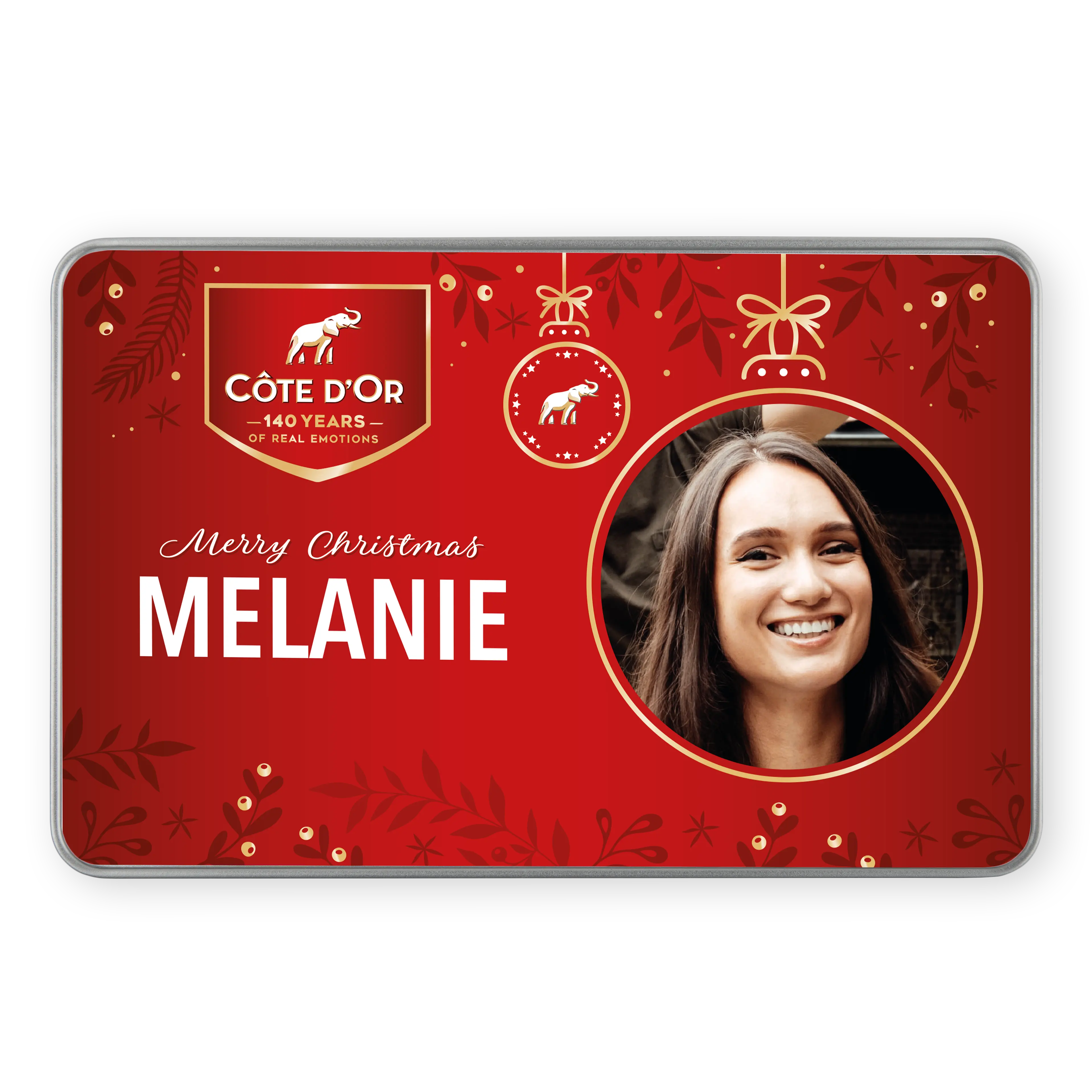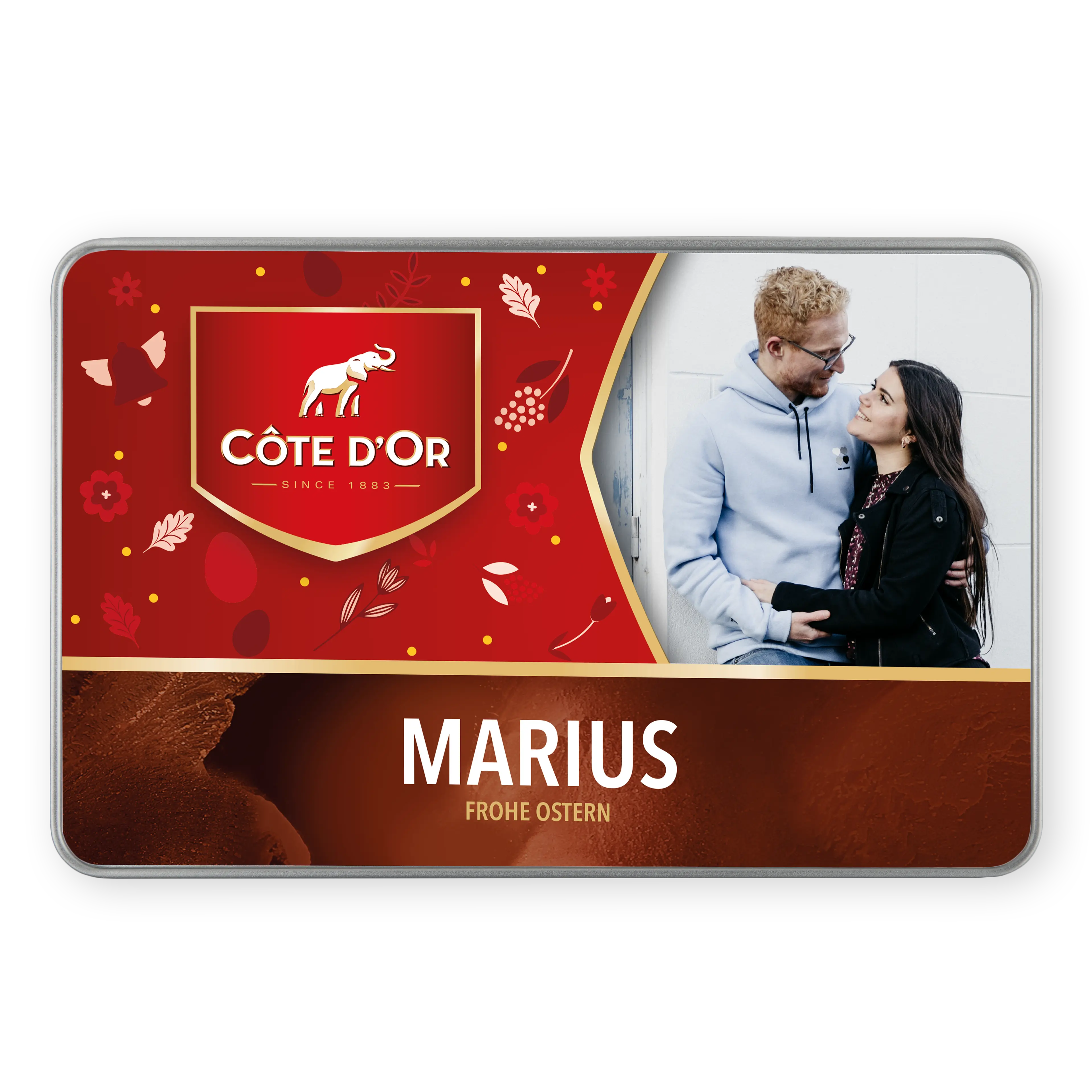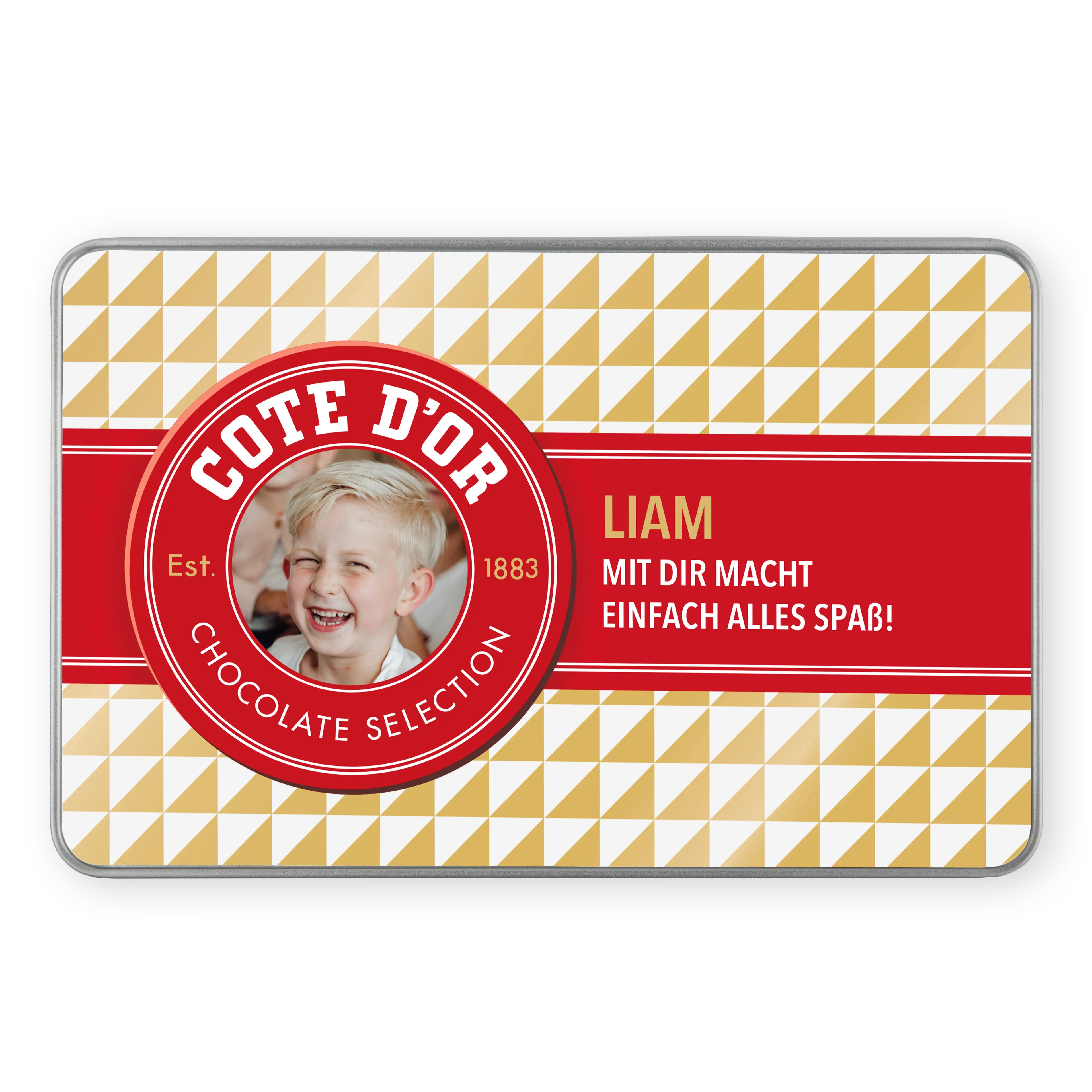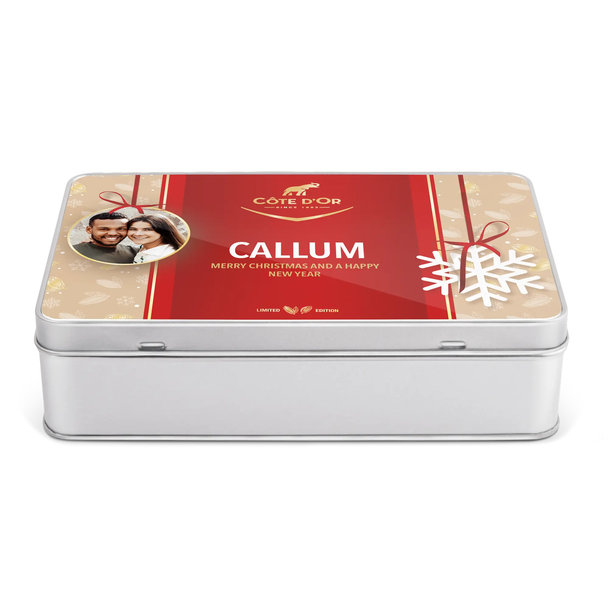 Personalizowana puszka prezentowa wypełniona czekoladkami Côte d’Or ze zdjęciem i/lub imieniem do wyboru!