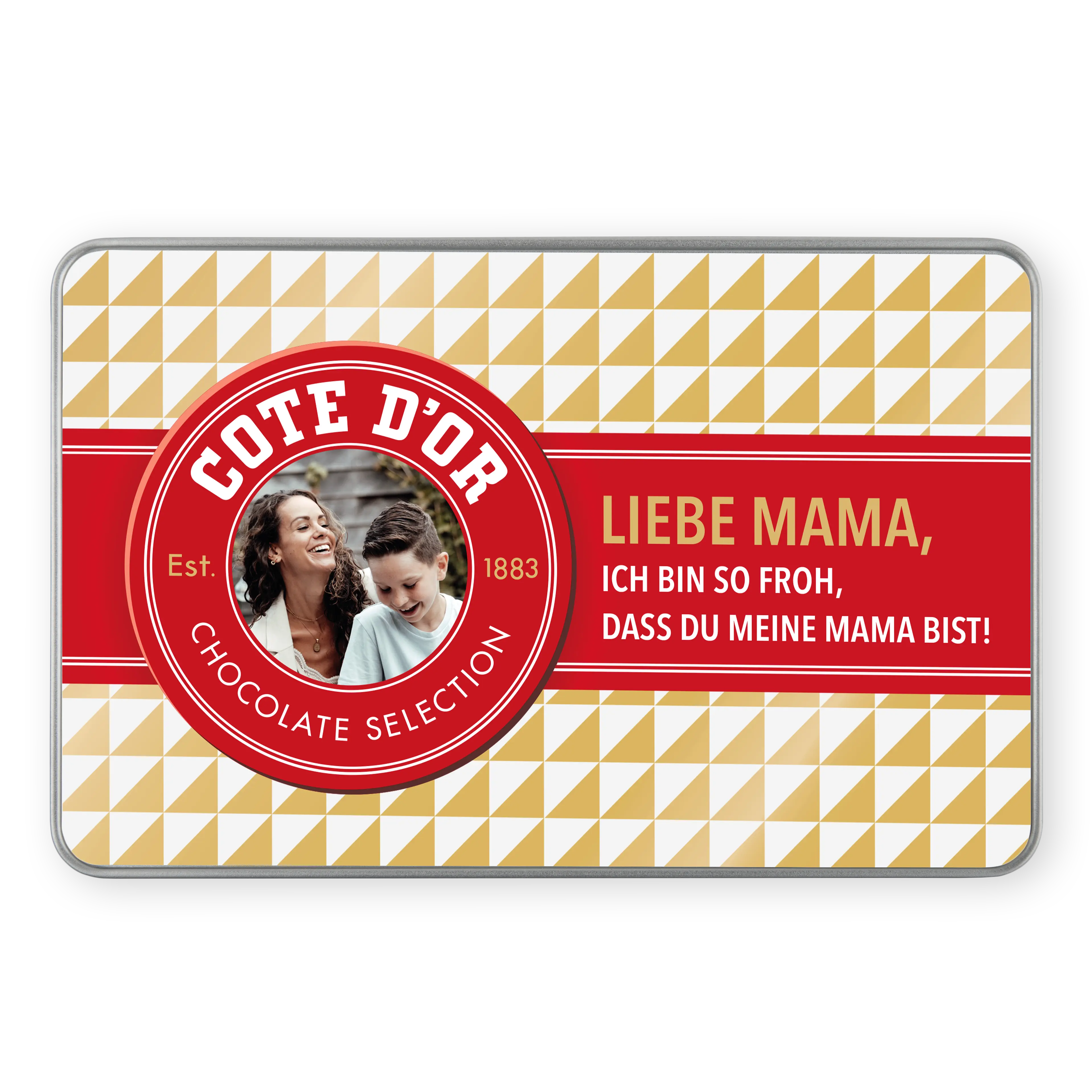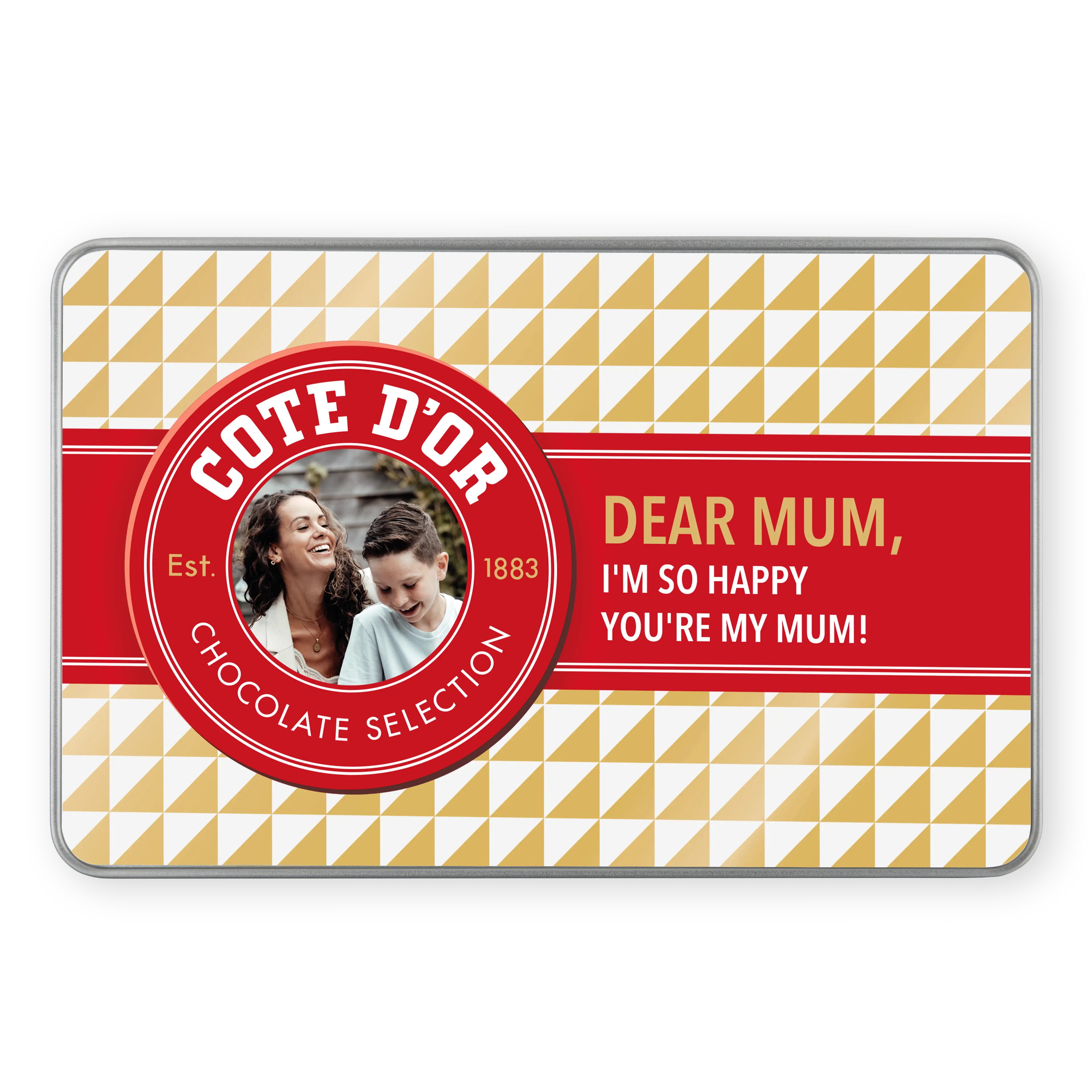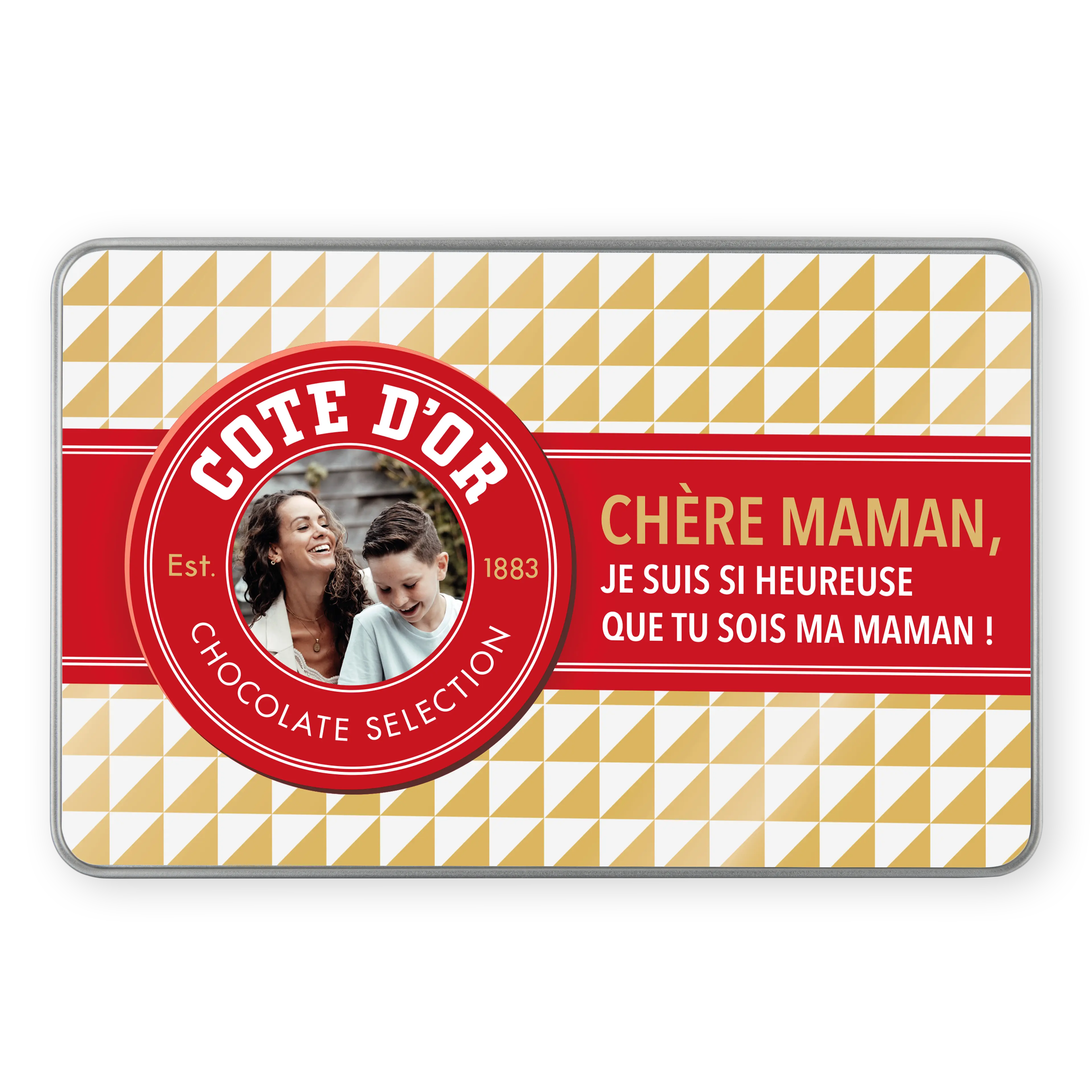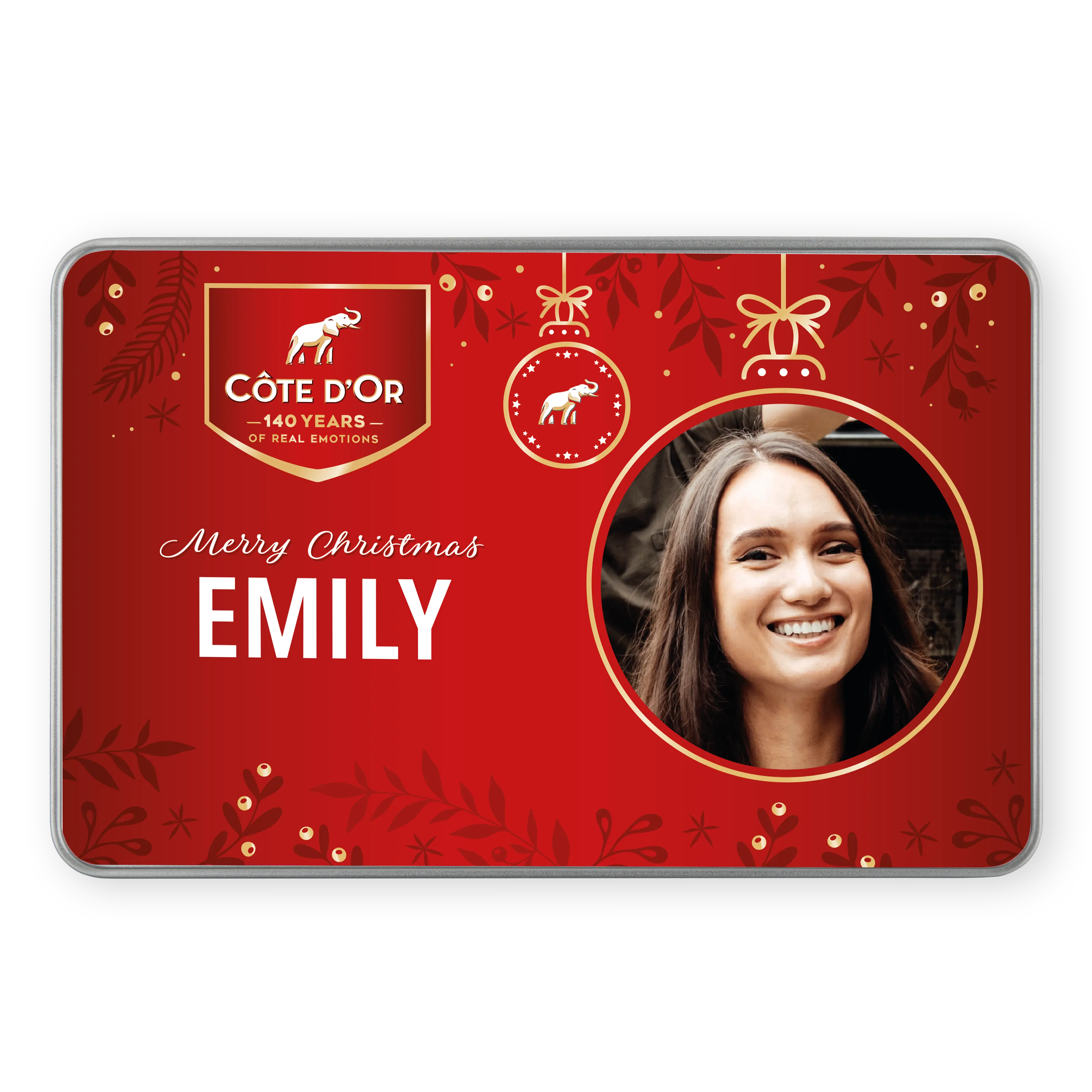Personalizowana puszka prezentowa wypełniona czekoladkami Côte d’Or ze zdjęciem i/lub imieniem do wyboru!