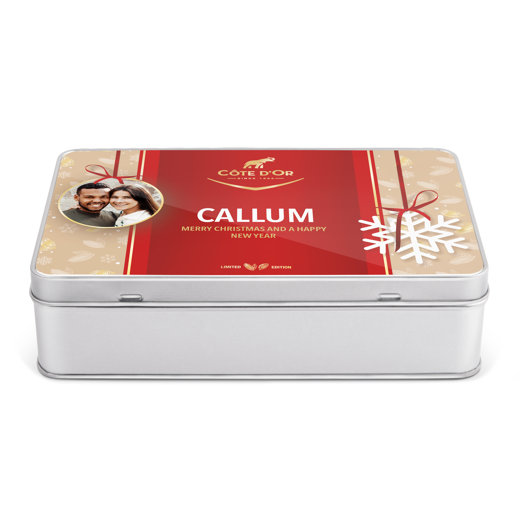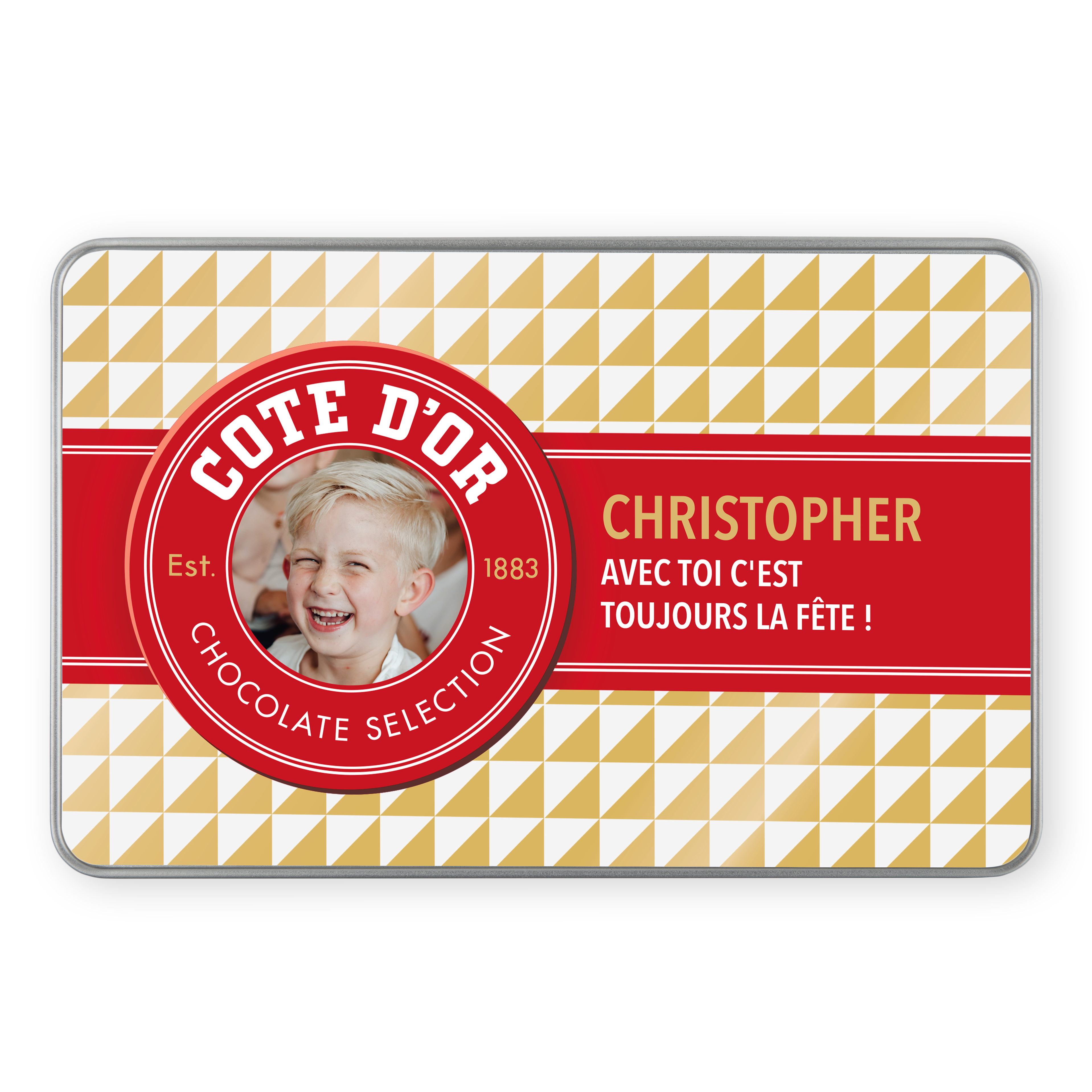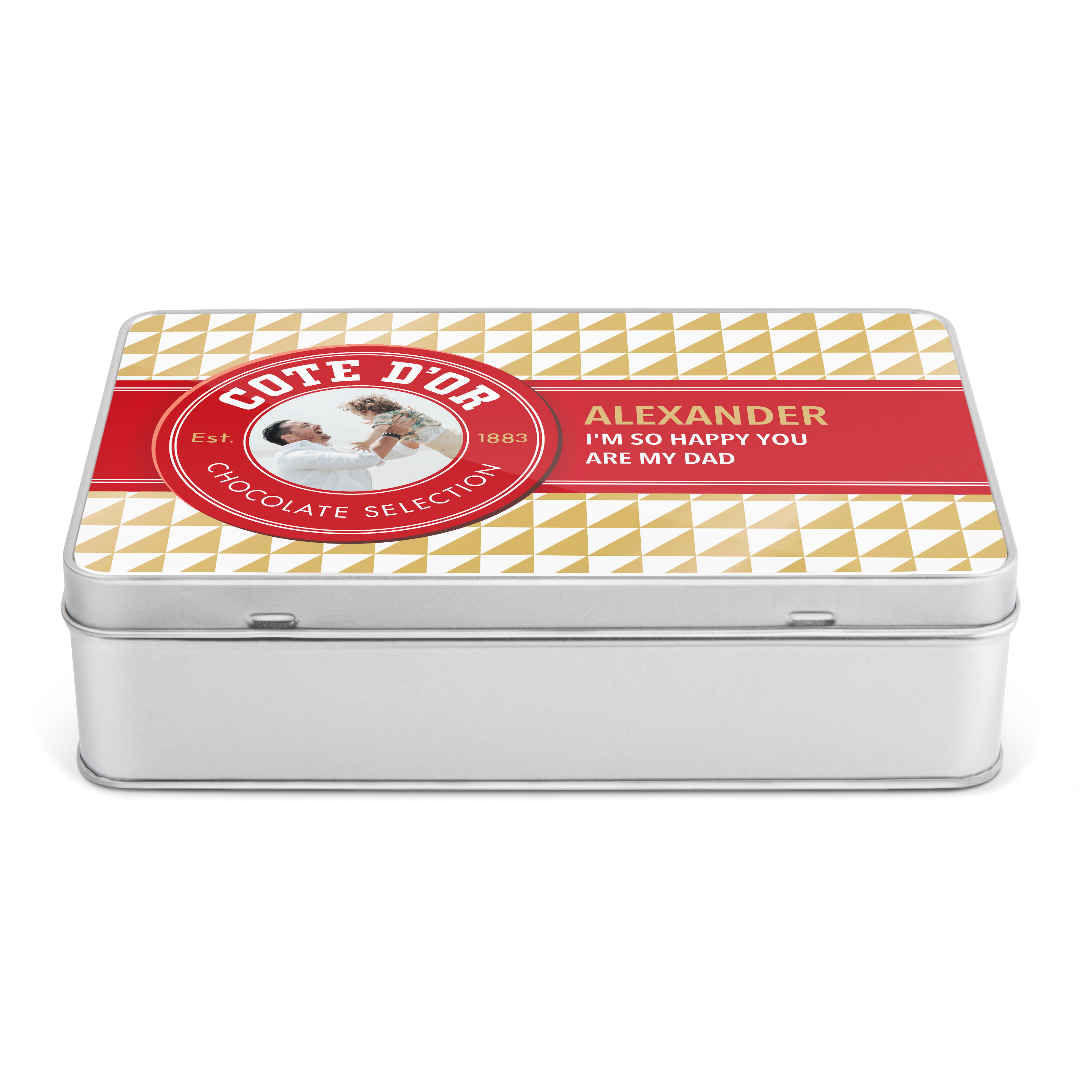 Personalizowana puszka prezentowa wypełniona czekoladkami Côte d’Or ze zdjęciem i/lub imieniem do wyboru!
