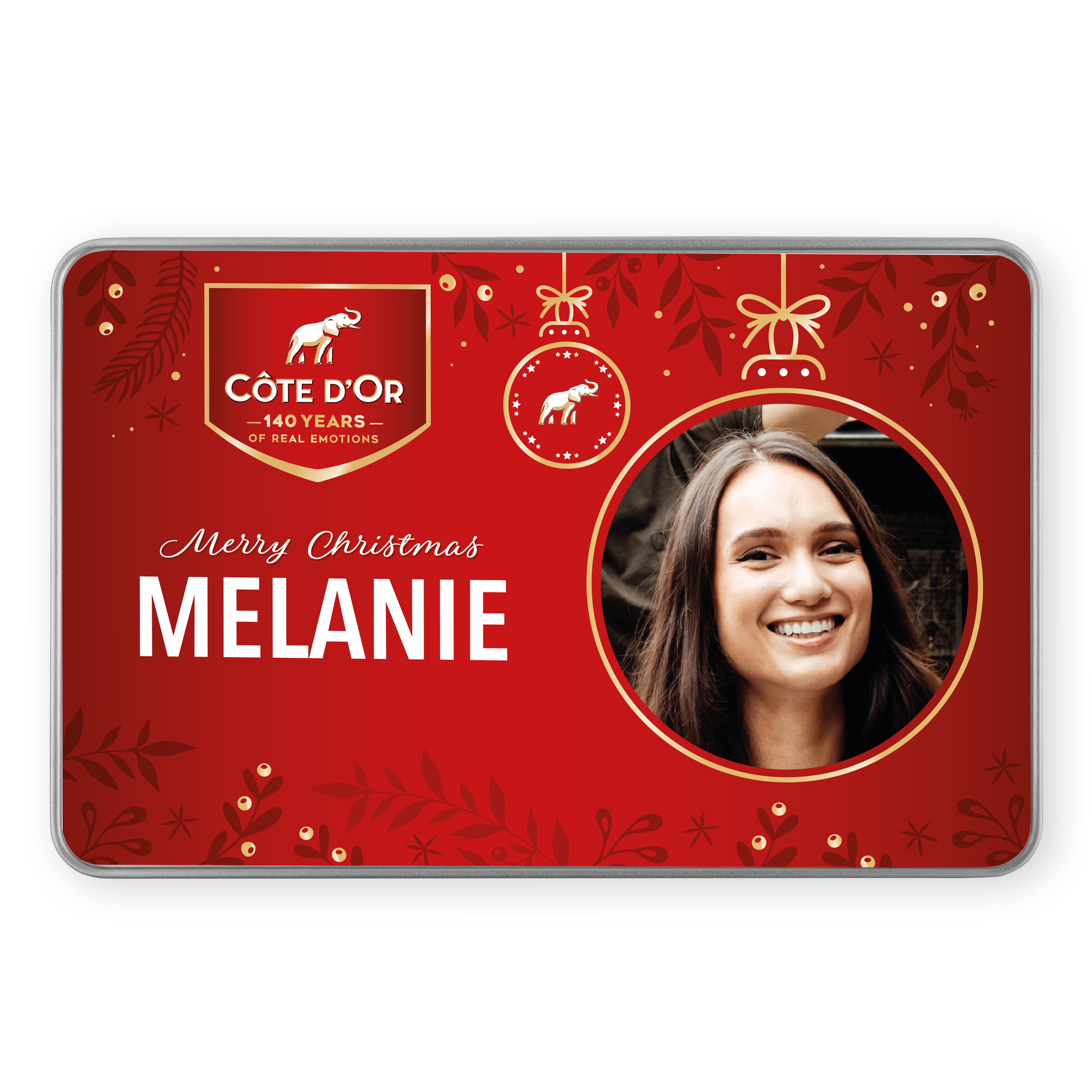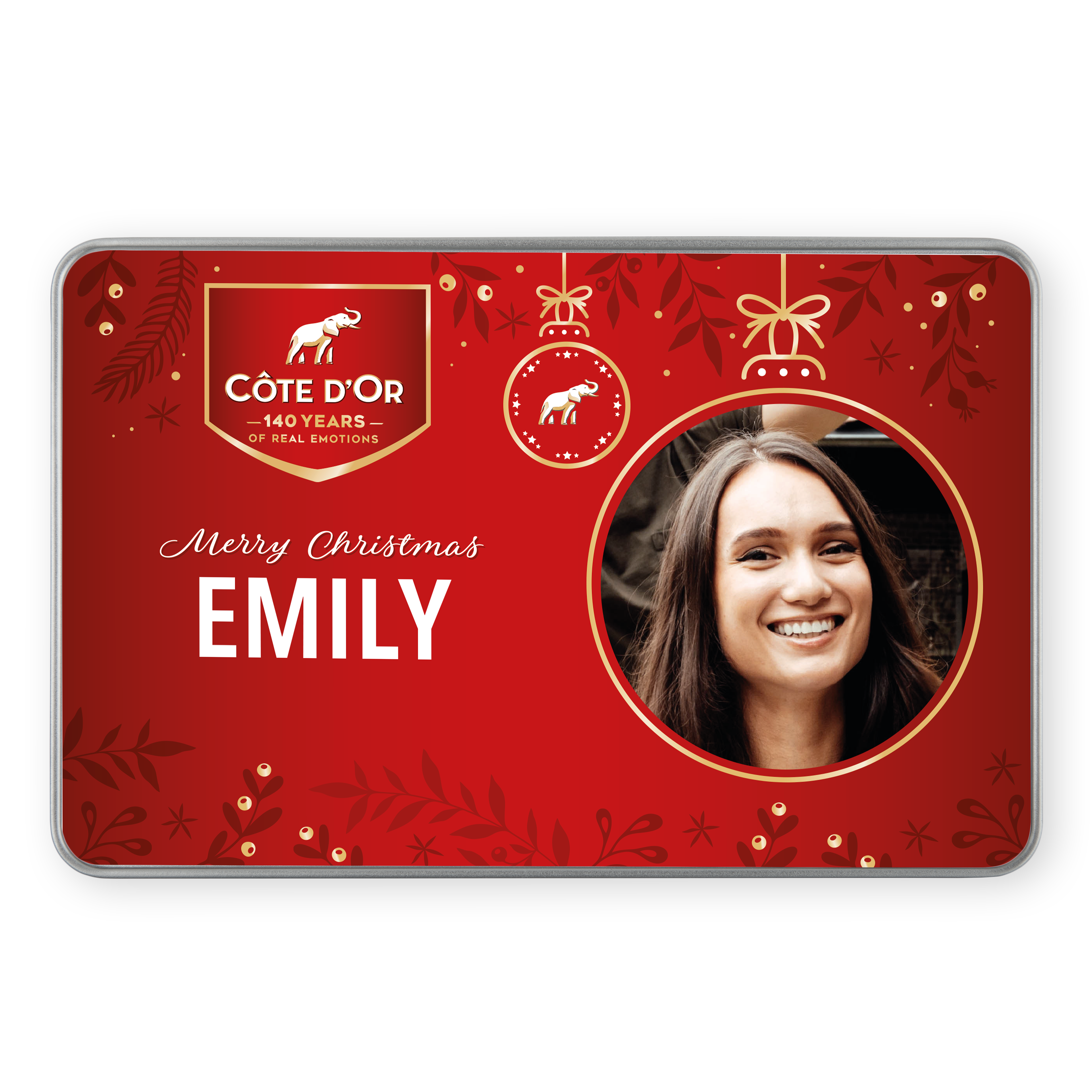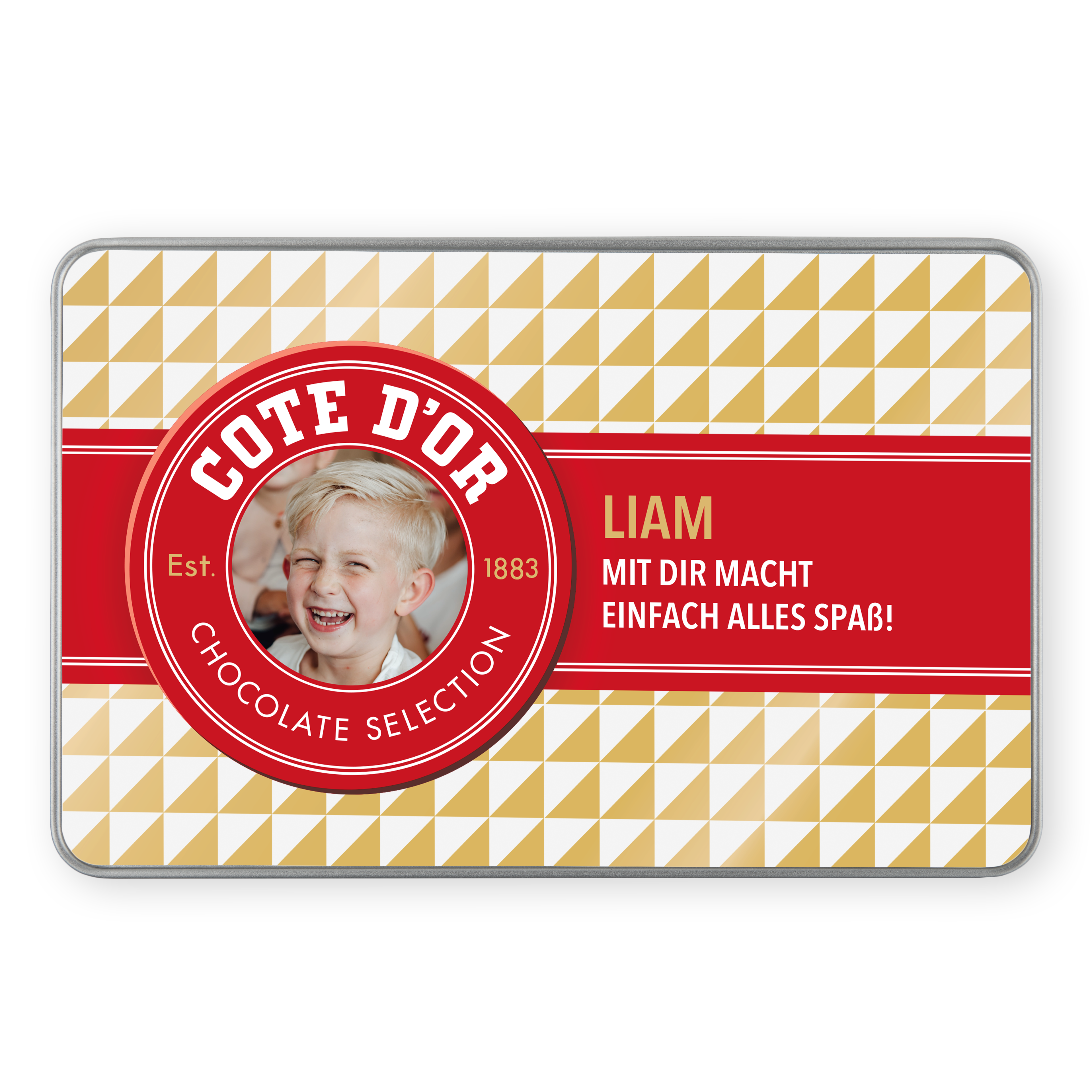 Personalizowana puszka prezentowa wypełniona czekoladkami Côte d’Or ze zdjęciem i/lub imieniem do wyboru!