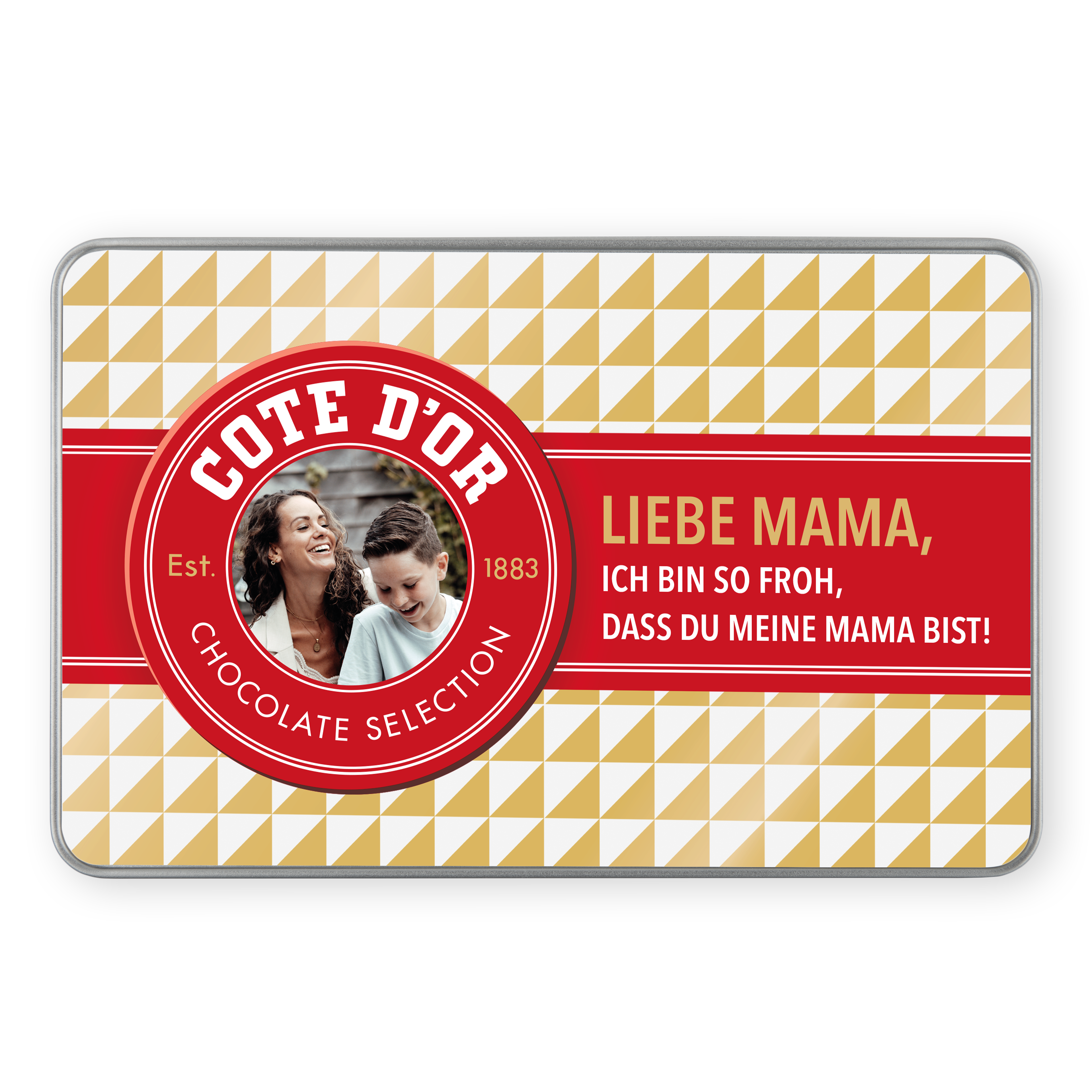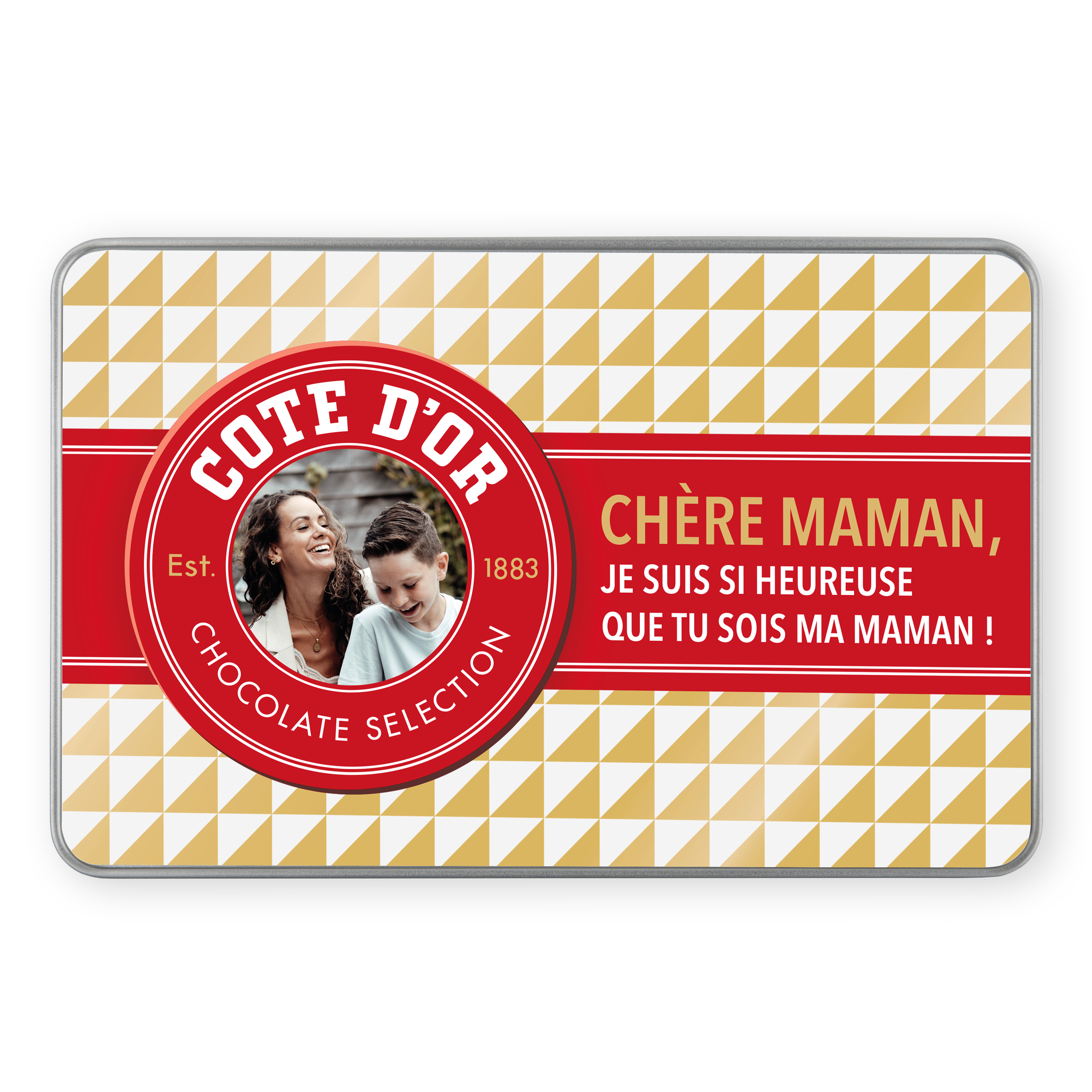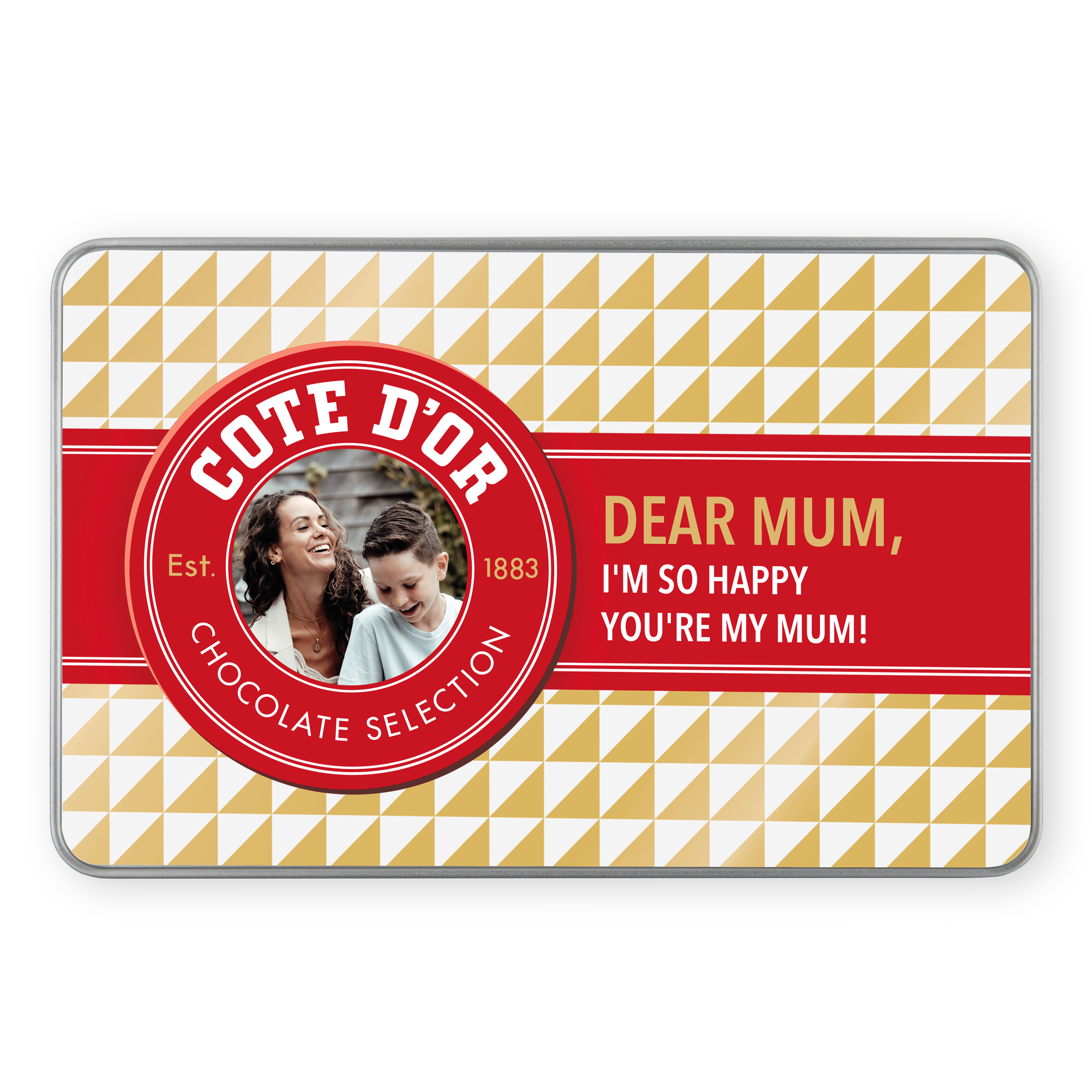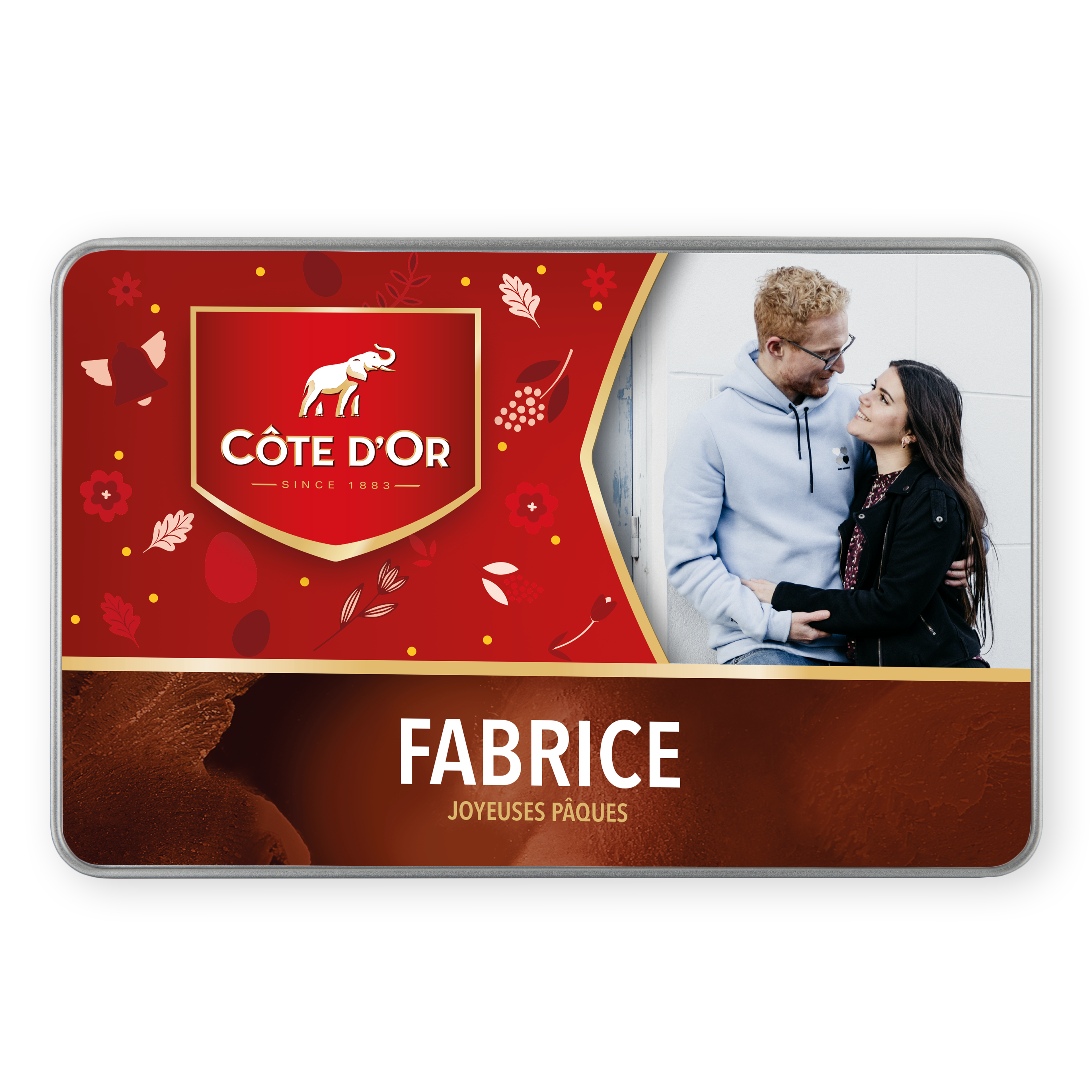 Personalizowana puszka dodaje sentymentalnego charakteru, idealna jako pamiątka. Wykwintna czekolada Côte d'Or zapewnia niezapomniane doznania smakowe.