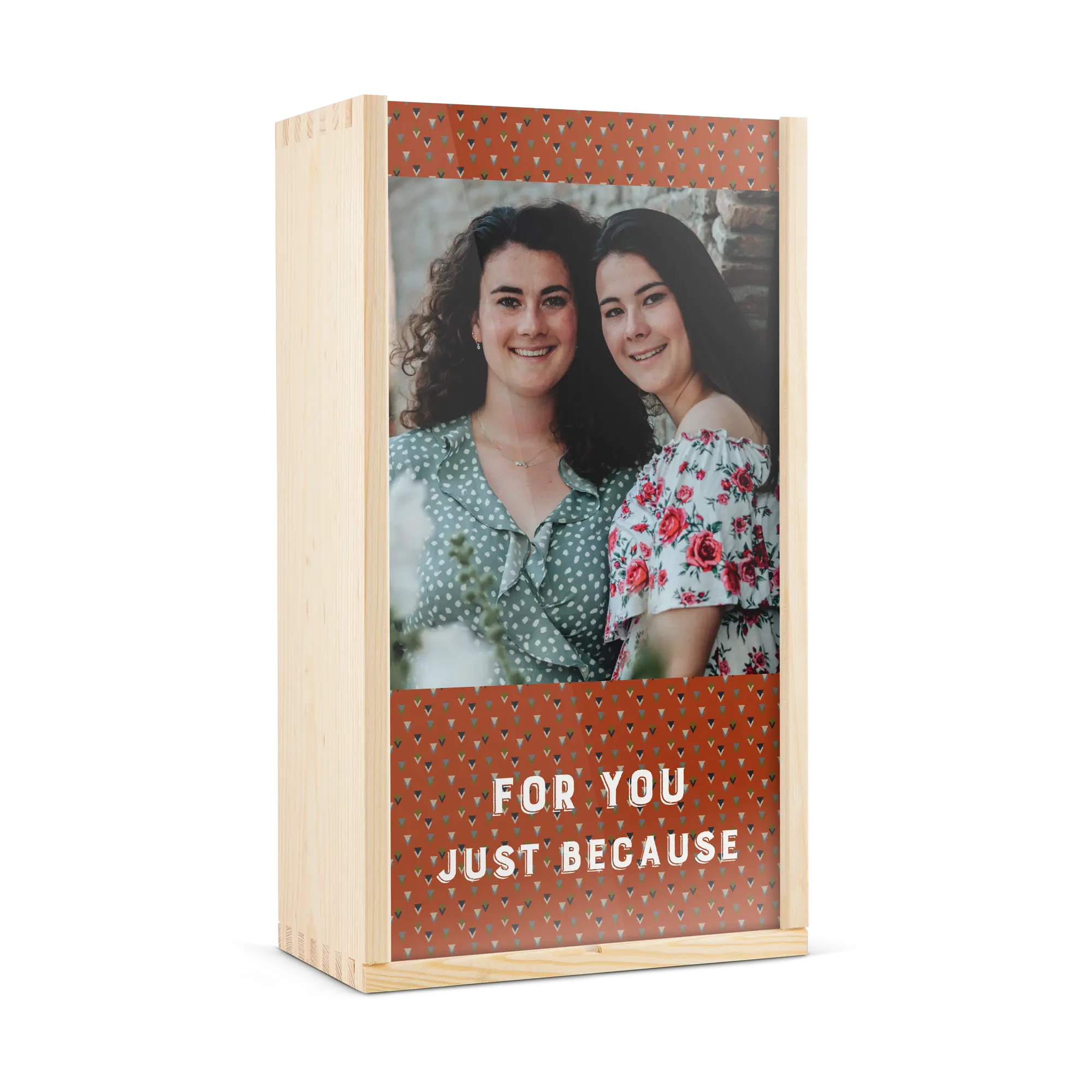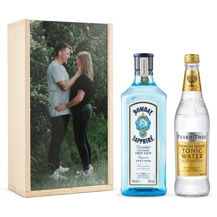 Wyjątkowy zestaw ginu z tonikiem z cudowną butelką Bombay Saphire Gin i tonikiem Fever Tree w drewnianym pudełku. Z Twoim projektem na wieczku!Więcej informacji o personalizacji:Personalizacja: w luksusowym pudełku Nadruk: nadruk na wieczku w krystalicznie czystej jakości fotograficznej HDWymiary pudełka: 36,5 x 20,6 x 11 cmWymiary wieczka: 35,6 x 18,9 x 0,3 cmDodatkowo: drewniane pudełko z certyfikatem FSCWięcej informacji o ginie:Nazwa: Bombay SapphireKraj: Anglia Charakter: miękki gin o złożonym charakterze. Lekki owocowy smak z mocnymi aromatamiWięcej informacji o toniku:Nazwa: Fever Tree Indian Tonic WaterZawartość: 500 mlTen tonik nie zawiera żadnych sztucznych słodzików, konserwantów ani aromatów.