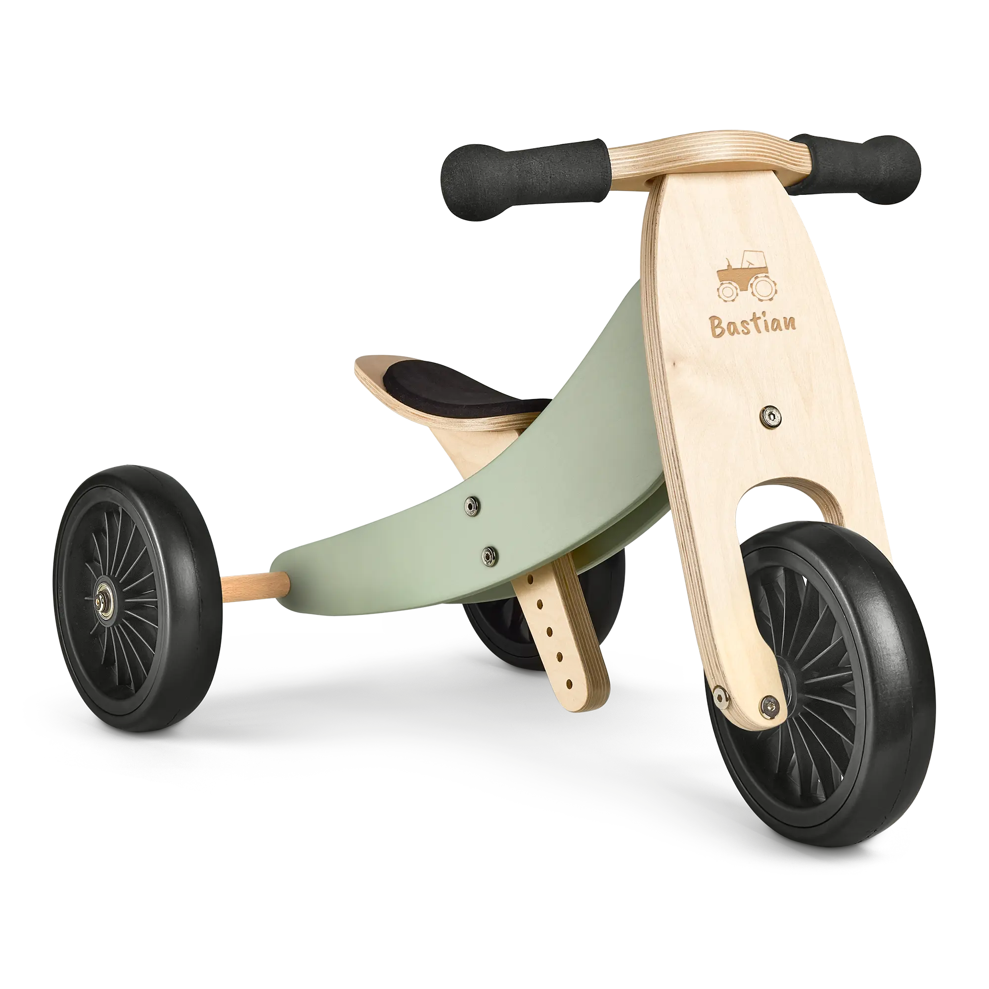Wyjątkowe drewniane trójkołowce z imieniem. Niesamowita jakość drewna brzozowego, personalizowane grawerunkiem. Zarówno dla chłopców, jak i dziewczynek!Więcej informacji o grawerowanym drewnianym trójkołowcu: Wymiary: 72 x 45 x 44 cm Wysokość siedziska: regulowana od 25 do 34 cm Wiek: od 1,5 roku Waga: ± 3 kg Maksymalne obciążenie: 25 kg Personalizacja: grawerowanie tekstu Personalizacja: z przodu Dodatkowo: specjalna ochrona uchwytów. Trójkołowiec można łatwo przekształcić w rowerek biegowy Uwaga: drewno to produkt naturalny, dlatego prezent może nieznacznie różnić się od zdjęcia. Niestety, ze względów technicznych nie jest możliwe przetwarzanie cyrylicy, znaków tureckich ani znaków specjalnych.