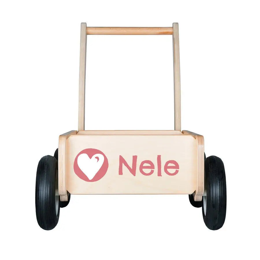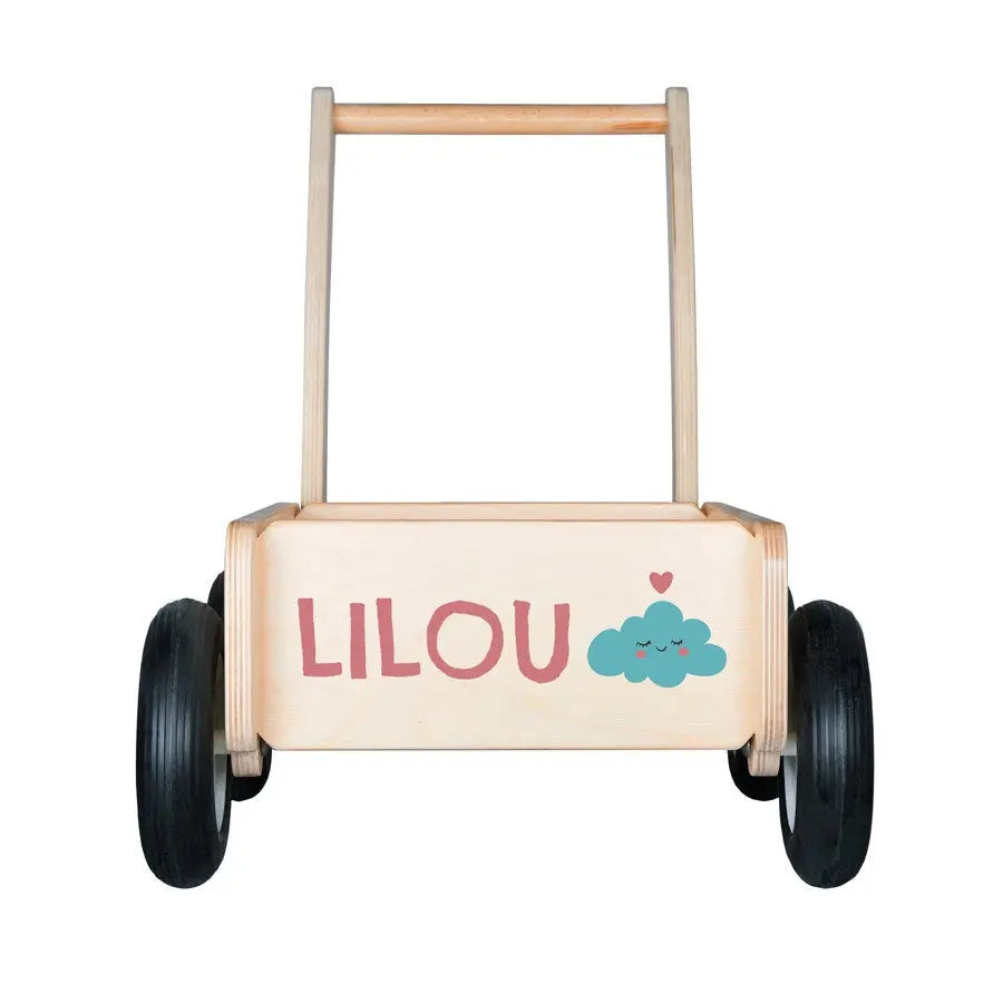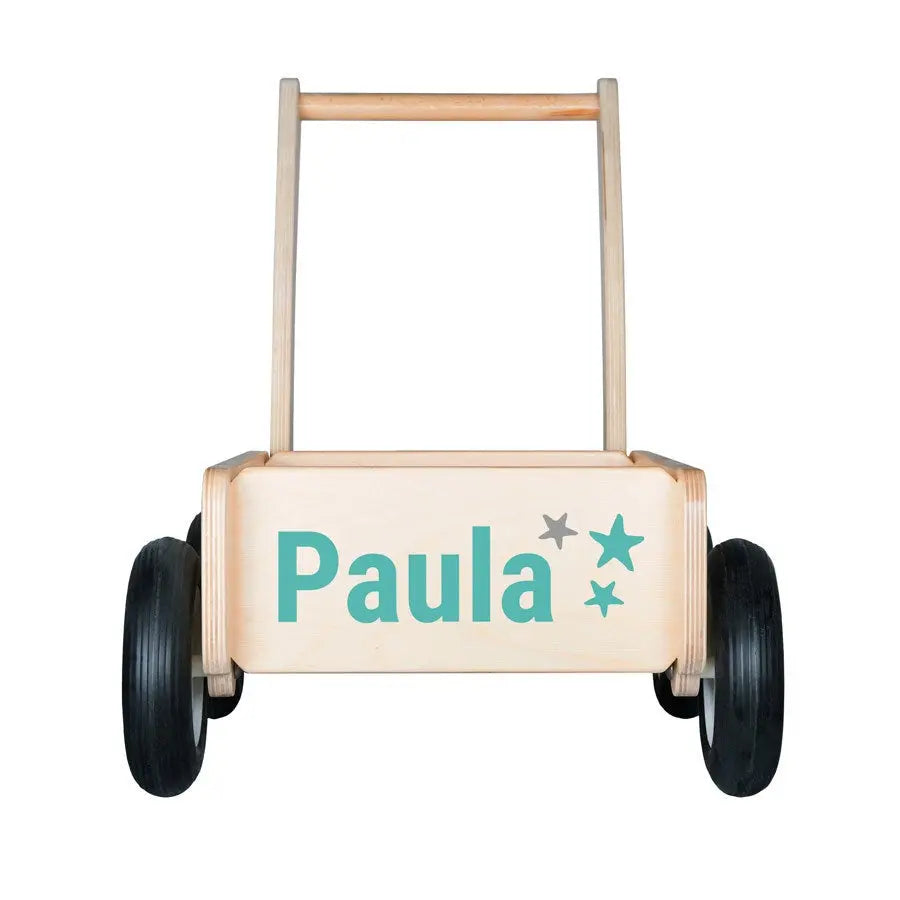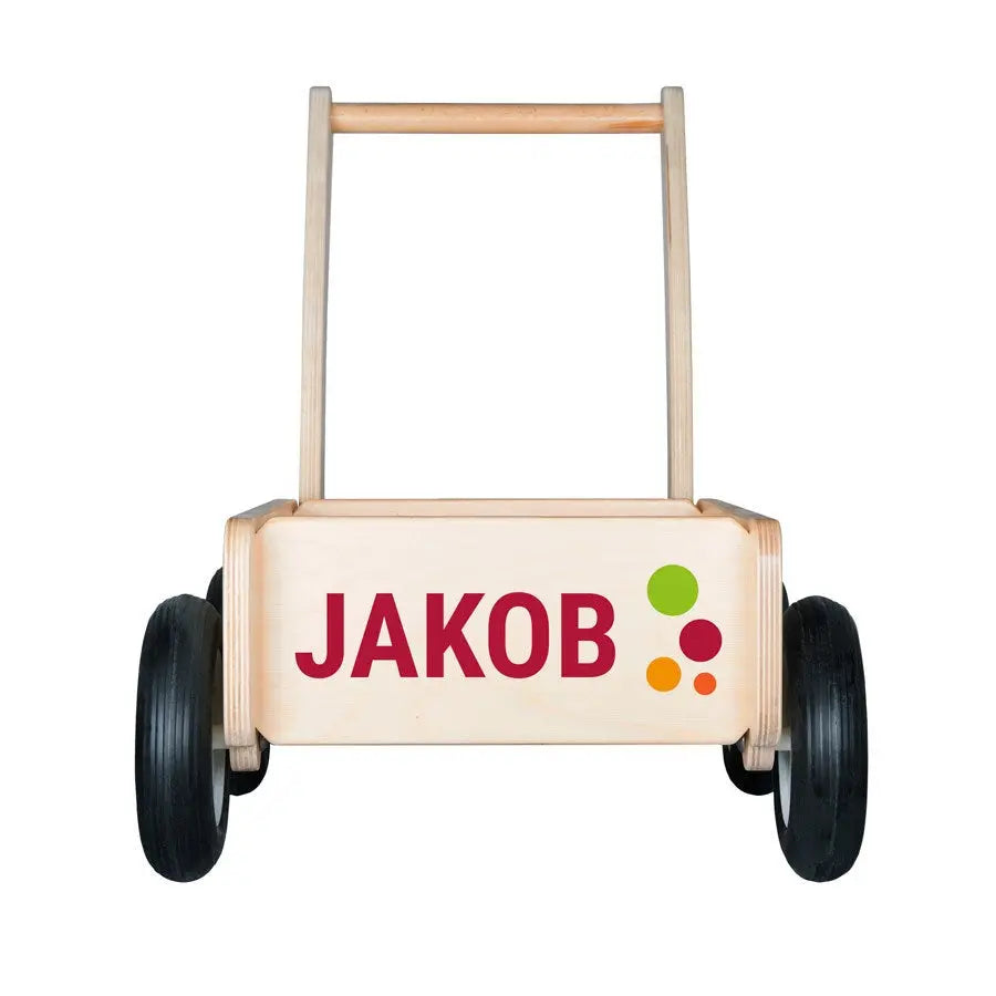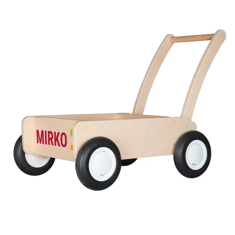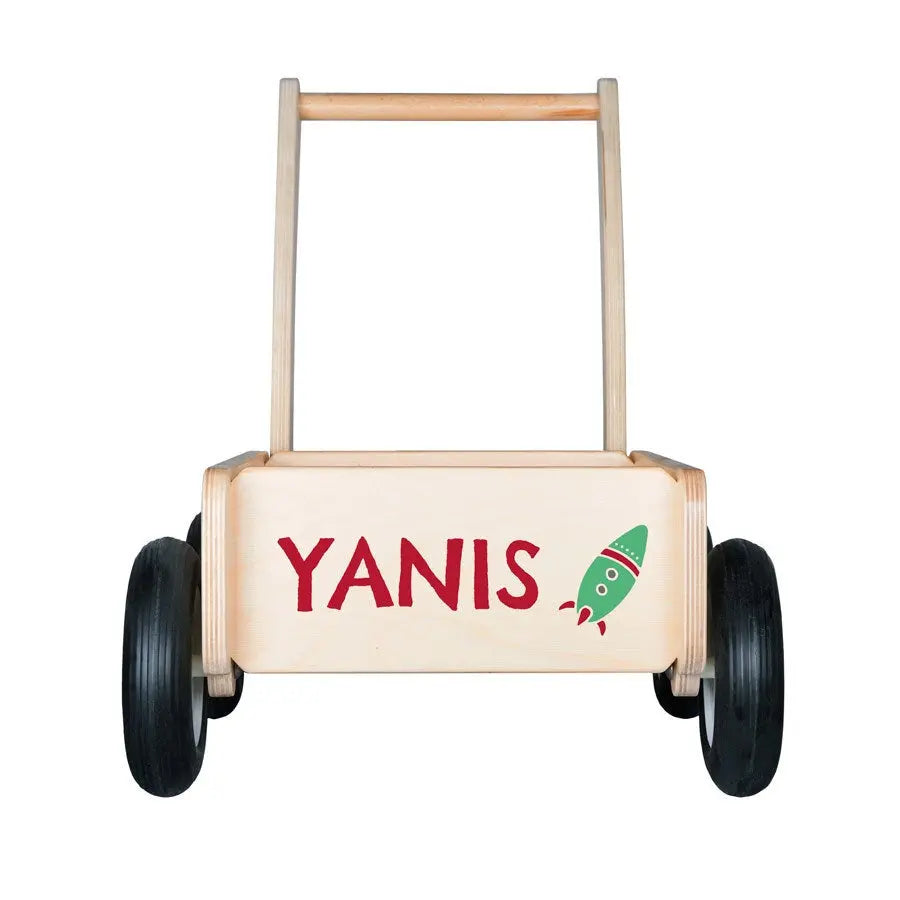 Stwórz wyjątkowy drewniany wózek z imieniem. Bardzo wytrzymałe, wysokiej jakości drewno brzozowe z błyszczącymi naklejkami. Wiele godzin radosnej zabawy!Więcej informacji o drewnianym wózku:Rodzaj drewna: Bardzo wytrzymała i odporna na drzazgi sklejka brzozowa z detalami brzozowymi Wymiary kompletnego wózka: 54 x 40 x 29 cm Wymiary pojemnika wewnątrz: 34,5 x 27 x 9,5 cm Waga: ± 2200 gramów Personalizacja: imię/tekst na wysokiej jakości laminowanej folii winylowej Wiek: od 1 roku życia Dodatkowo: z łatwo regulowaną rączką. Zamów również zestaw zabawnie wyglądających kolorowych kołpaków pasujących do wózka.