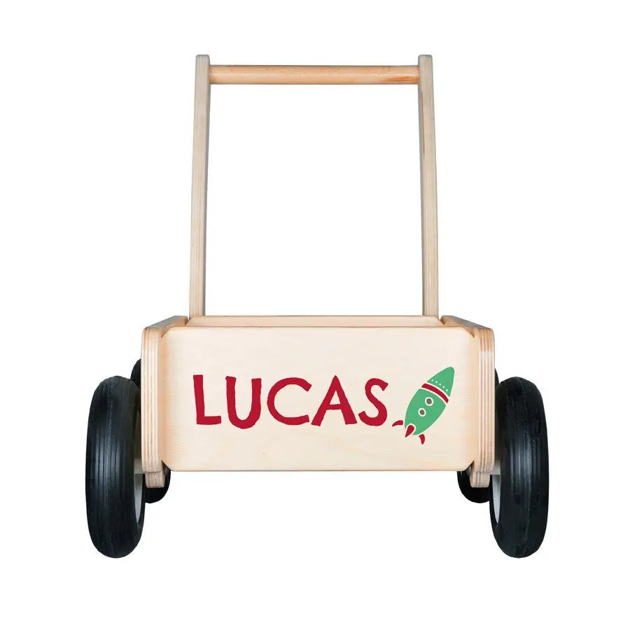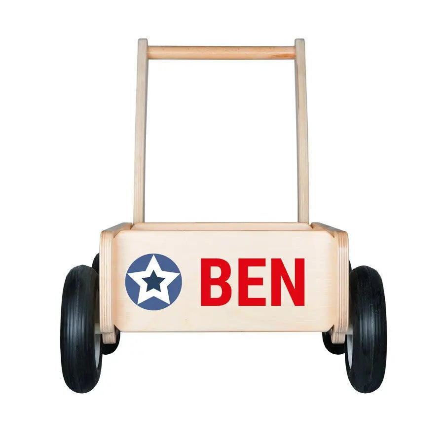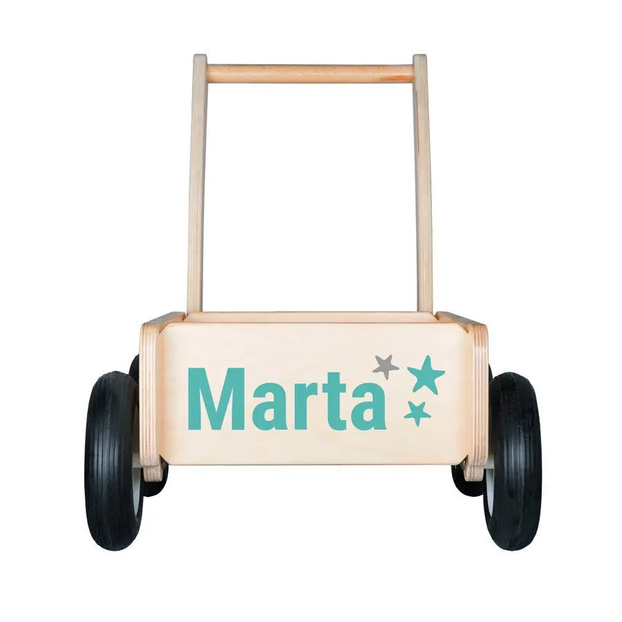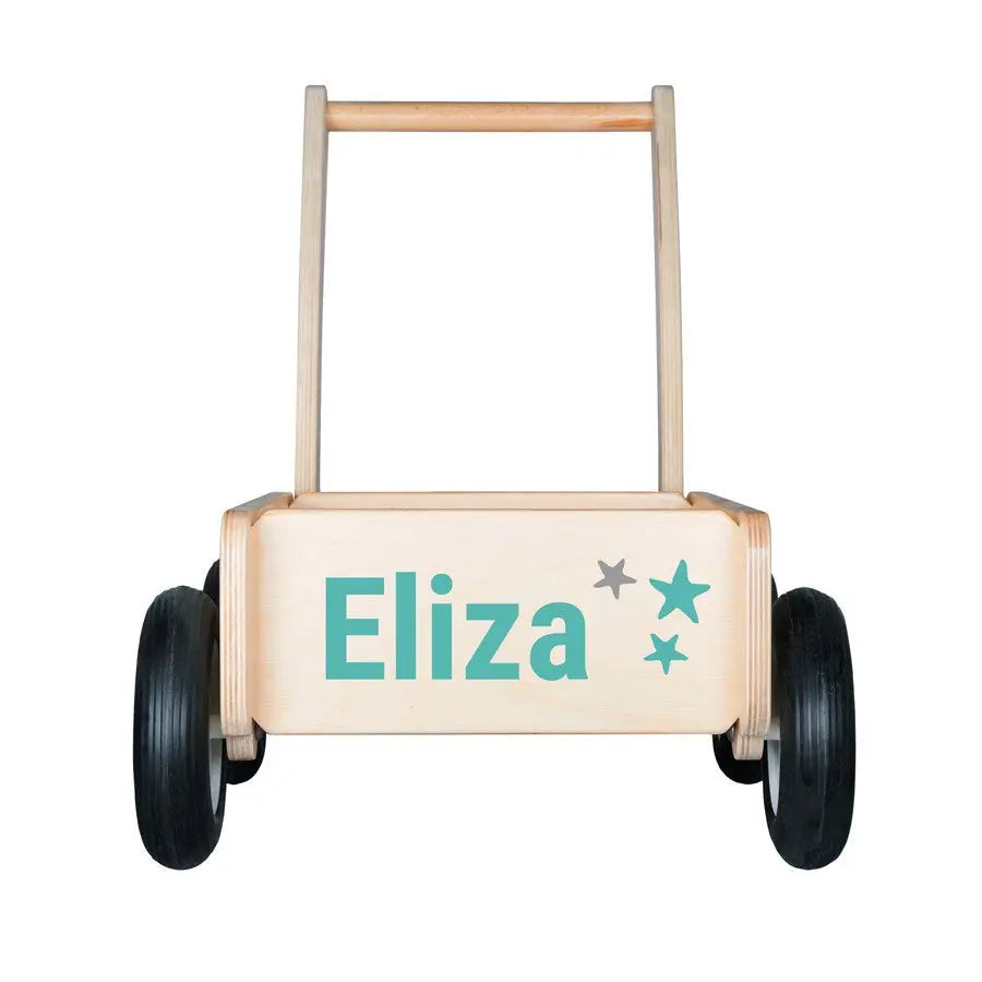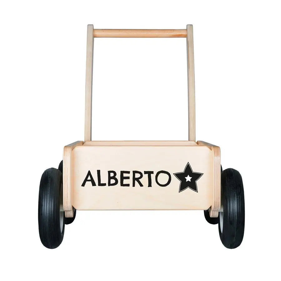 Stwórz wyjątkowy drewniany wózek z imieniem. Bardzo wytrzymałe, wysokiej jakości drewno brzozowe z błyszczącymi naklejkami. Wiele godzin radosnej zabawy!Więcej informacji o drewnianym wózku:Rodzaj drewna: Bardzo wytrzymała i odporna na drzazgi sklejka brzozowa z detalami brzozowymi Wymiary kompletnego wózka: 54 x 40 x 29 cm Wymiary pojemnika wewnątrz: 34,5 x 27 x 9,5 cm Waga: ± 2200 gramów Personalizacja: imię/tekst na wysokiej jakości laminowanej folii winylowej Wiek: od 1 roku życia Dodatkowo: z łatwo regulowaną rączką. Zamów również zestaw zabawnie wyglądających kolorowych kołpaków pasujących do wózka.