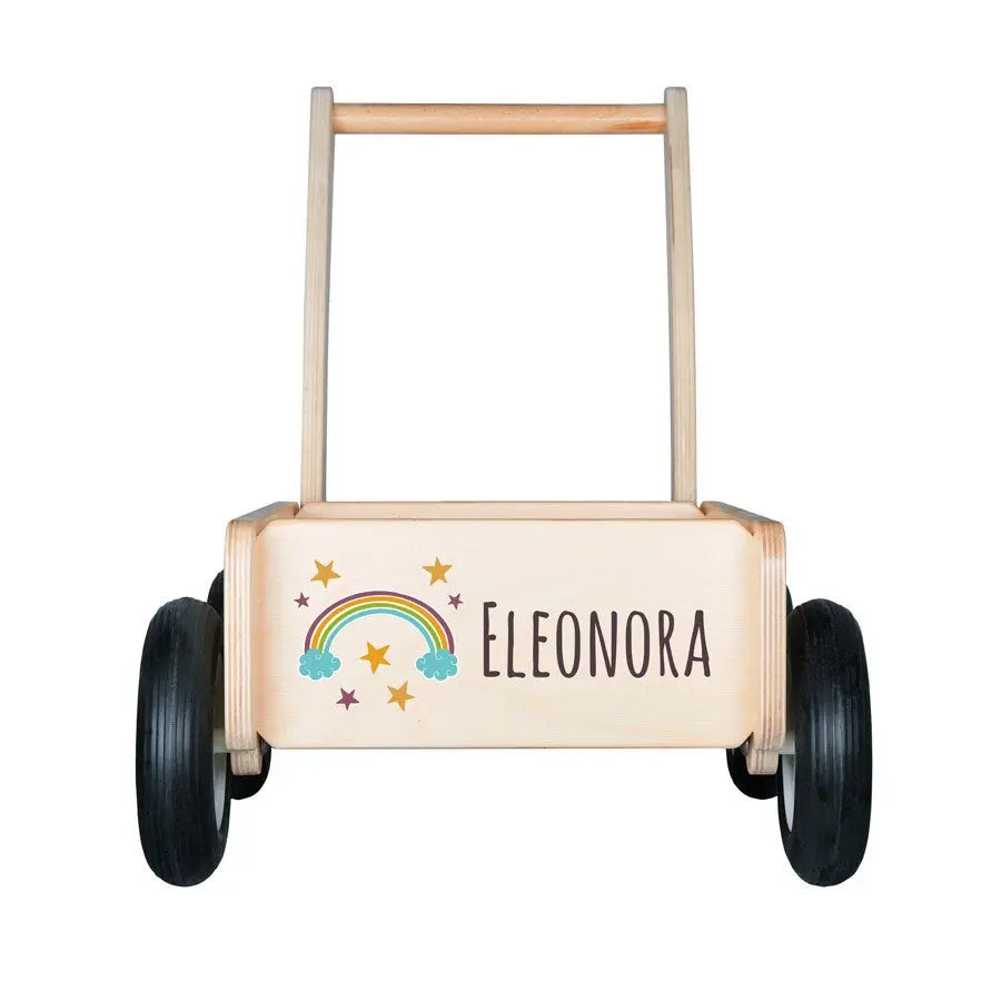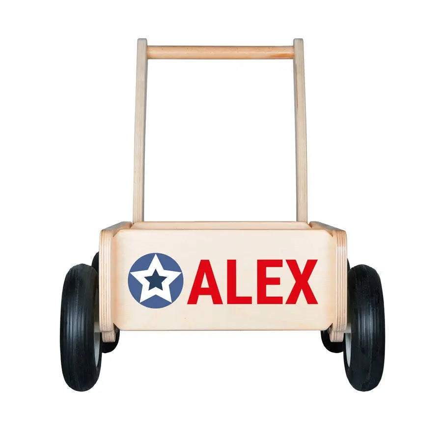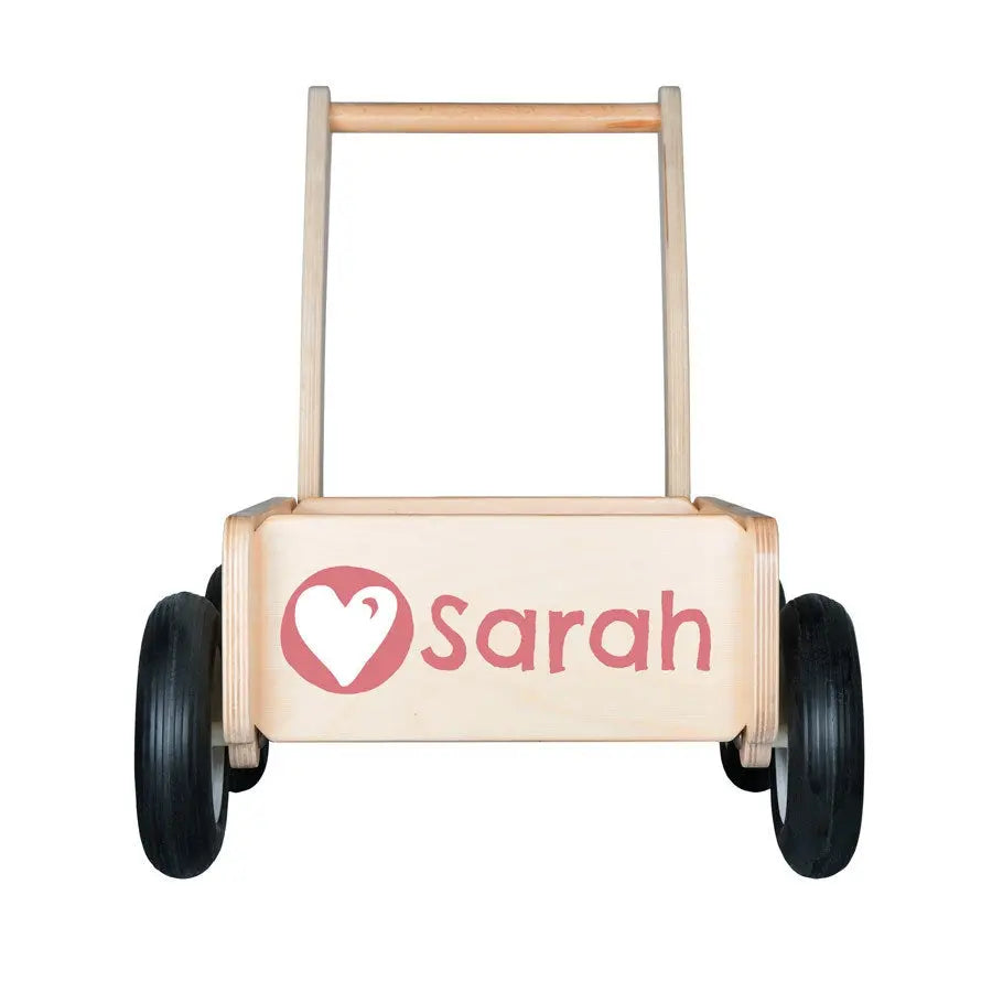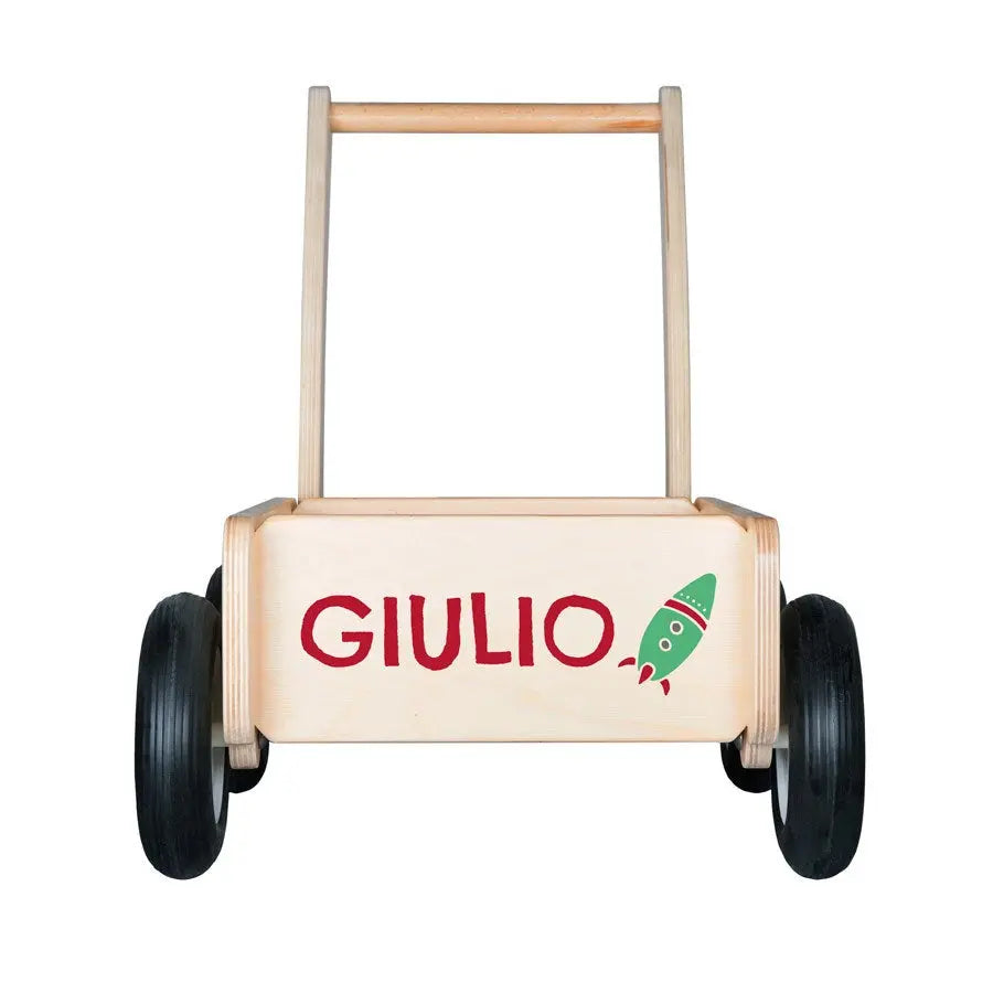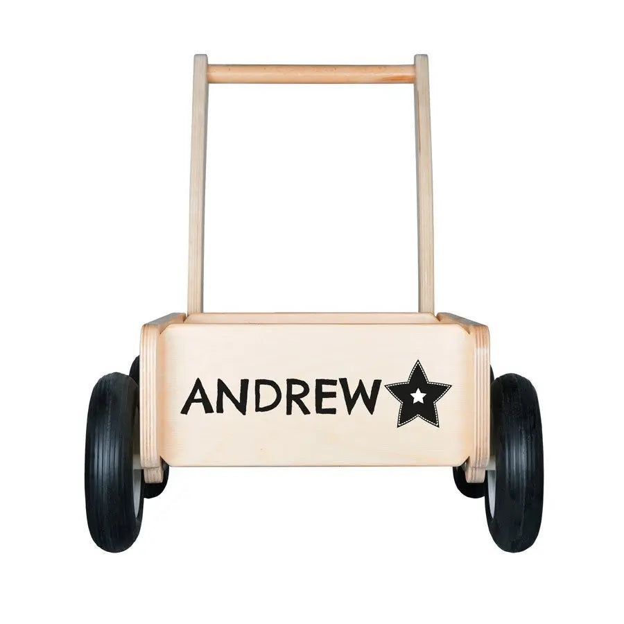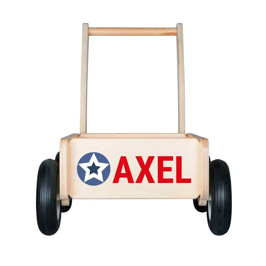 Stwórz wyjątkowy drewniany wózek z imieniem. Bardzo wytrzymałe, wysokiej jakości drewno brzozowe z błyszczącymi naklejkami. Wiele godzin radosnej zabawy!Więcej informacji o drewnianym wózku:Rodzaj drewna: Bardzo wytrzymała i odporna na drzazgi sklejka brzozowa z detalami brzozowymi Wymiary kompletnego wózka: 54 x 40 x 29 cm Wymiary pojemnika wewnątrz: 34,5 x 27 x 9,5 cm Waga: ± 2200 gramów Personalizacja: imię/tekst na wysokiej jakości laminowanej folii winylowej Wiek: od 1 roku życia Dodatkowo: z łatwo regulowaną rączką. Zamów również zestaw zabawnie wyglądających kolorowych kołpaków pasujących do wózka.