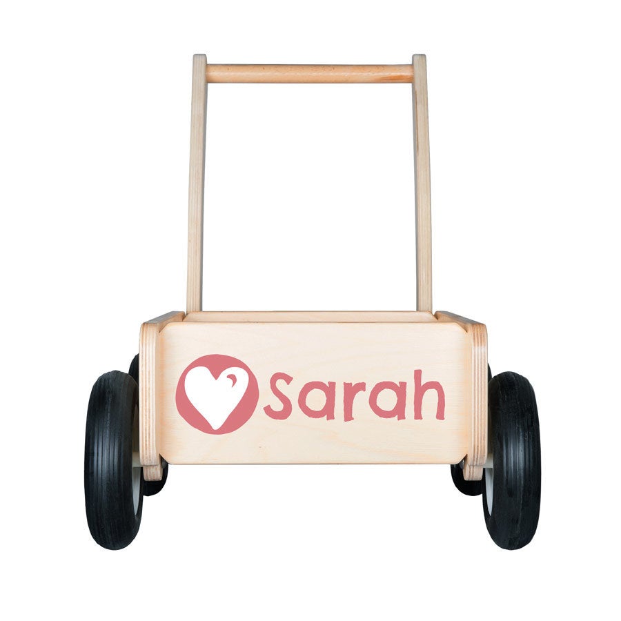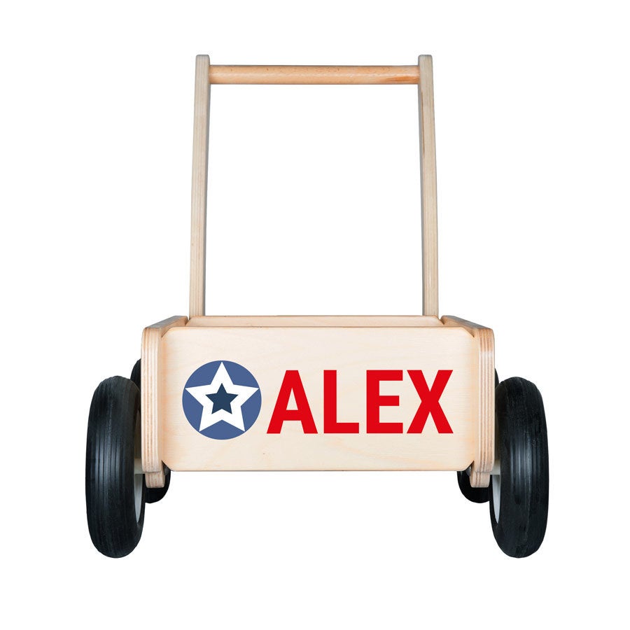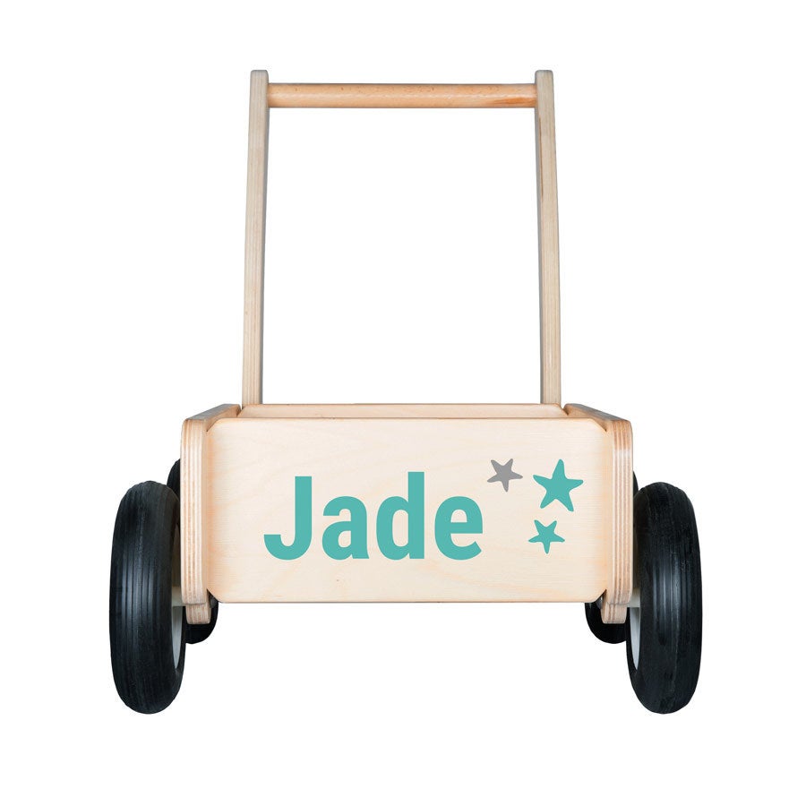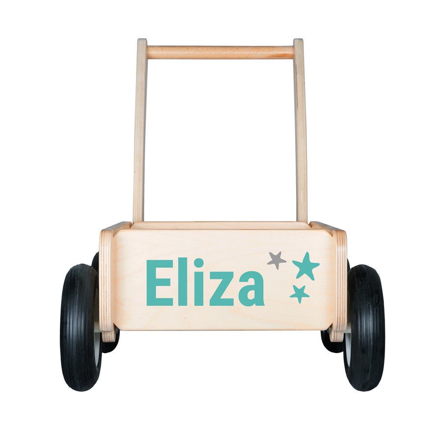 Stwórz wyjątkowy drewniany wózek z imieniem. Bardzo wytrzymałe, wysokiej jakości drewno brzozowe z błyszczącymi naklejkami. Wiele godzin radosnej zabawy!